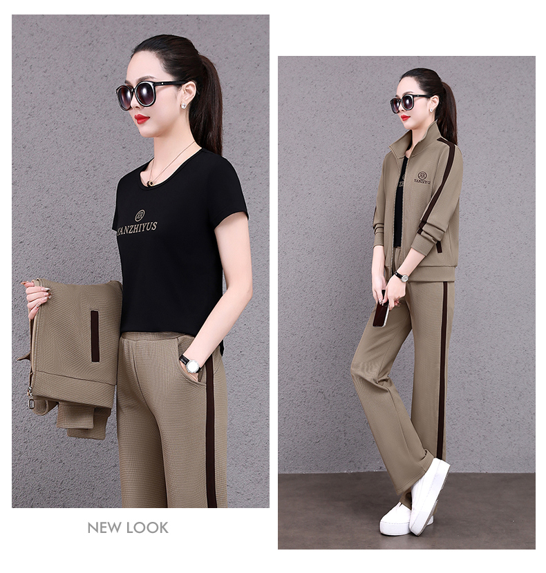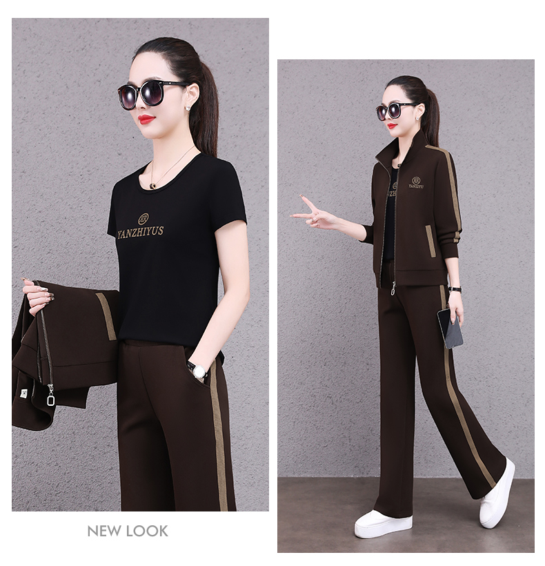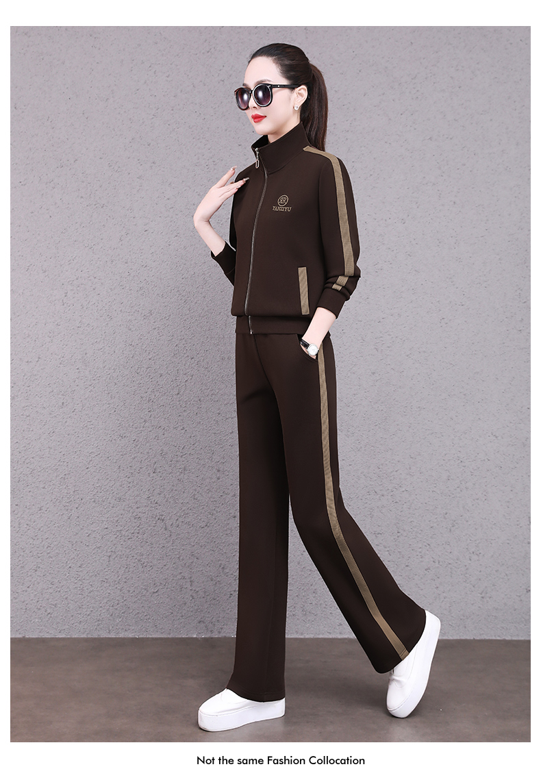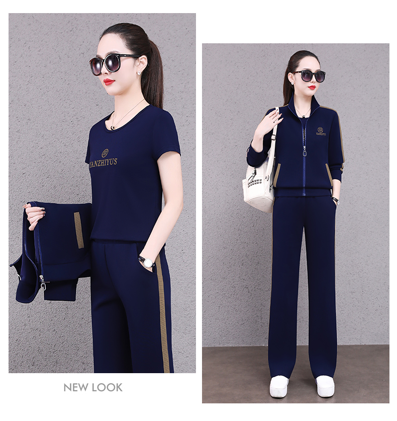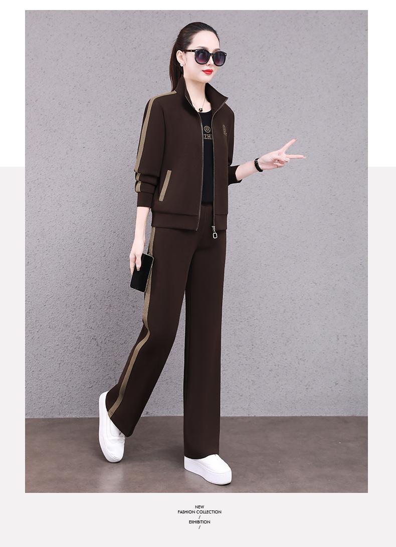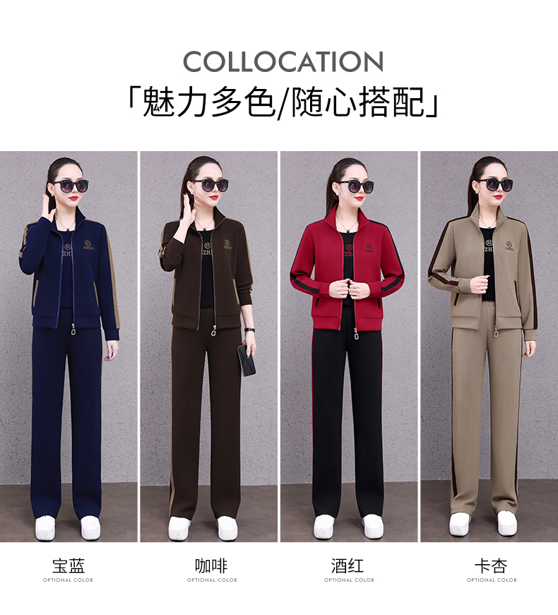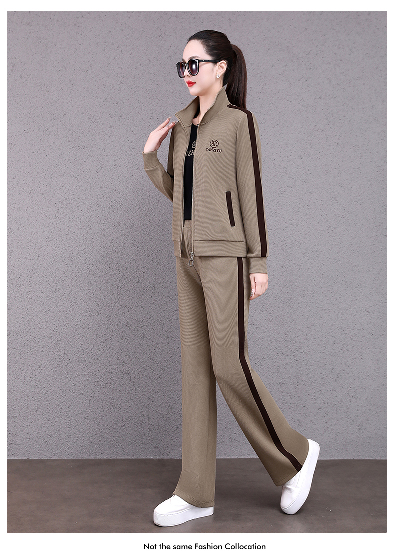 스포츠 세트 여성의 봄과 가을 새로운 패션 스탠드 칼라 서양식 단색 느슨한 캐주얼 서양식 연령 감소 러닝 3 피스 세트스토어 가기