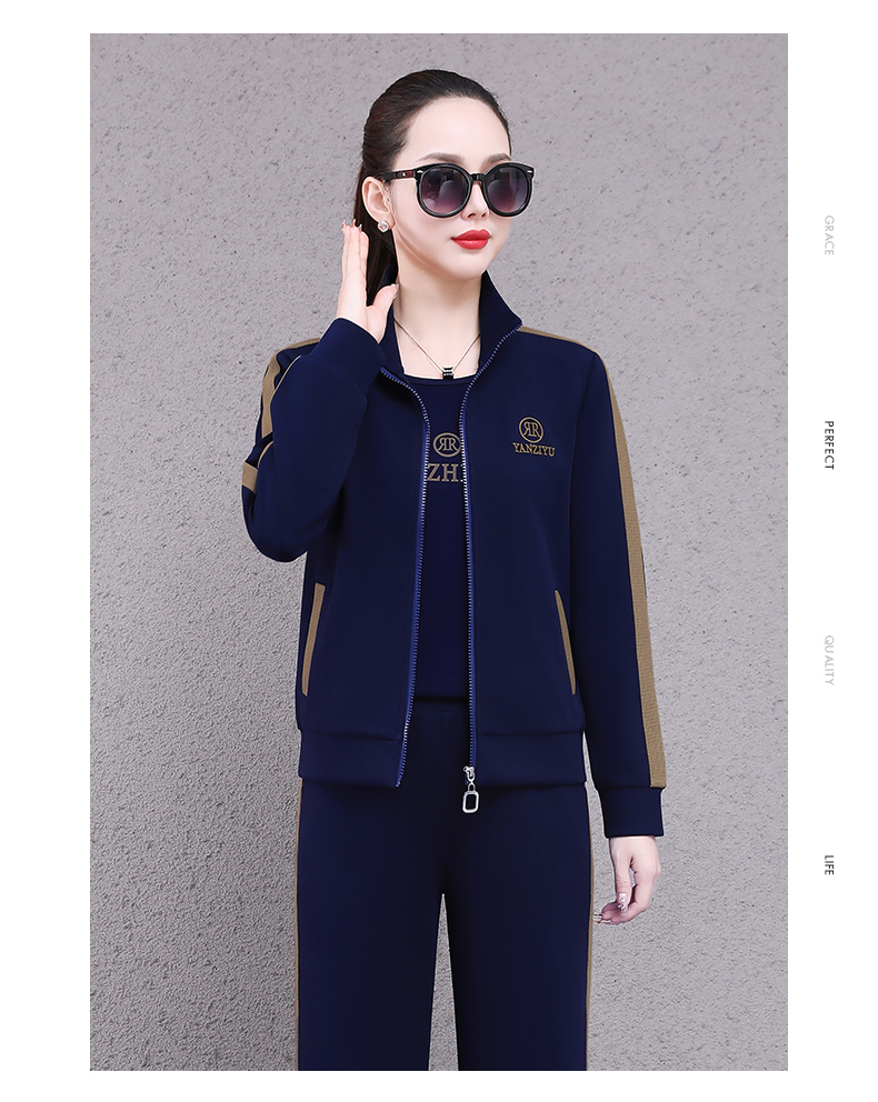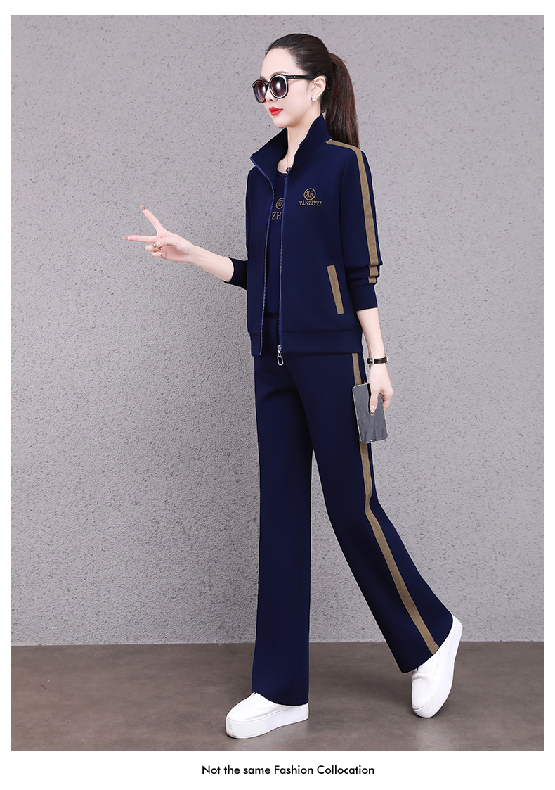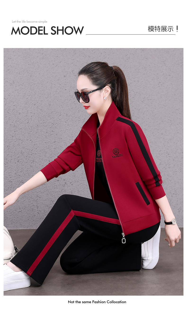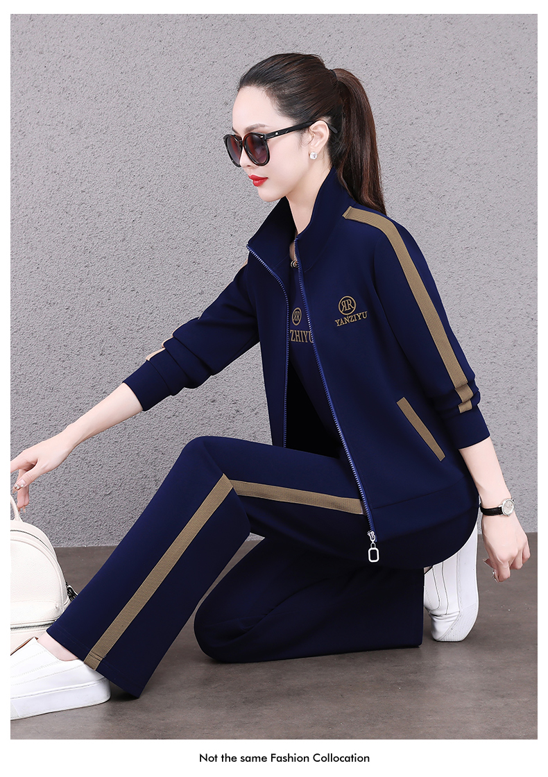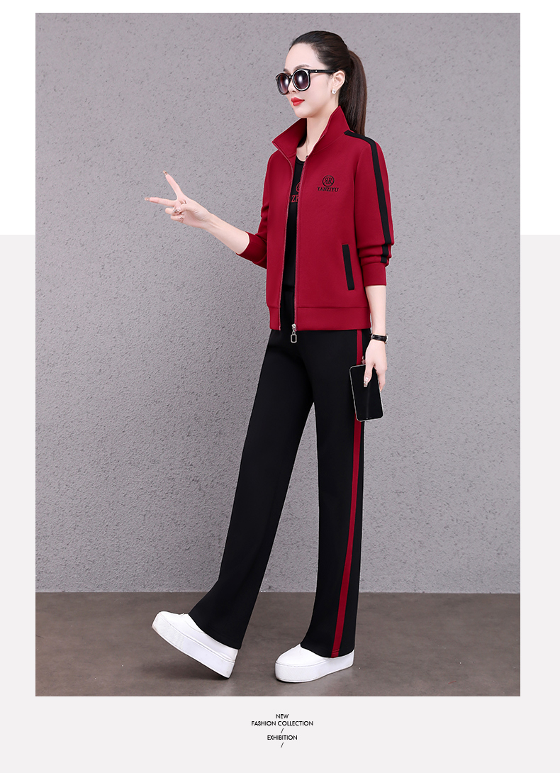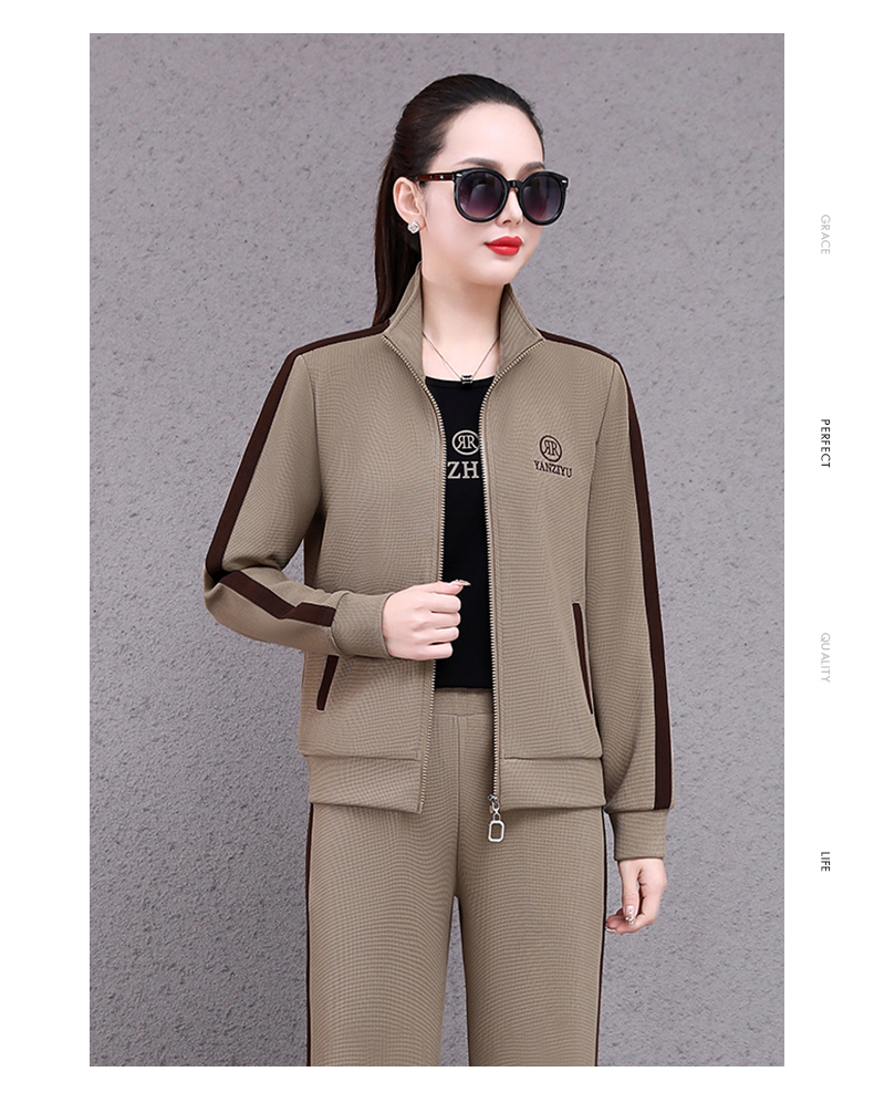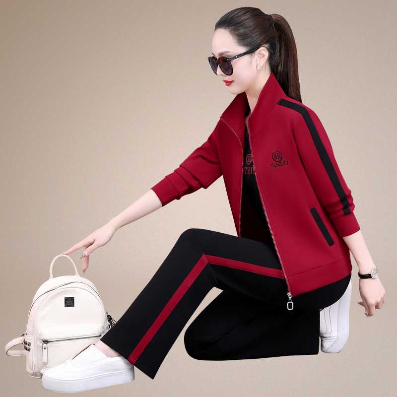 스포츠 세트 여성의 봄과 가을 새로운 패션 스탠드 칼라 서양식 단색 느슨한 캐주얼 서양식 연령 감소 러닝 3 피스 세트