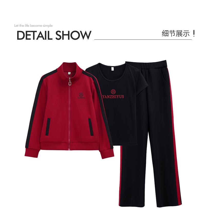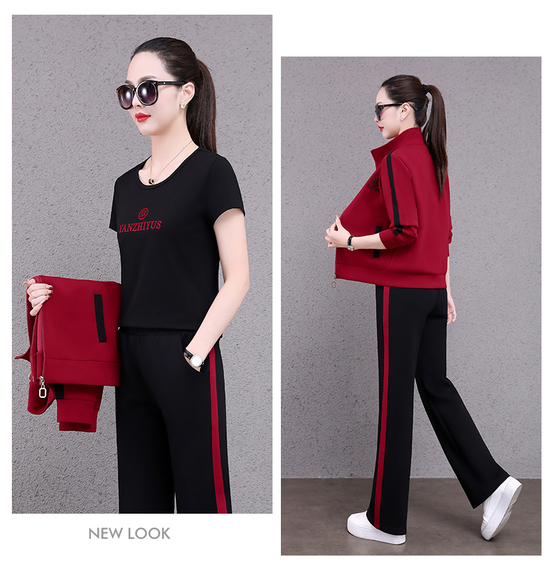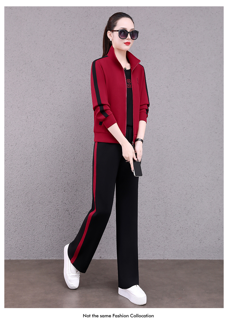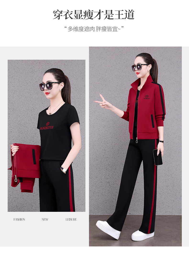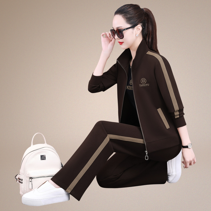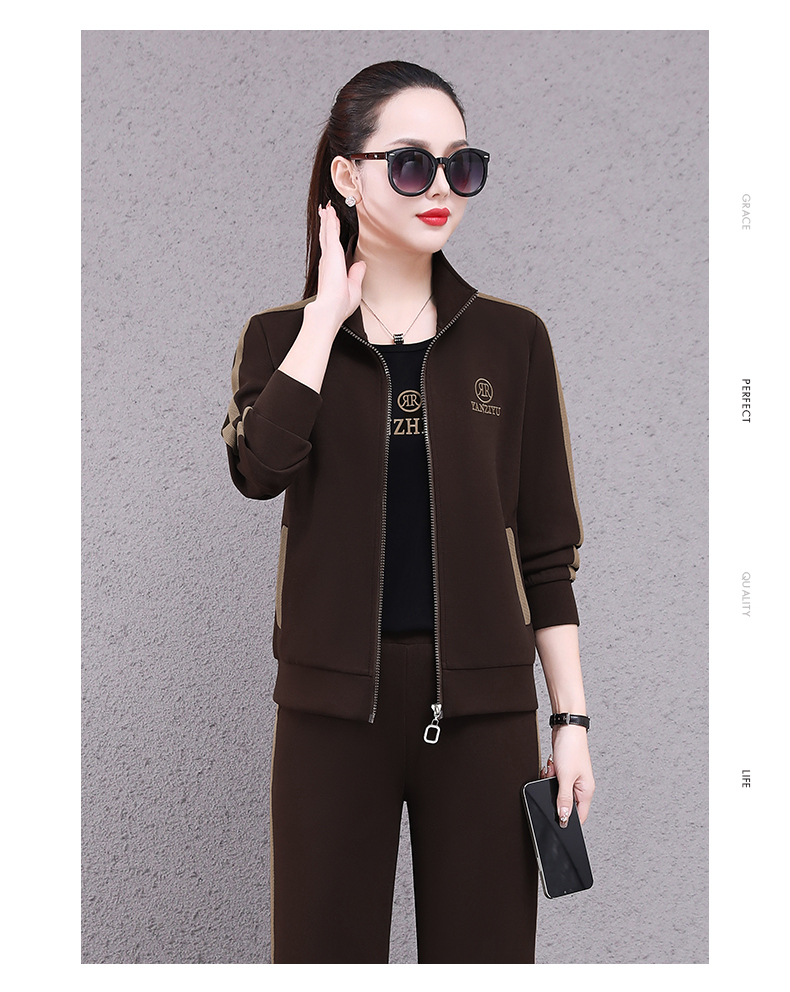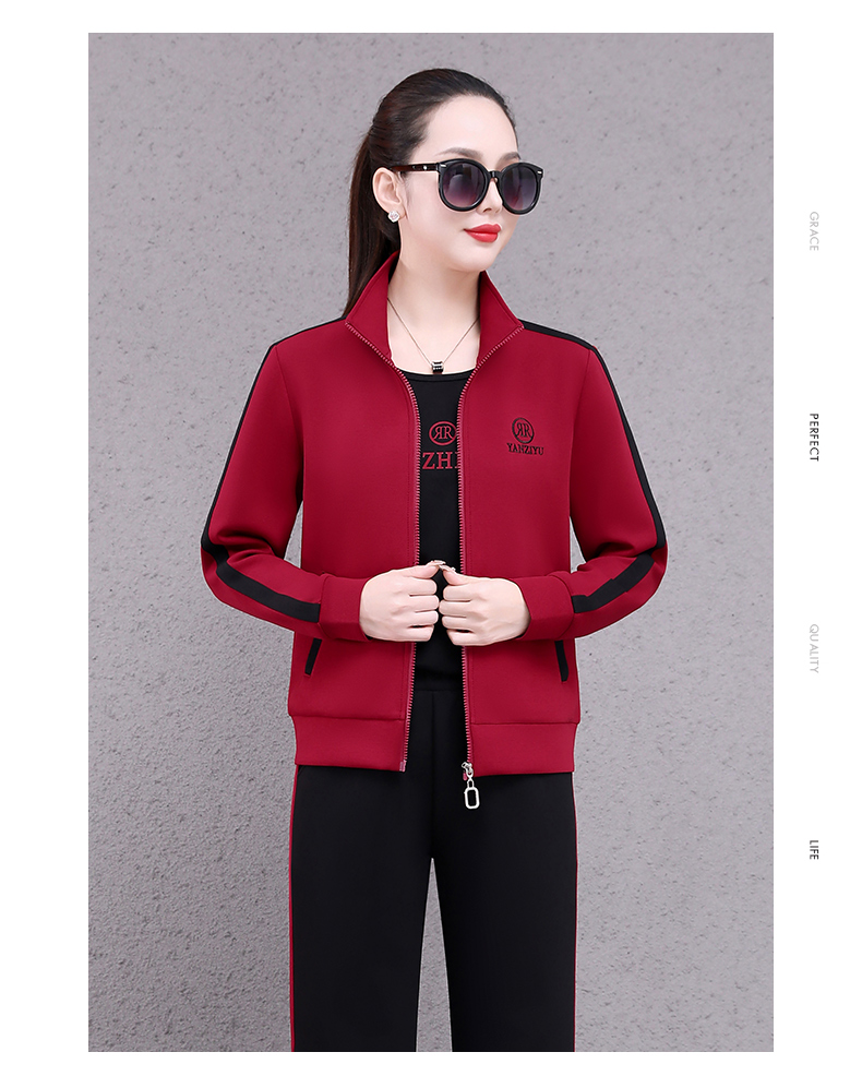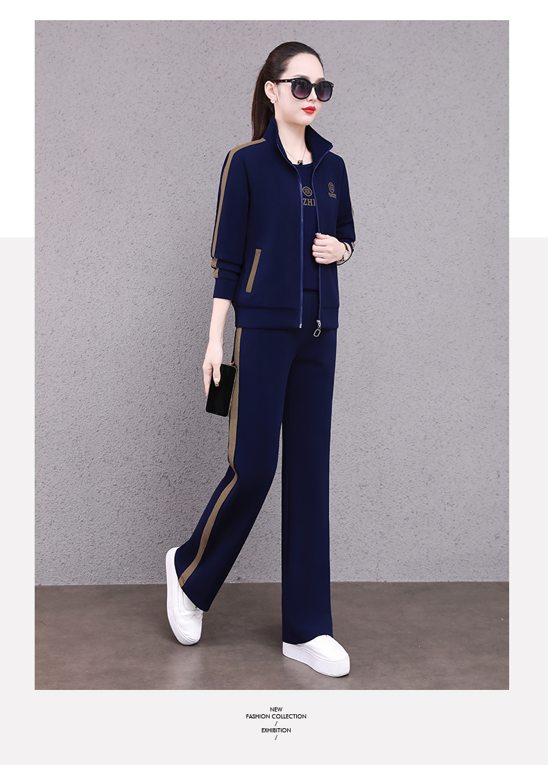 스포츠 세트 여성의 봄과 가을 새로운 패션 스탠드 칼라 서양식 단색 느슨한 캐주얼 서양식 연령 감소 러닝 3 피스 세트