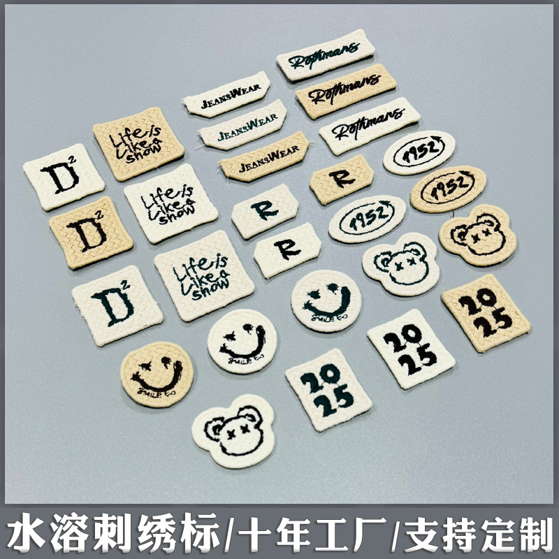 수용성 자수 라벨 10 년 공장 3 차원 컴퓨터 자수 라벨 의류 장식 라벨 폴리 에스테르 하이 퀄리티 작은 천 라벨