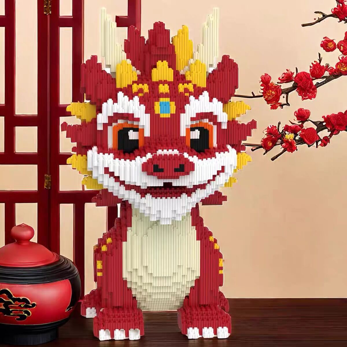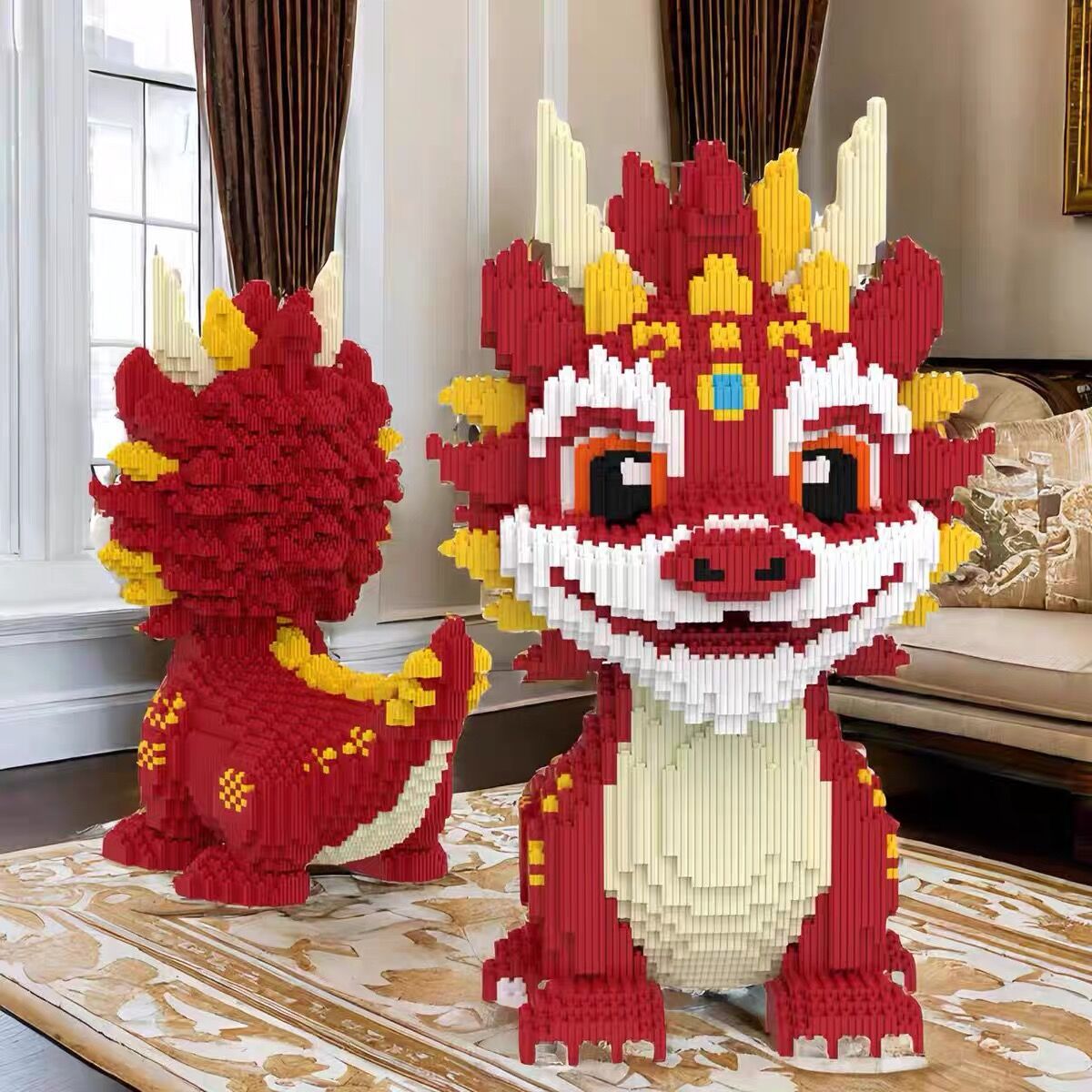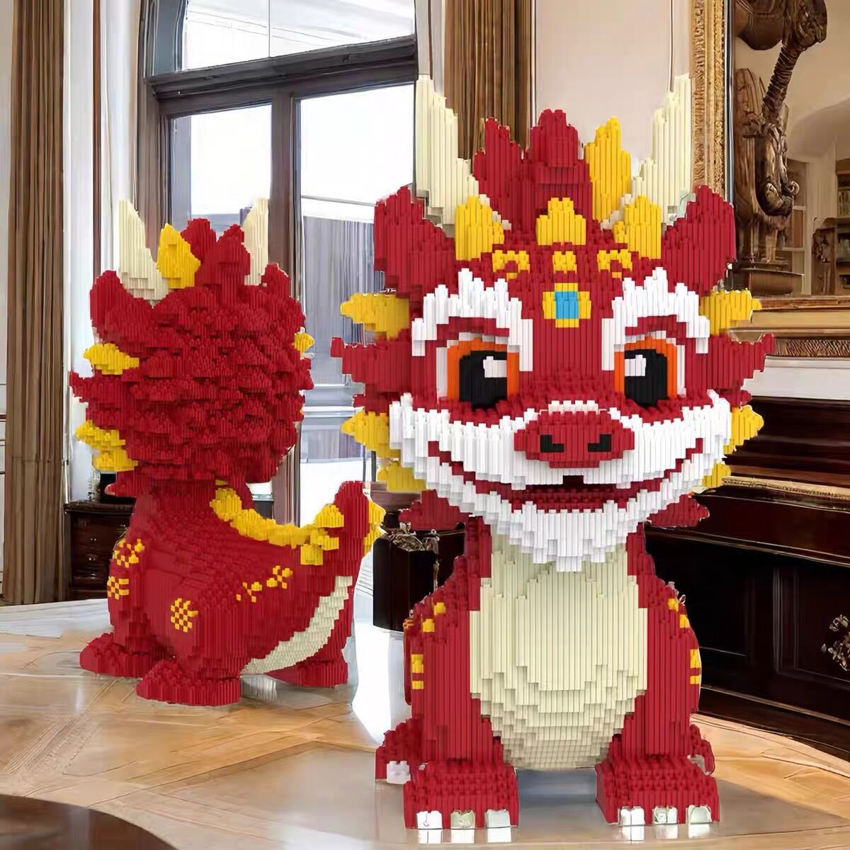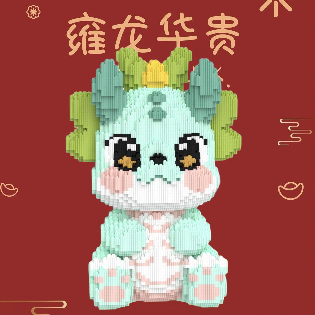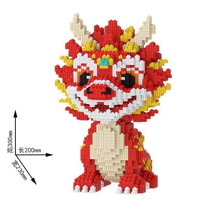 [드래곤 핫 제품의 해] 중국 스타일 기린 드래곤 빌딩 블록 작은 입자 퍼즐 어린이 장난감 소년 소녀 선물
