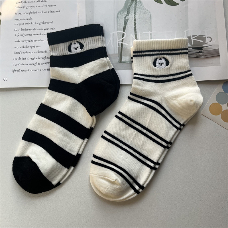 时髦小物 ,温柔可爱 俏皮少女 条纹百搭不厌的经典黑白小袜子 真的是绝绝子