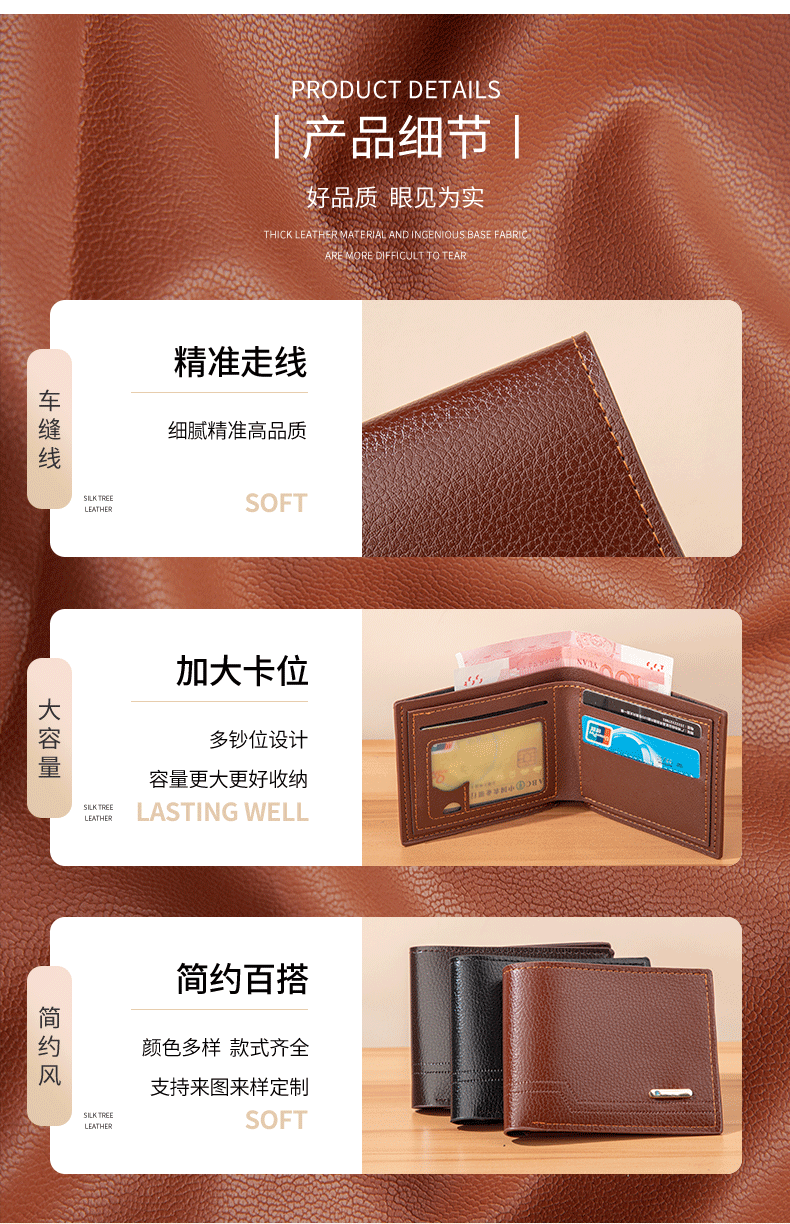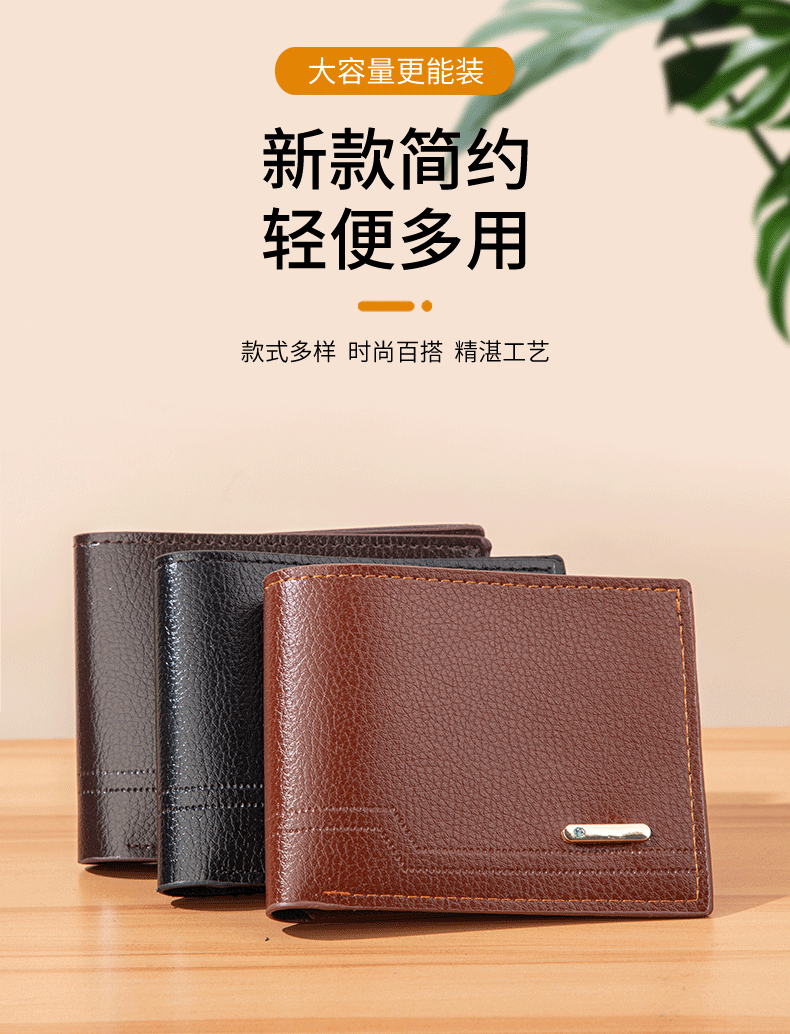 새로운 남성용 지갑 남성용 짧은 지갑 유행 캐주얼 리치 패턴 소프트 지갑 멀티 카드 대용량 소형 지갑