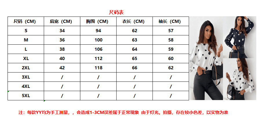 2023 유럽과 미국의 국경 간 대외 무역 새로운 여성 가을 셔츠 라운드 넥 폴카 도트 긴 소매 셔츠 프린트 셔츠 여성용스토어 가기