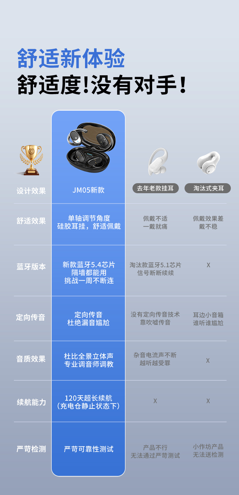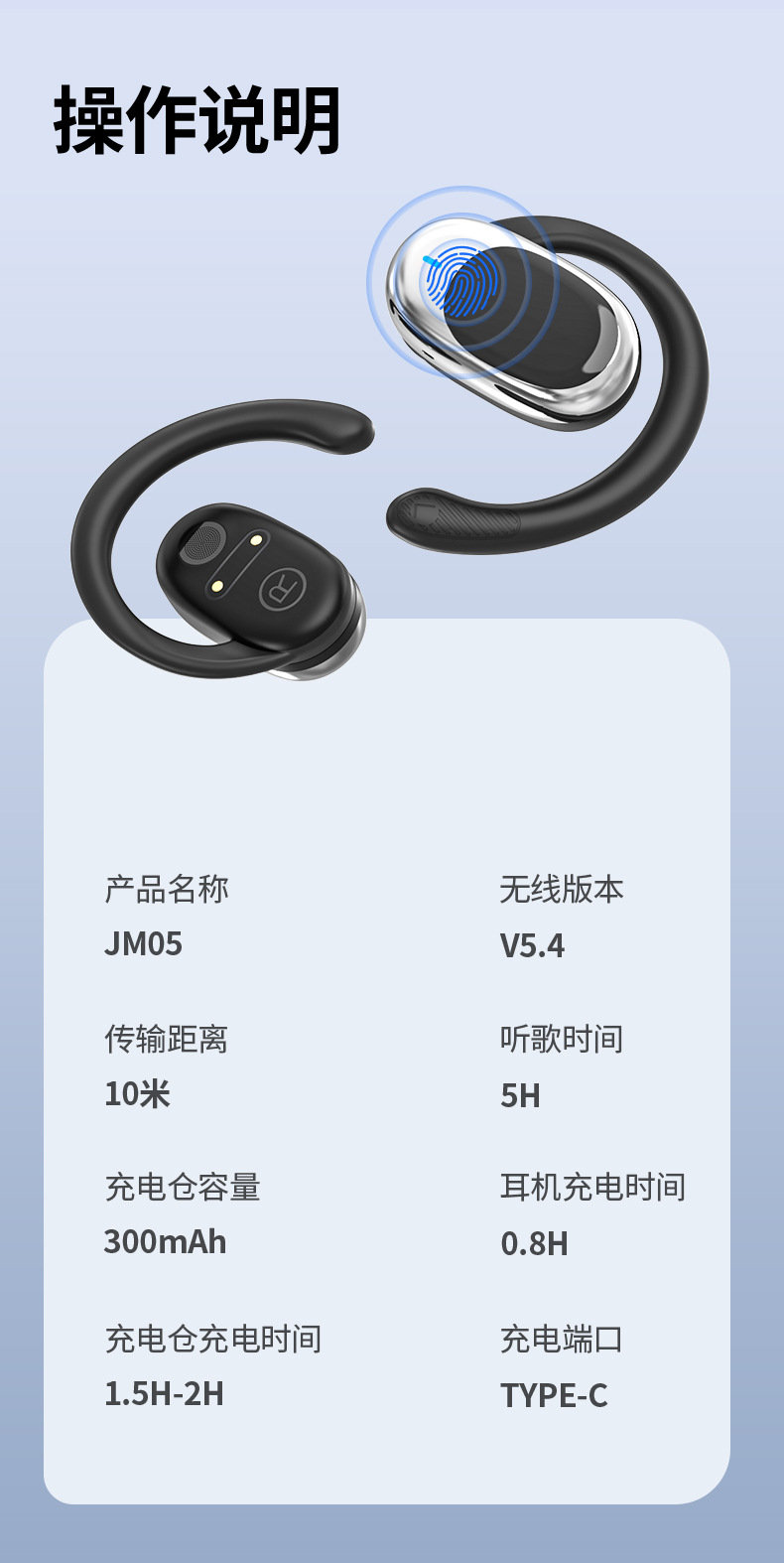 국경 간 JM05 블루투스 헤드셋 로타리 이어 매달린 무선 긴 내구성 OWS 귀 스포츠 헤드셋 도매