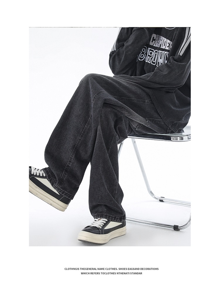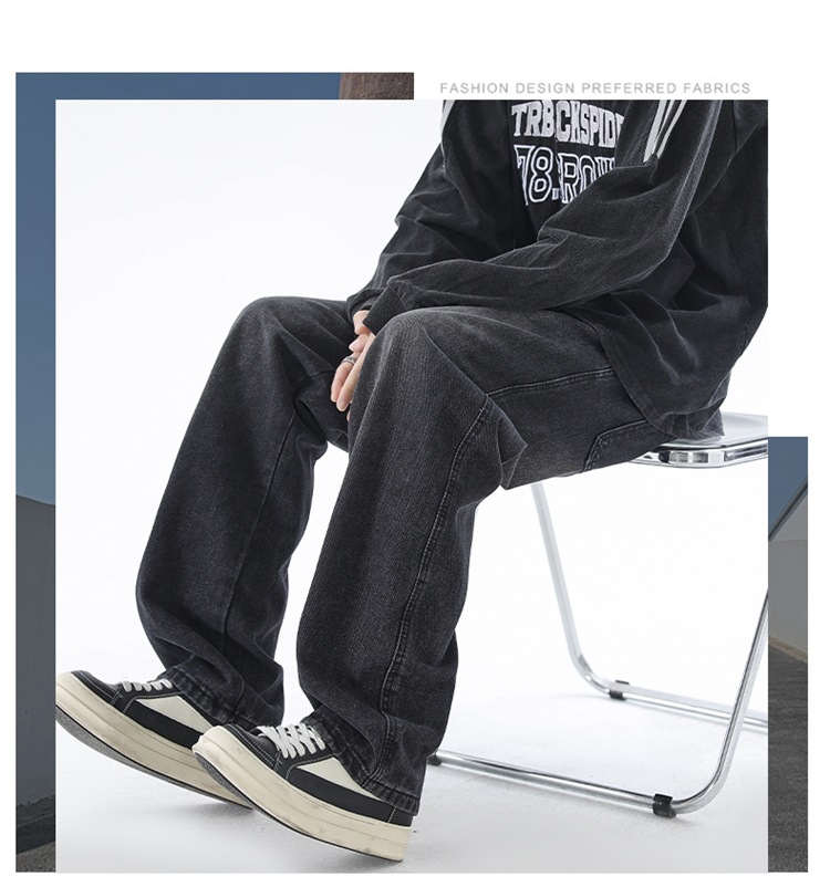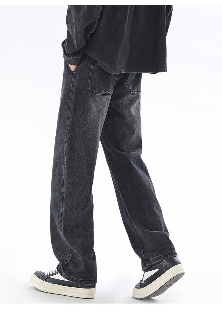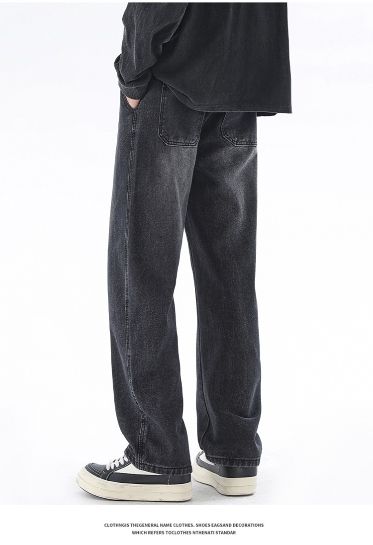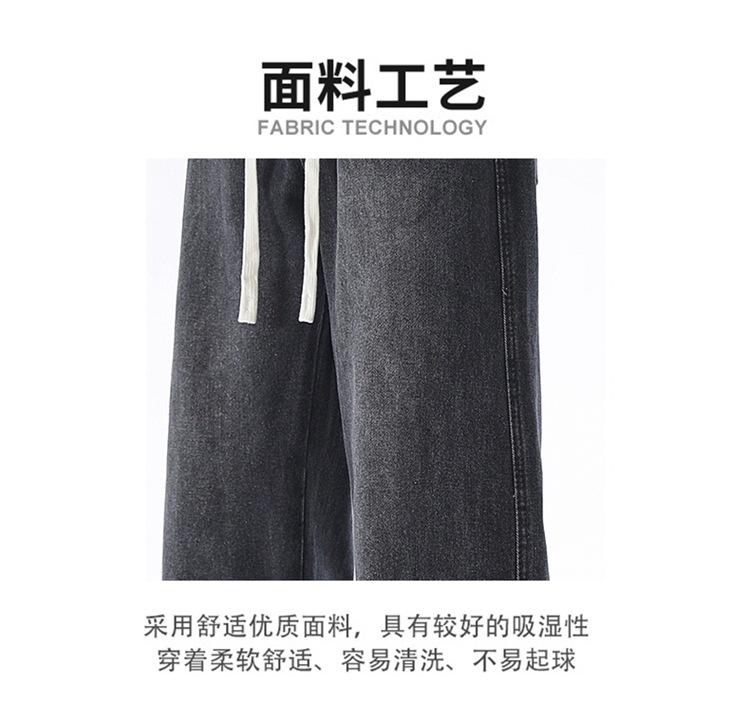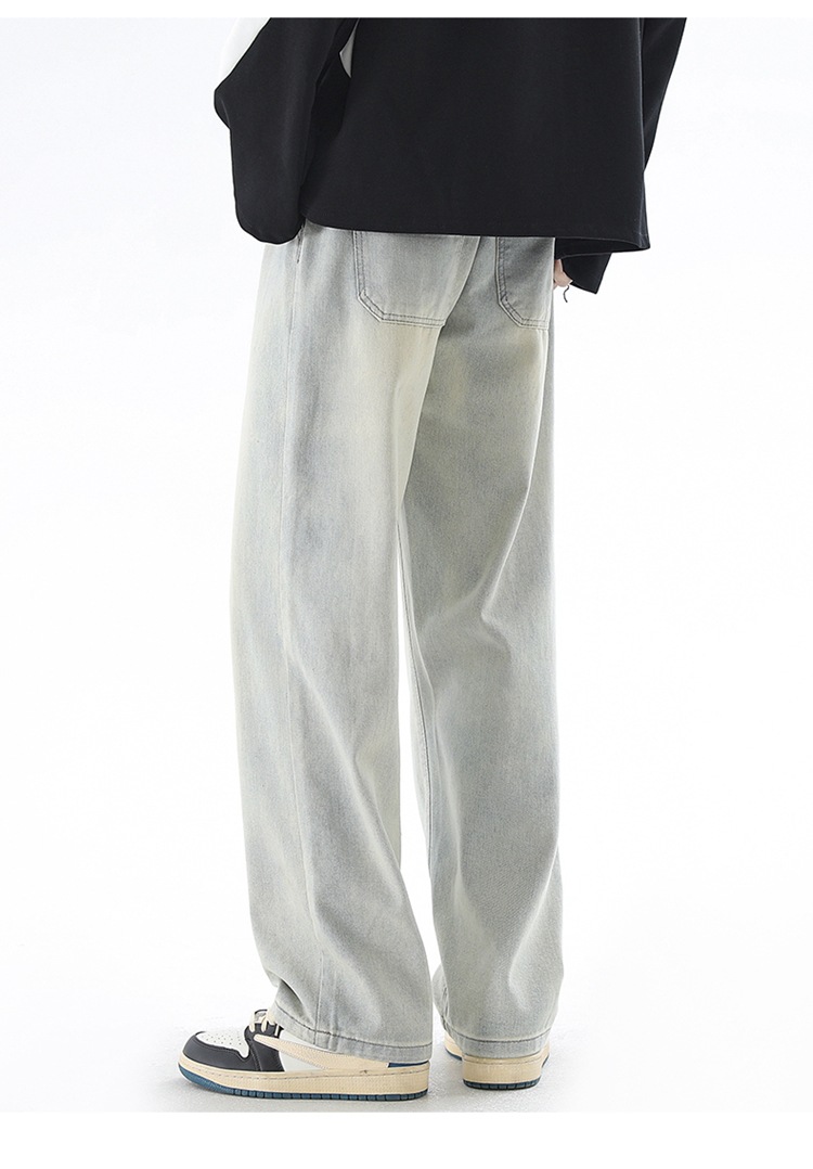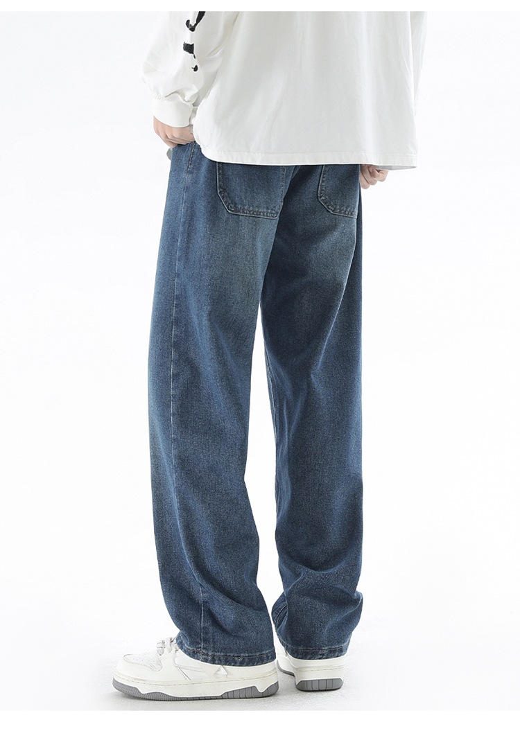 상하이 남자 탄성 레이스 업 스트레이트 청바지 남자 홍콩 스타일 올 매치가 긴 캐주얼 남자 와이드 레그 팬츠를 씻었습니다.스토어 가기