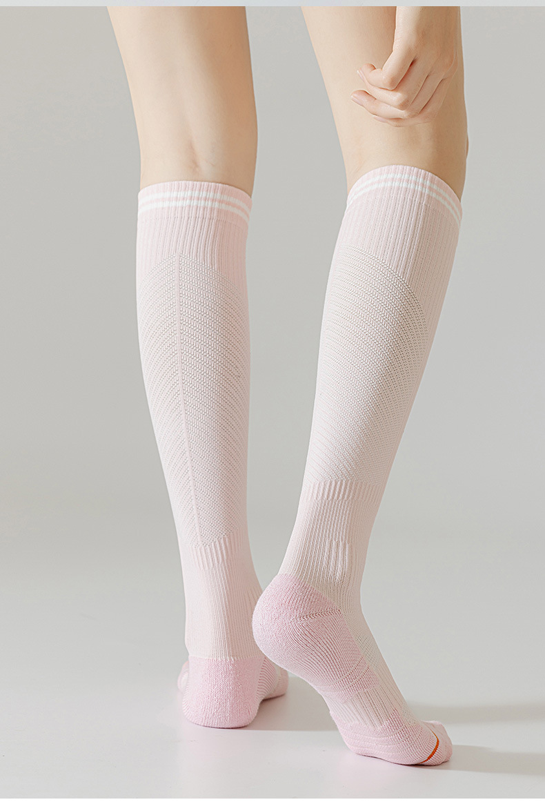 압력 스포츠 양말 여성 피트니스 중반 종아리 양말 전문 달리기 로프 긴 압축 양말 요가 스키니 다리 양말