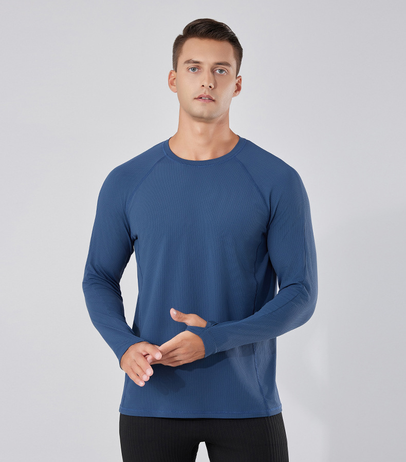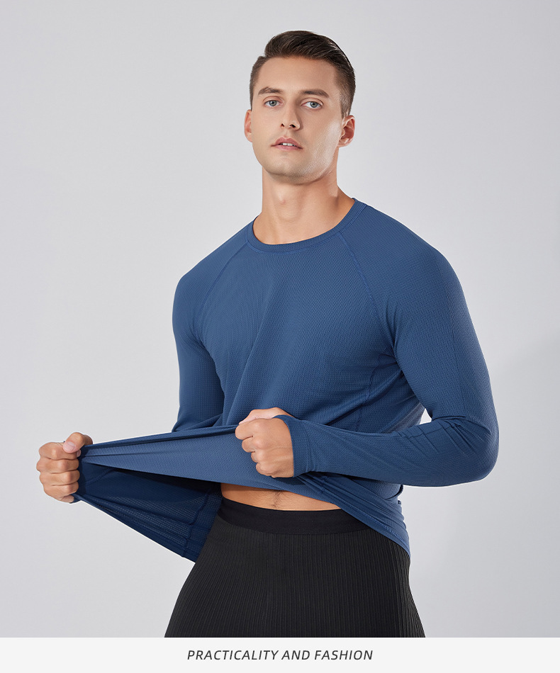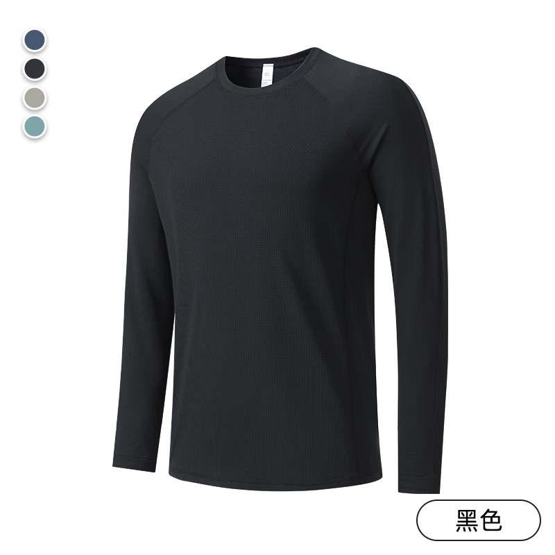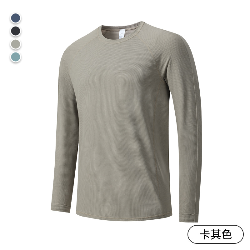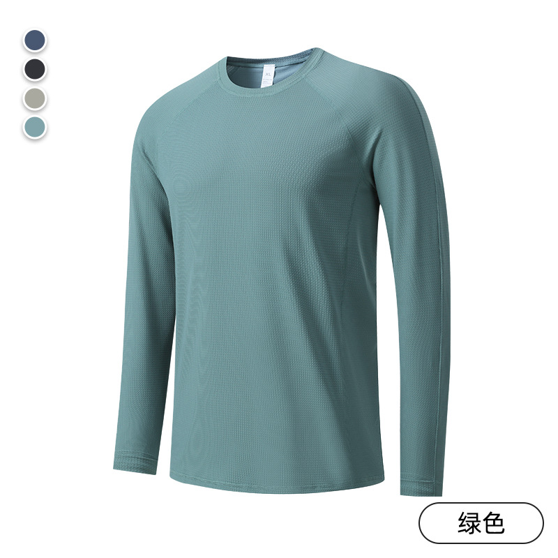 빠른 건조 통기성 아이스 실크 긴팔 티셔츠 남성 봄과 가을 얇은 스트레치 야외 피트니스 달리기 훈련 스포츠 사이클링 의류