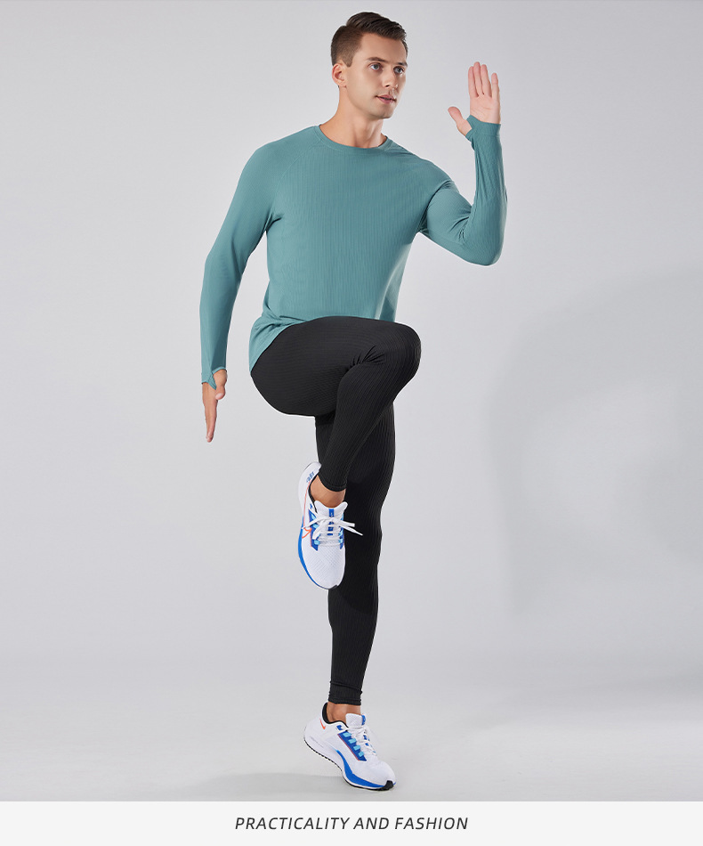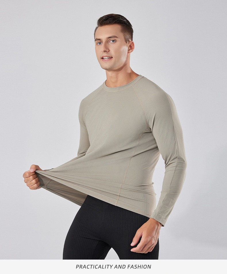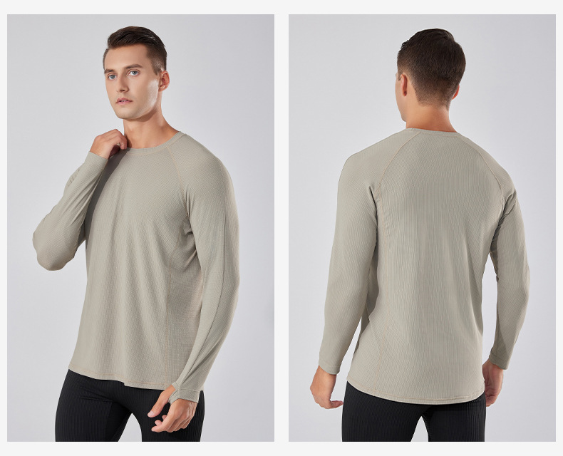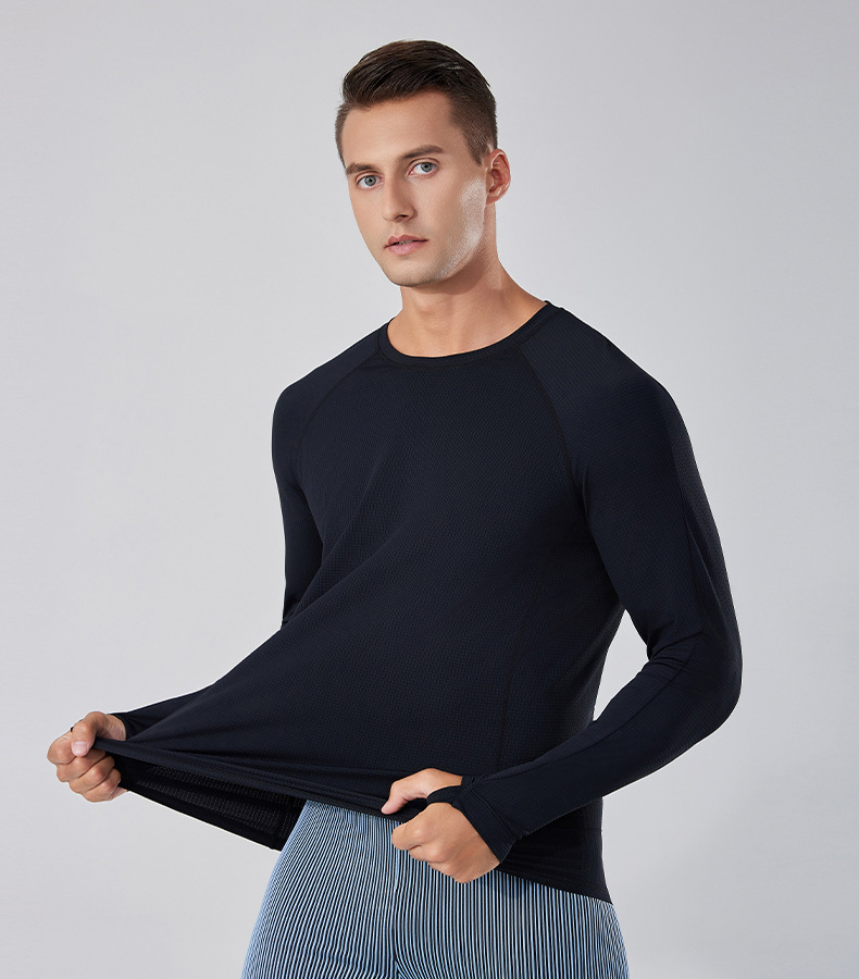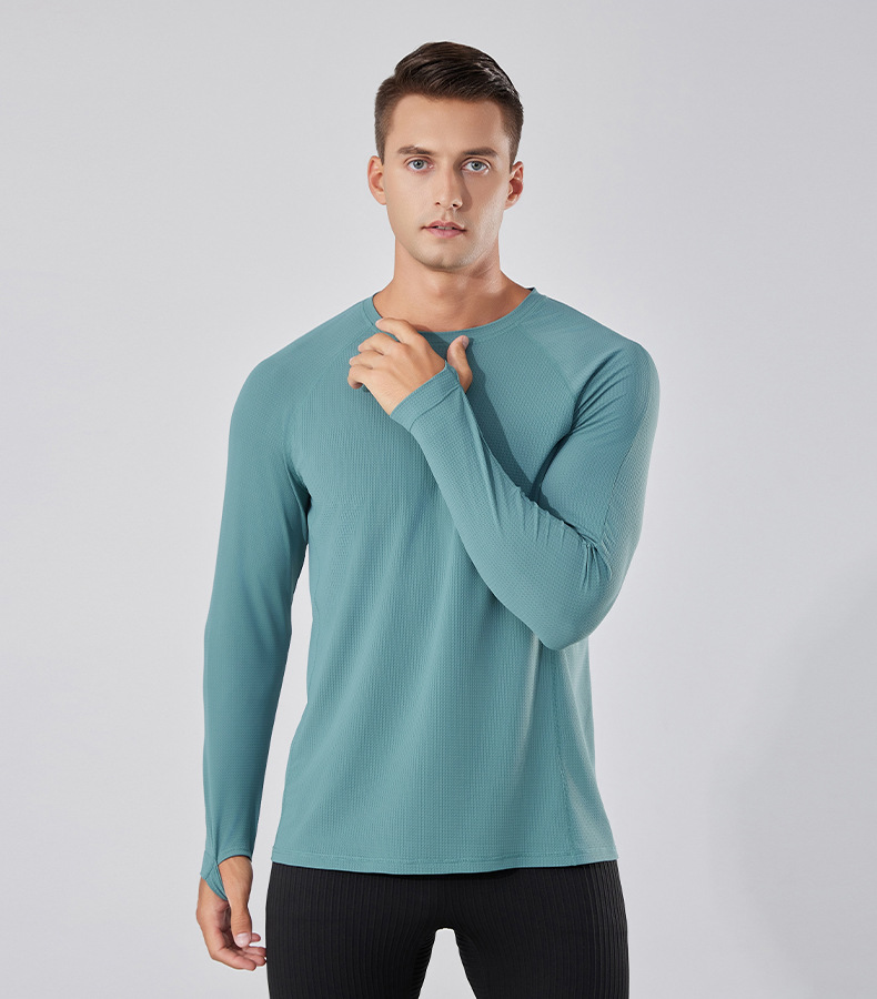 빠른 건조 통기성 아이스 실크 긴팔 티셔츠 남성 봄과 가을 얇은 스트레치 야외 피트니스 달리기 훈련 스포츠 사이클링 의류