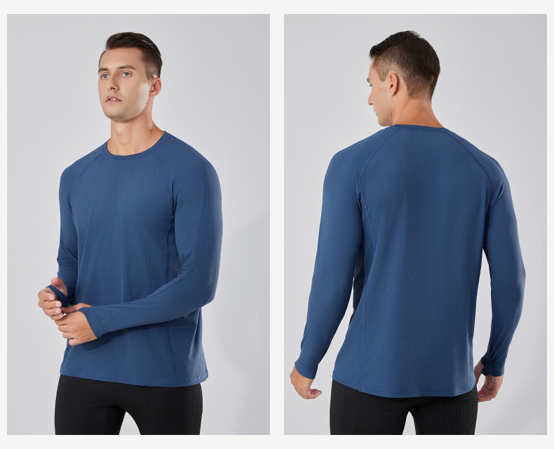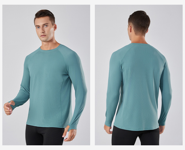 빠른 건조 통기성 아이스 실크 긴팔 티셔츠 남성 봄과 가을 얇은 스트레치 야외 피트니스 달리기 훈련 스포츠 사이클링 의류스토어 가기