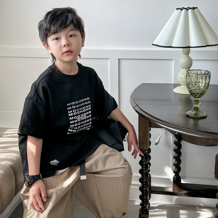 男童短袖t恤2024新款儿童夏装潮酷印花体恤韩版帅气男孩半袖上衣