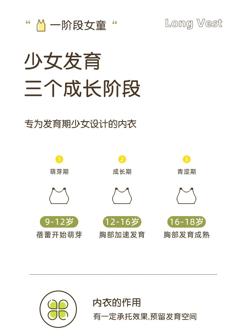 소녀의 원활한 개발 기간 학생 퀼트 긴 조끼 스틸 링 안티 범프 피부 친화적 인 부드러운 소녀의 편안한 속옷