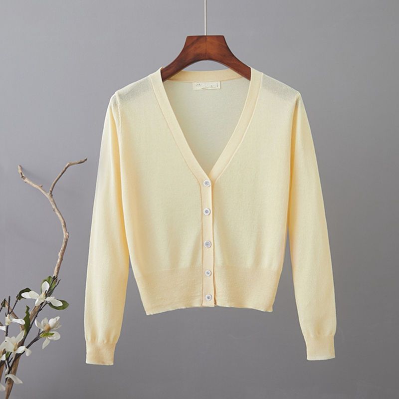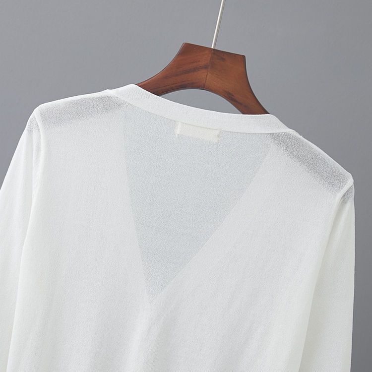 새로운 V 넥 아이스 실크 얇은 니트 카디건 여성 여름 스커트 야외 태양 보호 셔츠 올 매치 에어컨 룸 숄탑