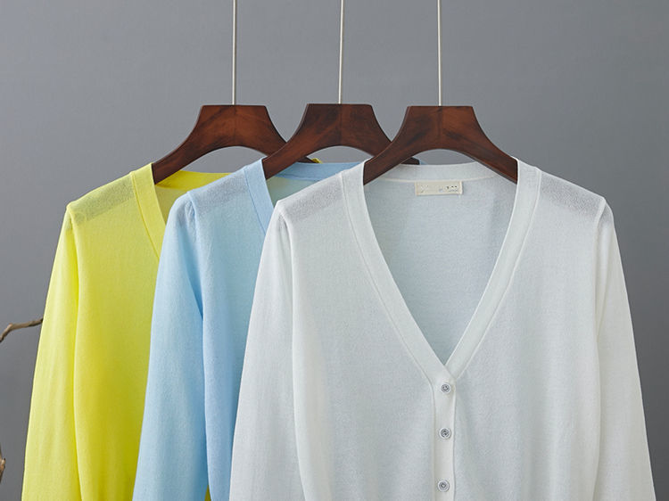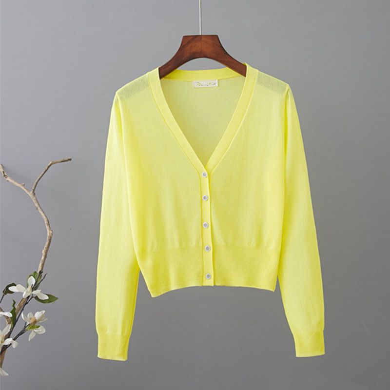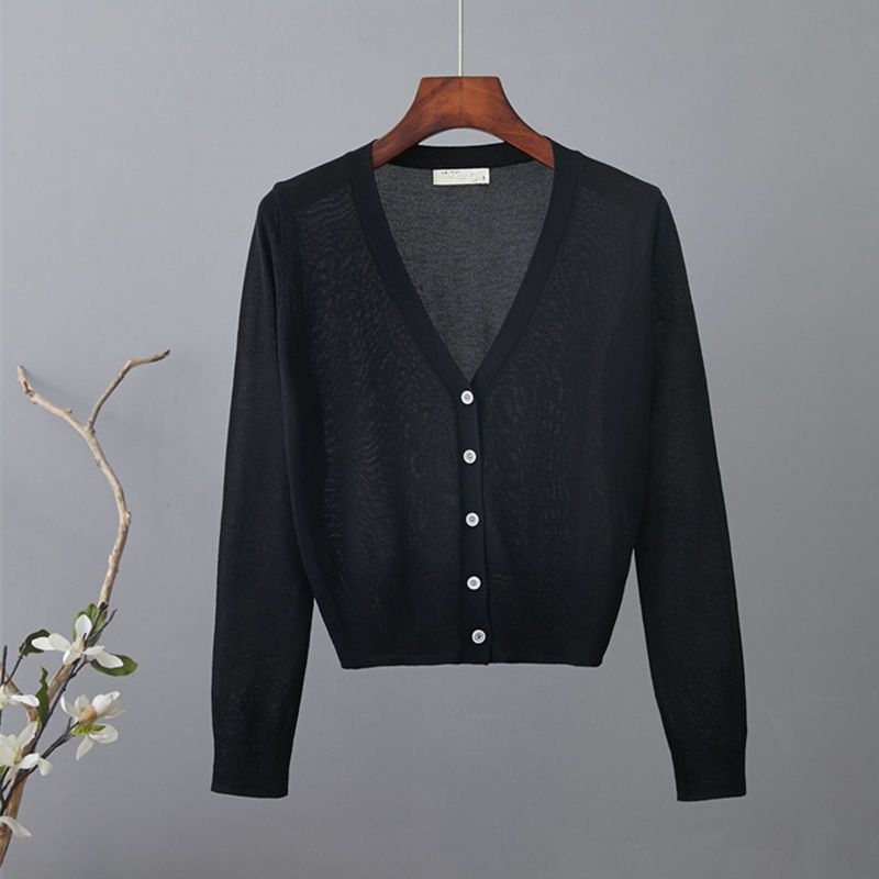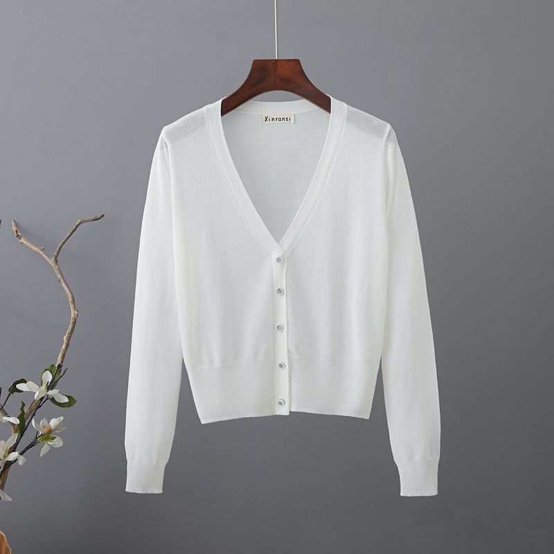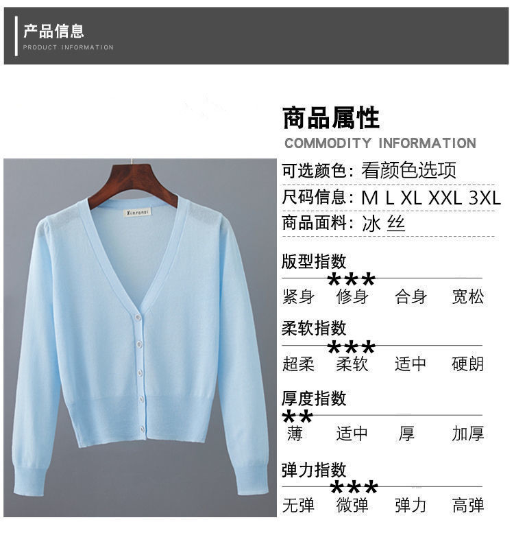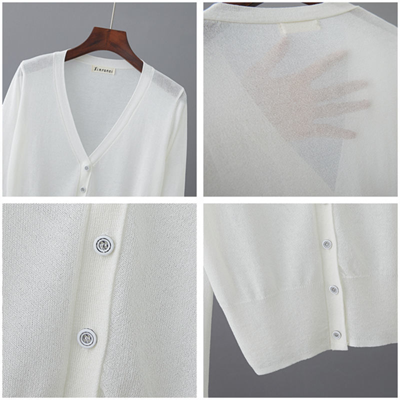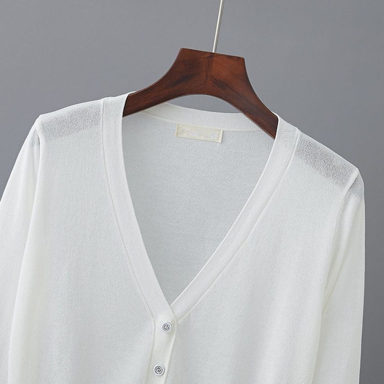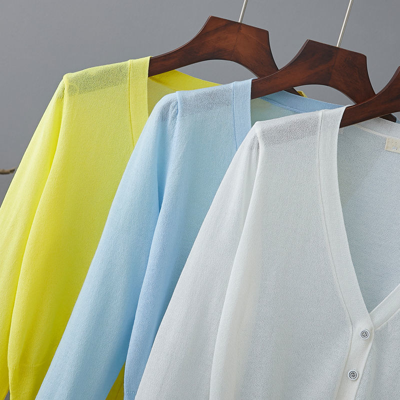 새로운 V 넥 아이스 실크 얇은 니트 카디건 여성 여름 스커트 야외 태양 보호 셔츠 올 매치 에어컨 룸 숄탑스토어 가기