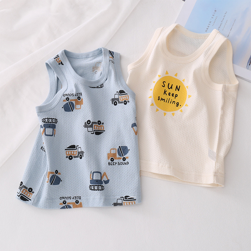 여름 소년 만화 바닥 셔츠 조끼 순면 부드러운 통기성 땀 흡수성 어린이 소년 조끼스토어 가기