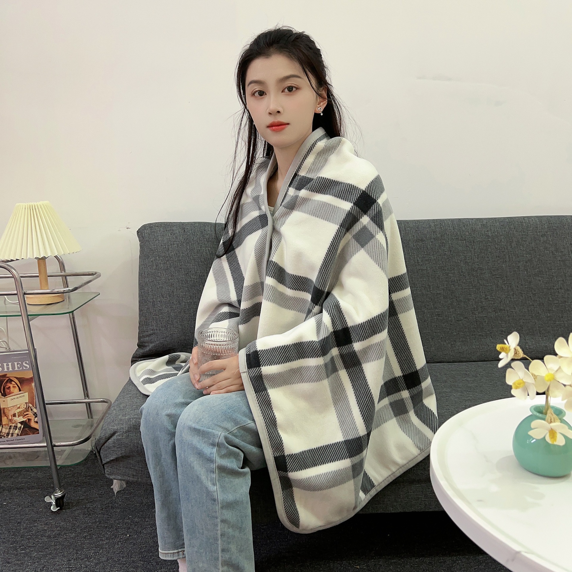 국경 간 공급 폴라 플리스 숄 담요 점심 시간 다리 커버 플러시 담요 사무실 양털 담요 간단한 격자 무늬 담요