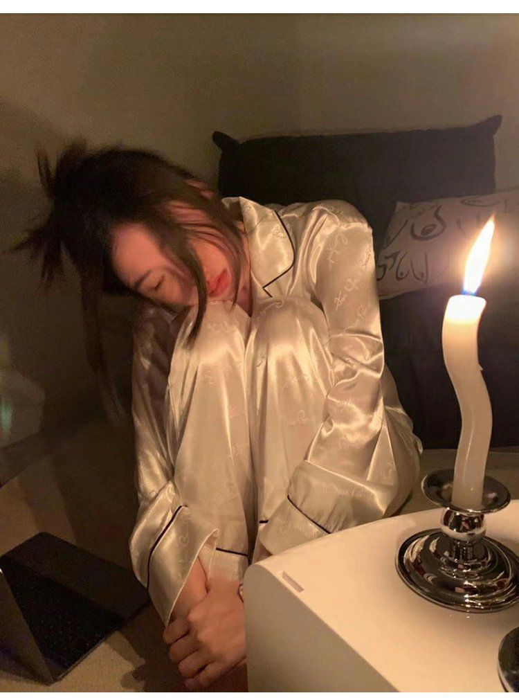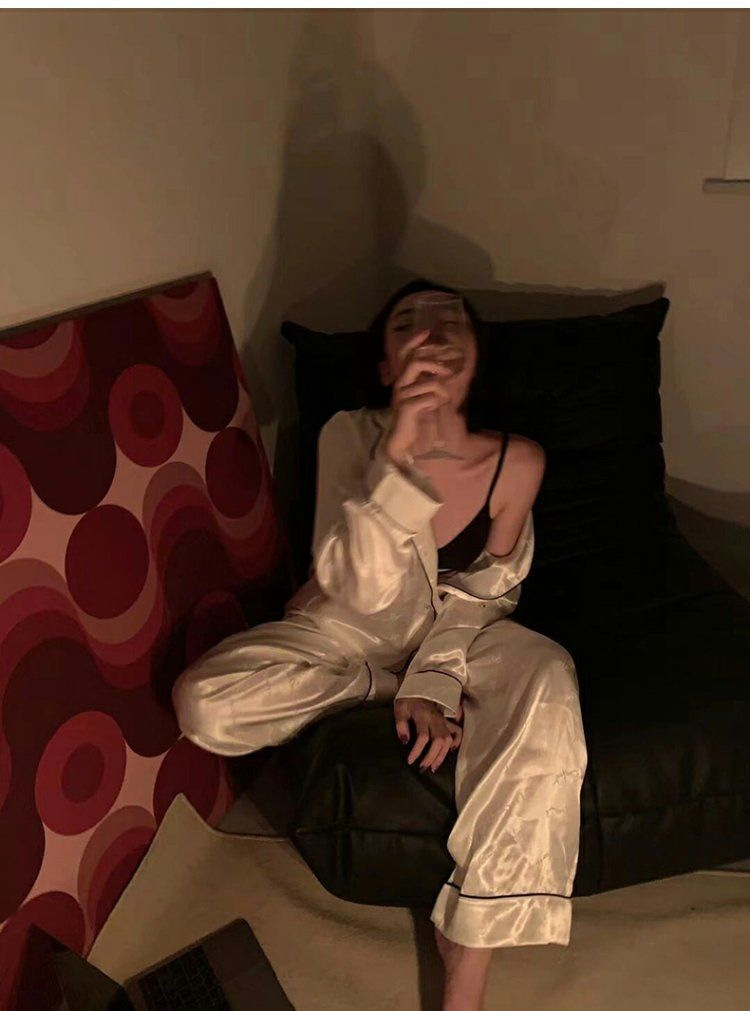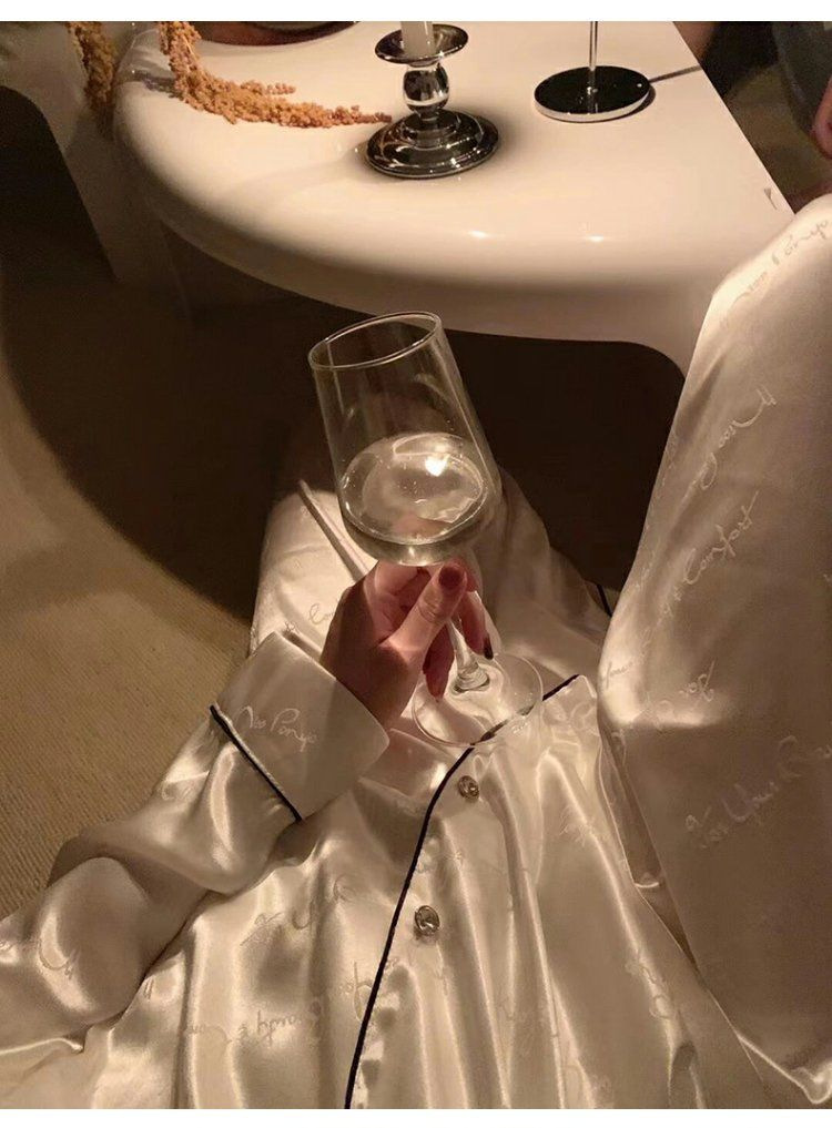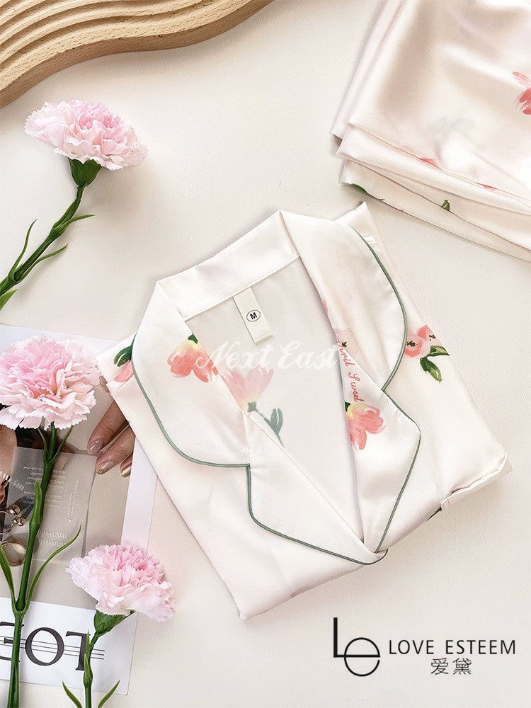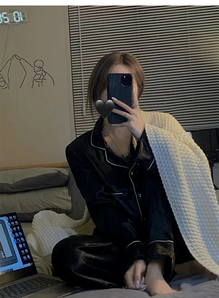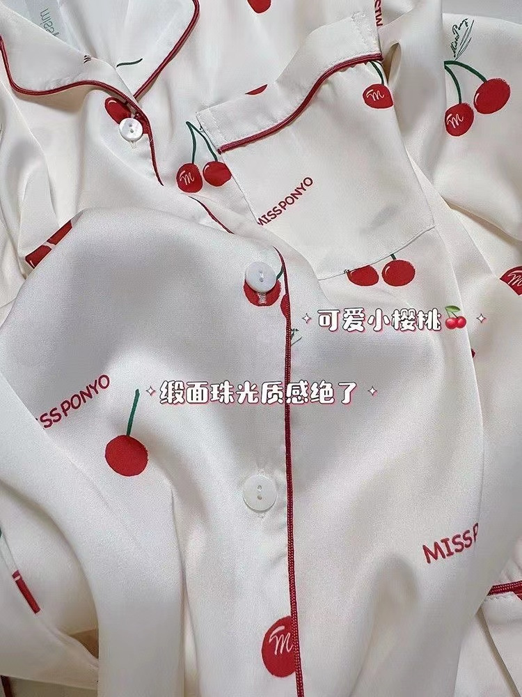 작은 빨간 승마 책 같은 스타일 봄과 가을 긴 소매 잠옷 여성의 얼음 실크 캐주얼 여자 친구 스타일 고급 감각 실크 같은 홈 옷 세트스토어 가기