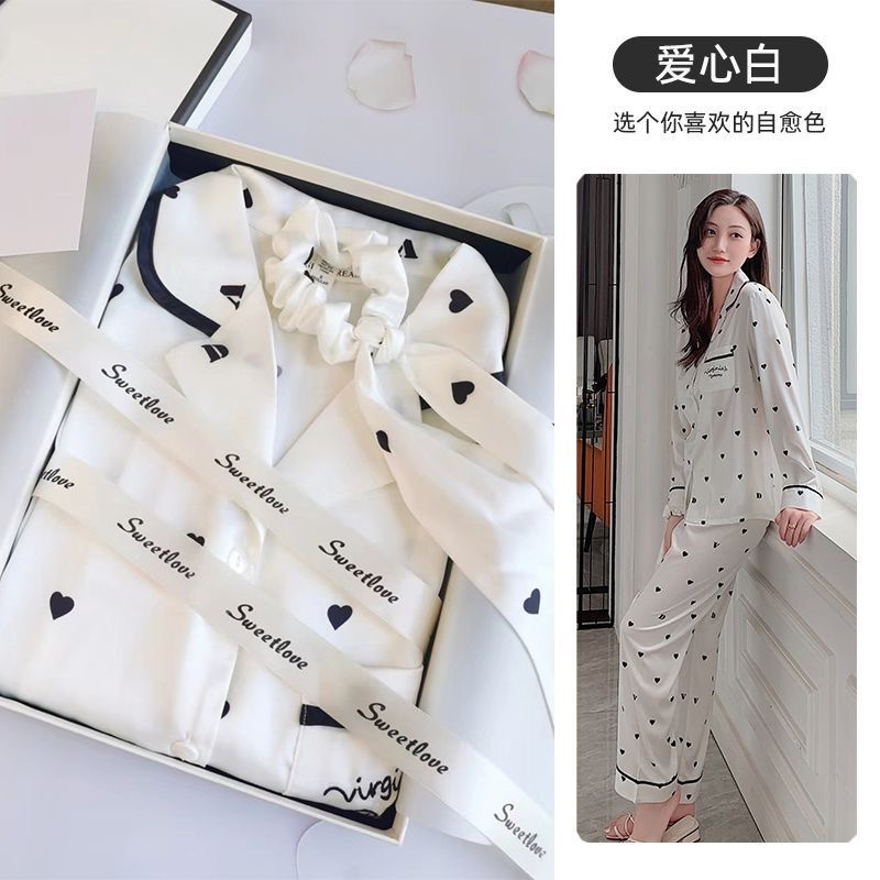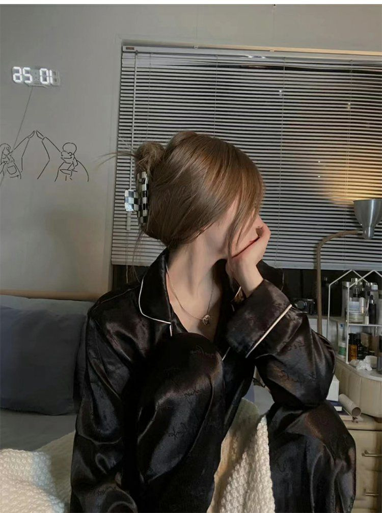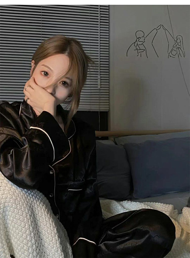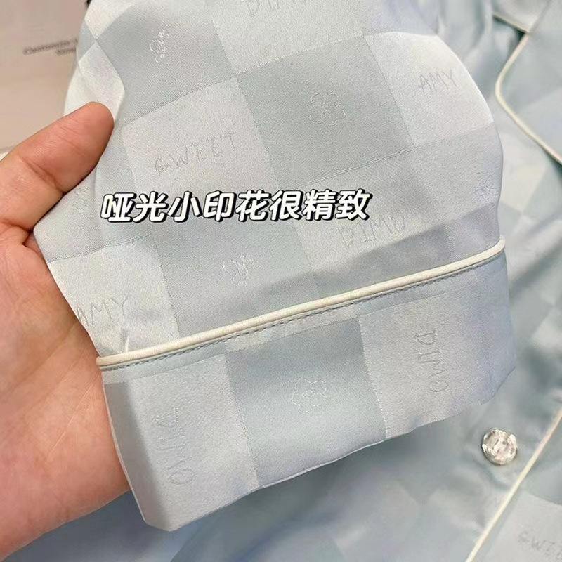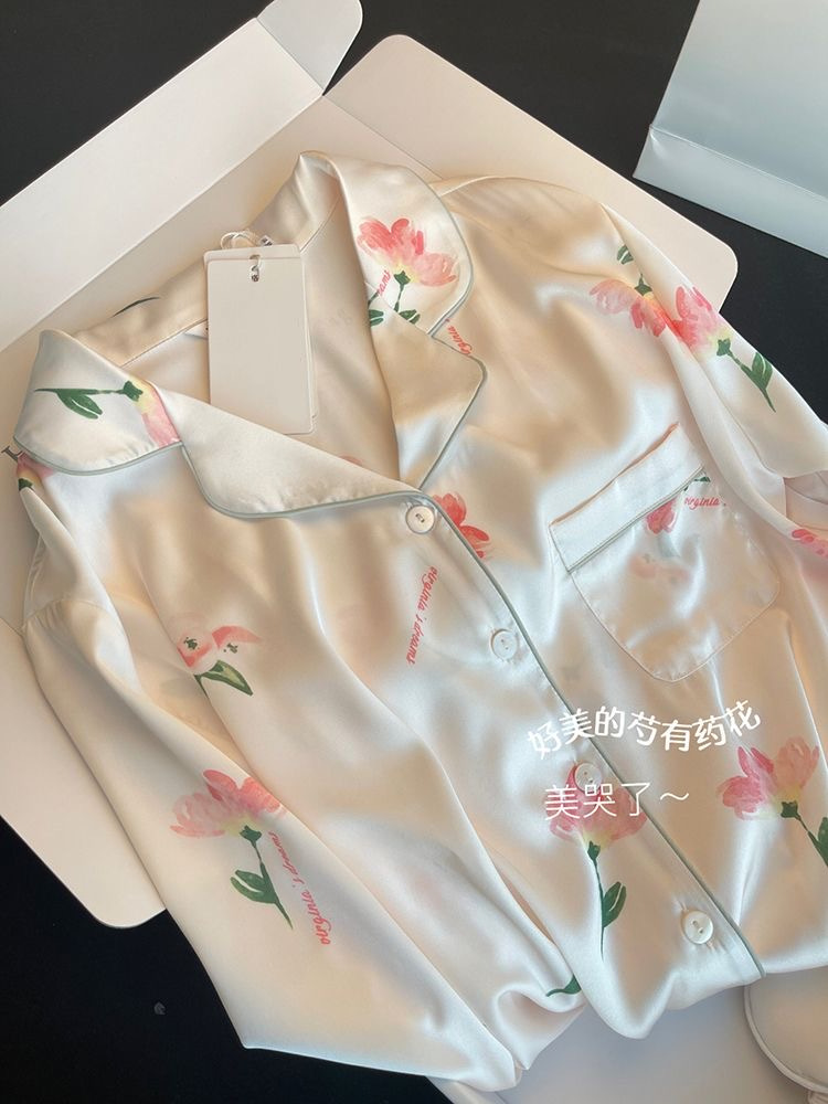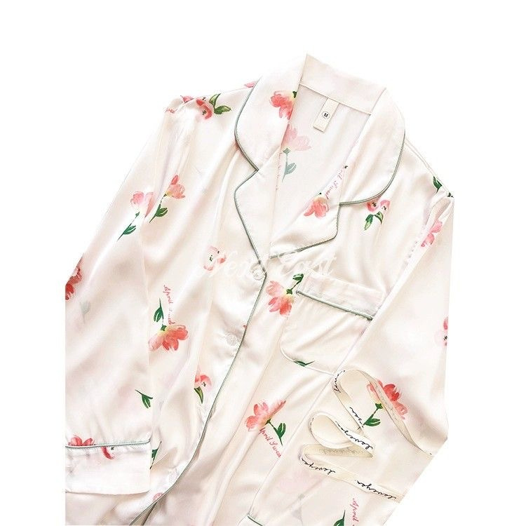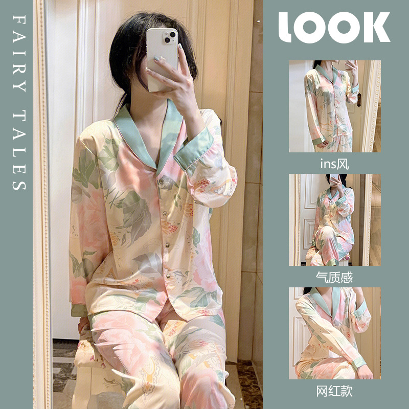 작은 빨간 승마 책 같은 스타일 봄과 가을 긴 소매 잠옷 여성의 얼음 실크 캐주얼 여자 친구 스타일 고급 감각 실크 같은 홈 옷 세트