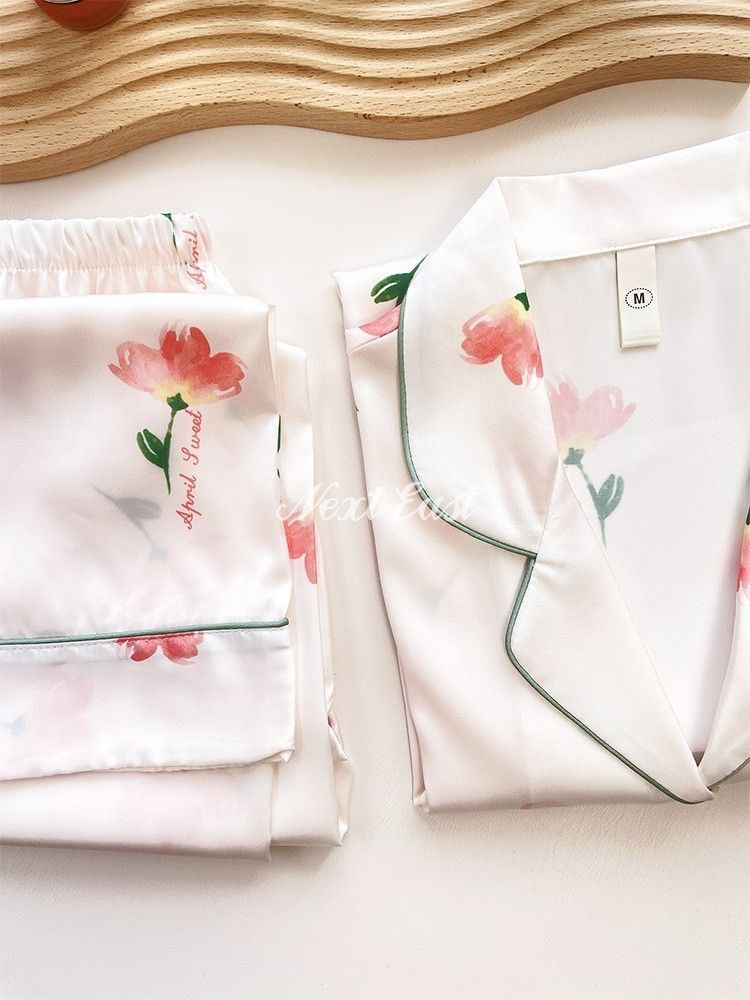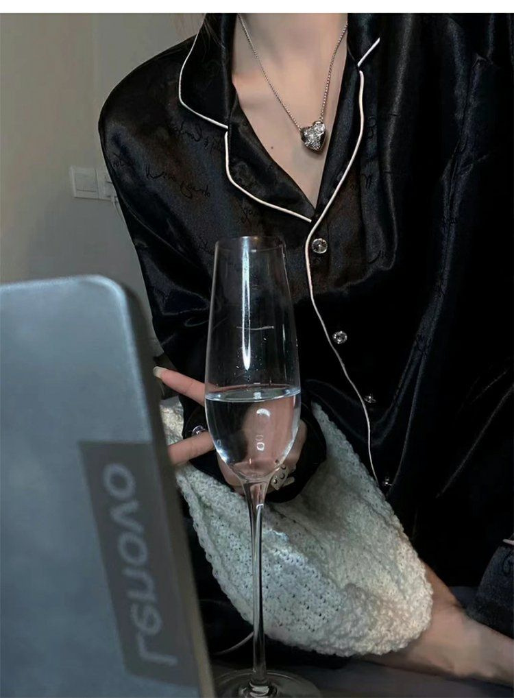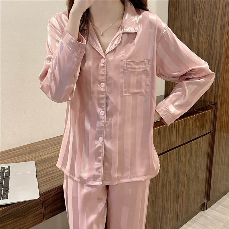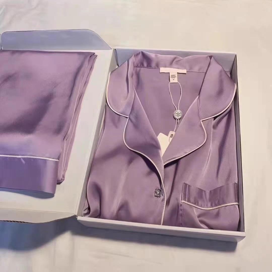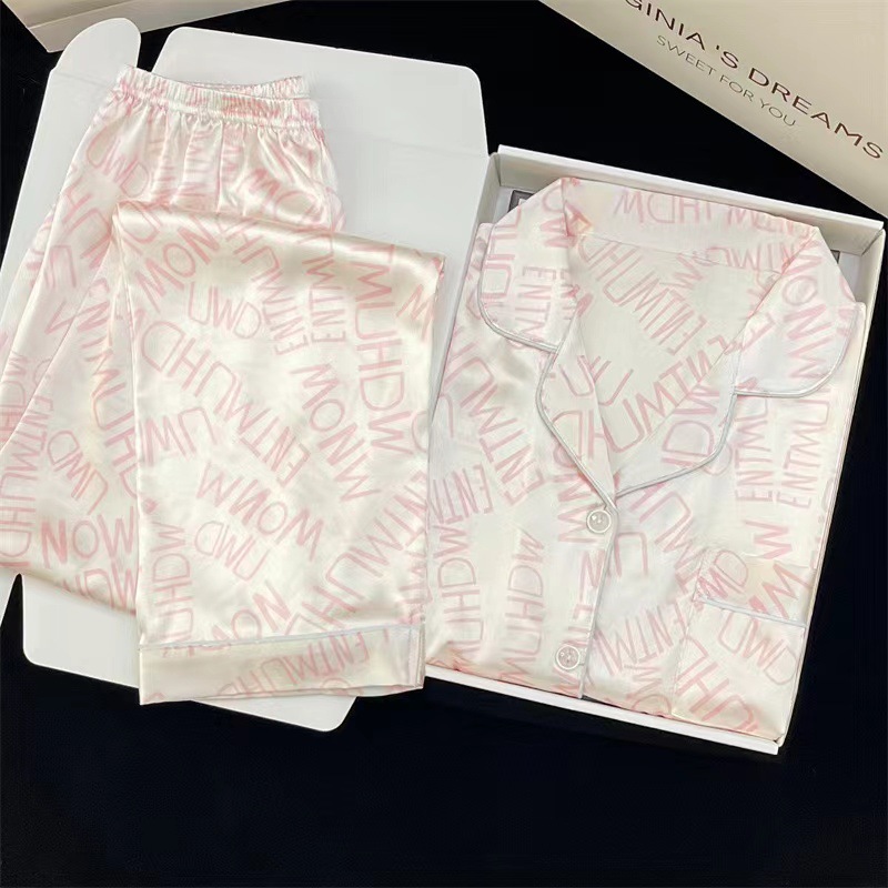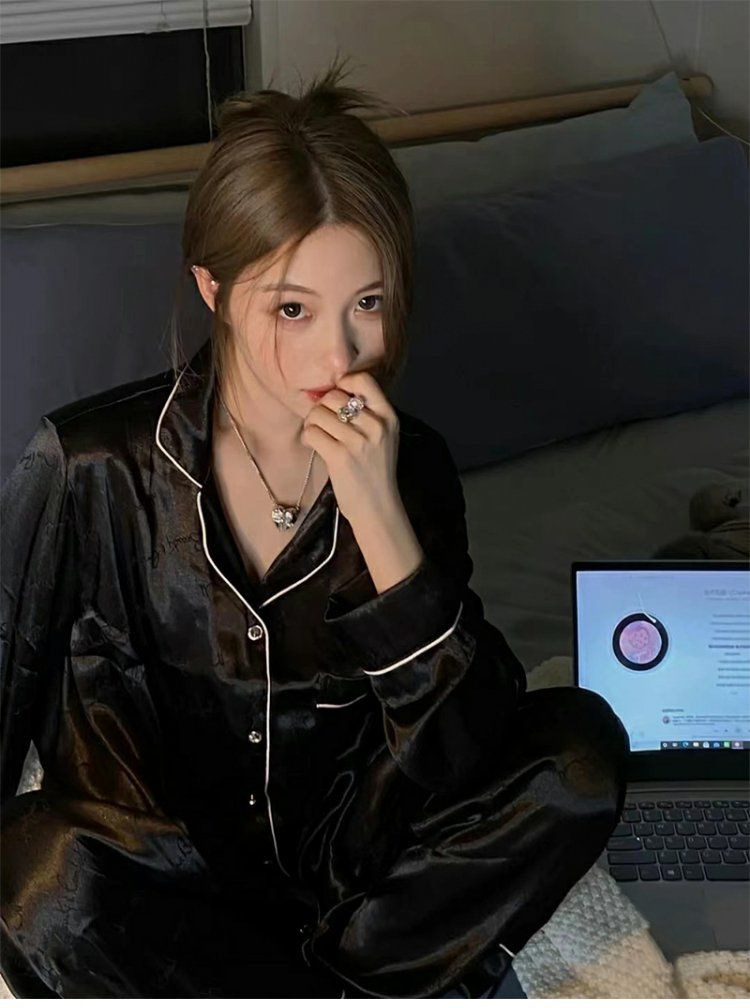 작은 빨간 승마 책 같은 스타일 봄과 가을 긴 소매 잠옷 여성의 얼음 실크 캐주얼 여자 친구 스타일 고급 감각 실크 같은 홈 옷 세트