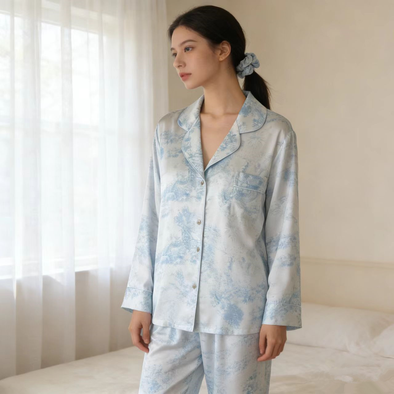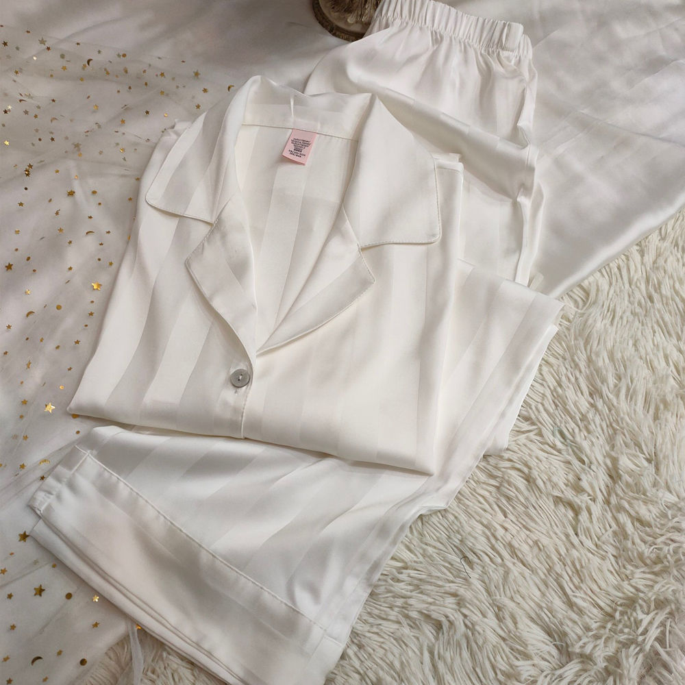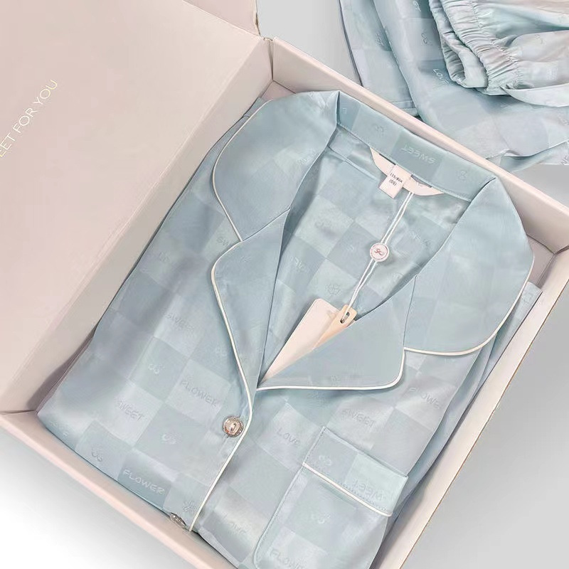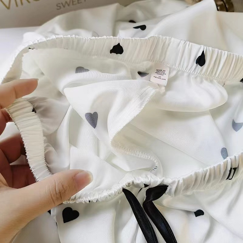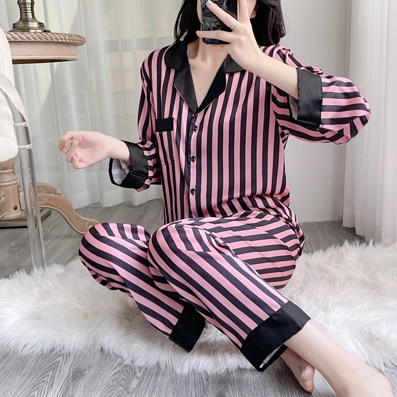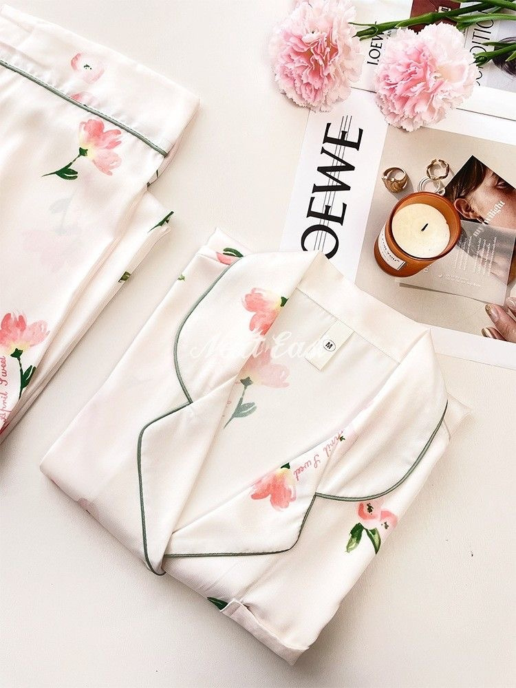 작은 빨간 승마 책 같은 스타일 봄과 가을 긴 소매 잠옷 여성의 얼음 실크 캐주얼 여자 친구 스타일 고급 감각 실크 같은 홈 옷 세트