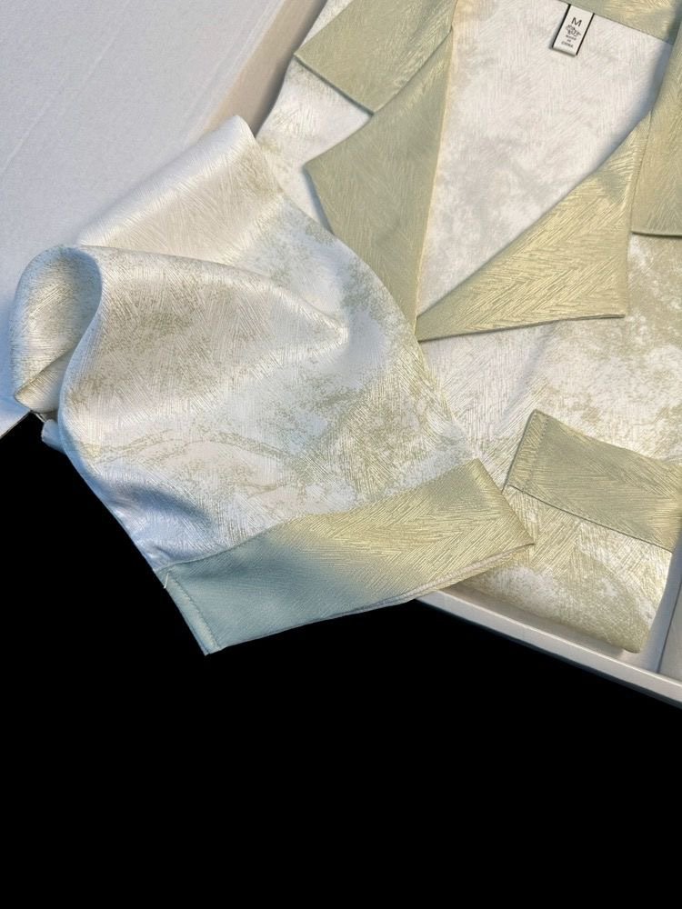 • 더블 롱 화이트 자카드 레오파드 무늬