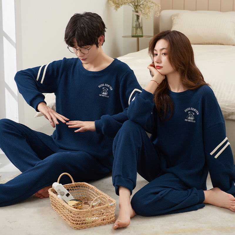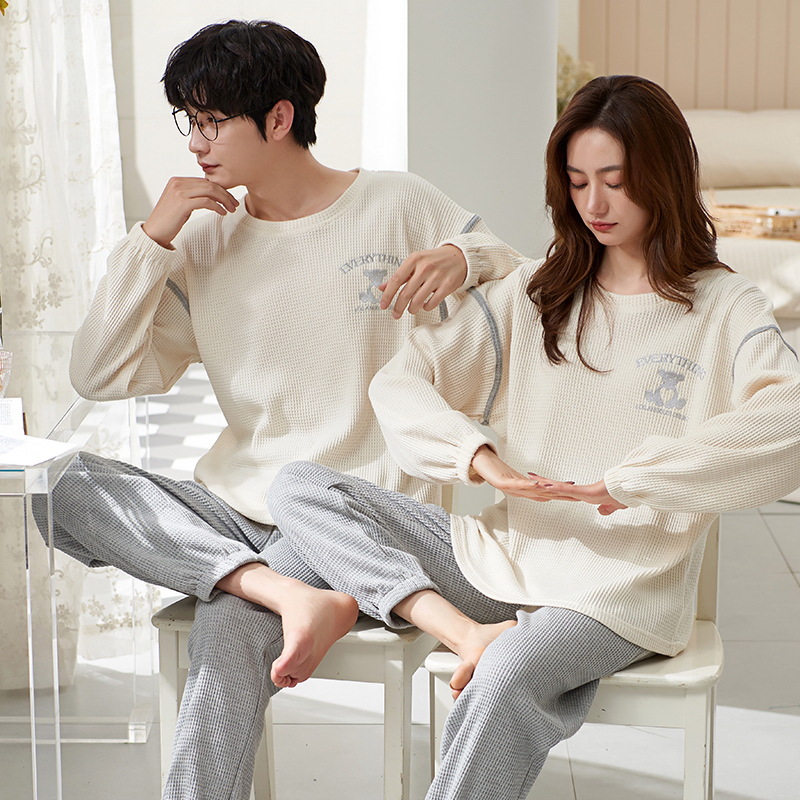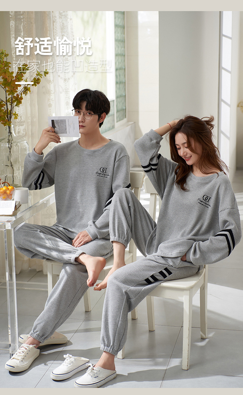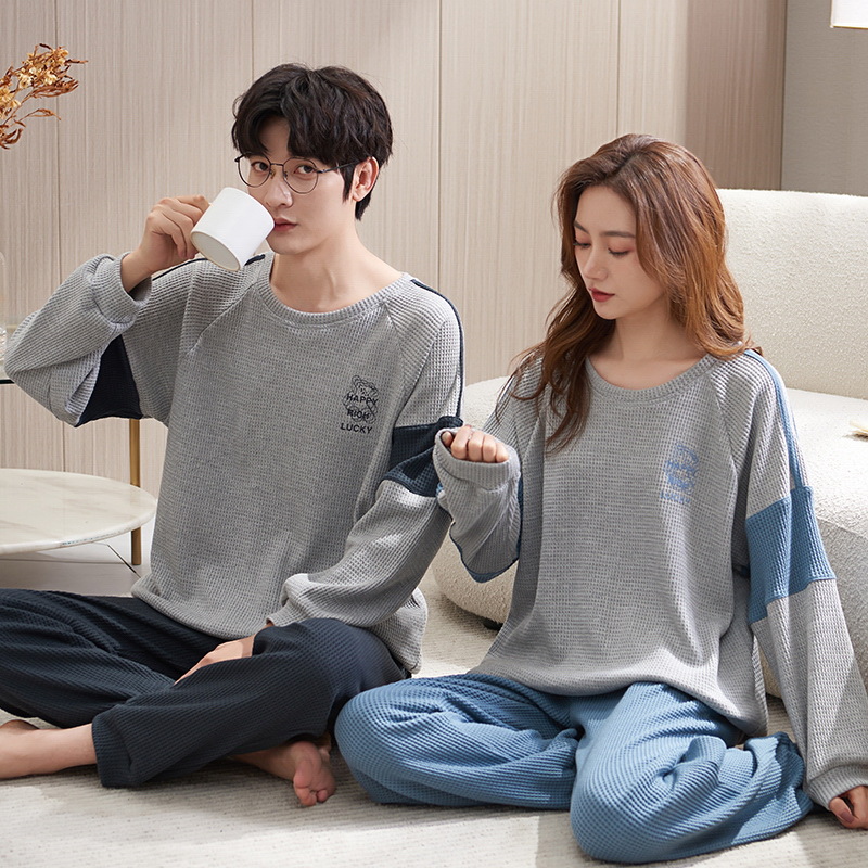 커플 잠옷 여성의 봄과 가을 면화 긴팔 남성과 여성의 가을과 겨울 얇은 편안한 홈 웨어 세트 원피스 배달스토어 가기
