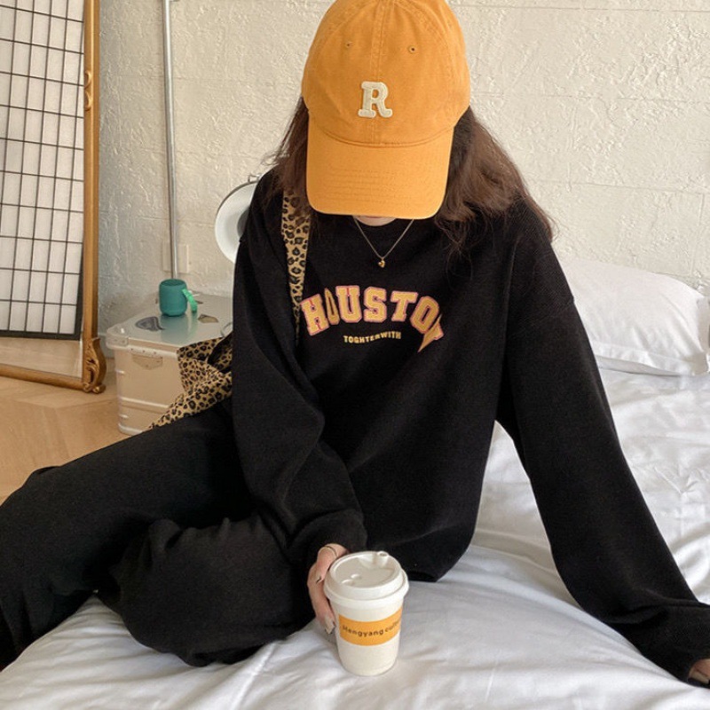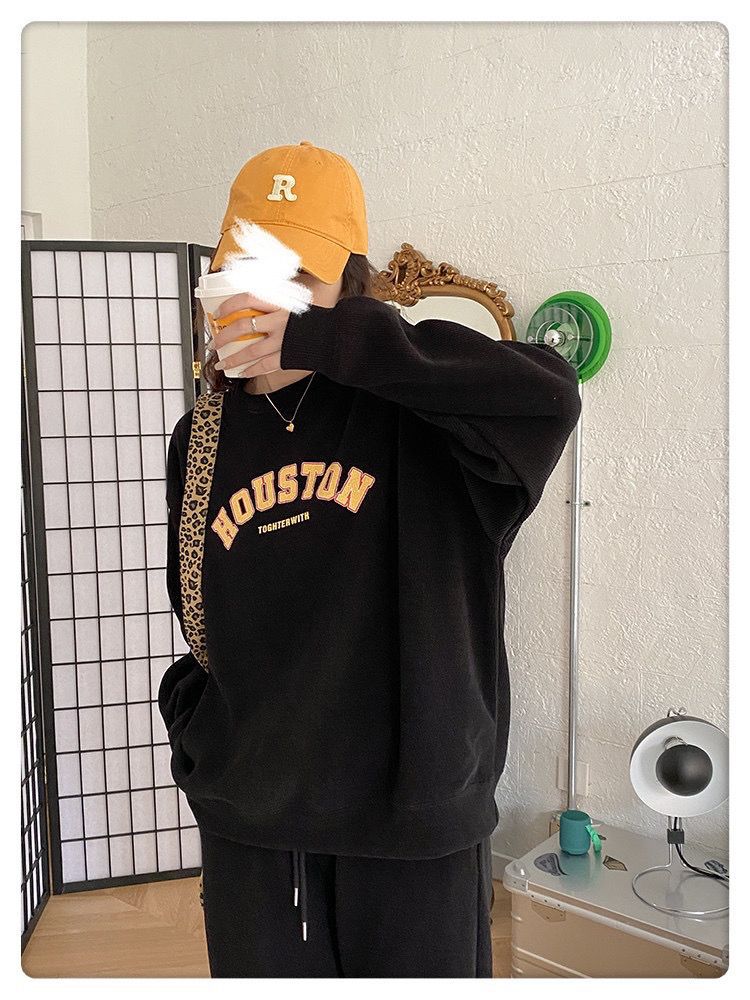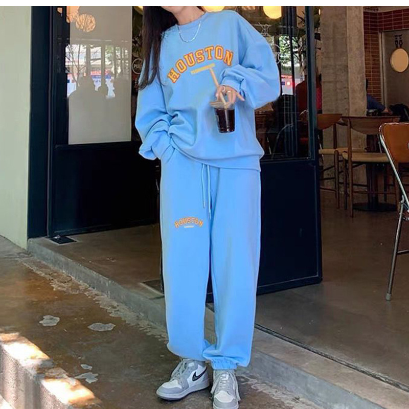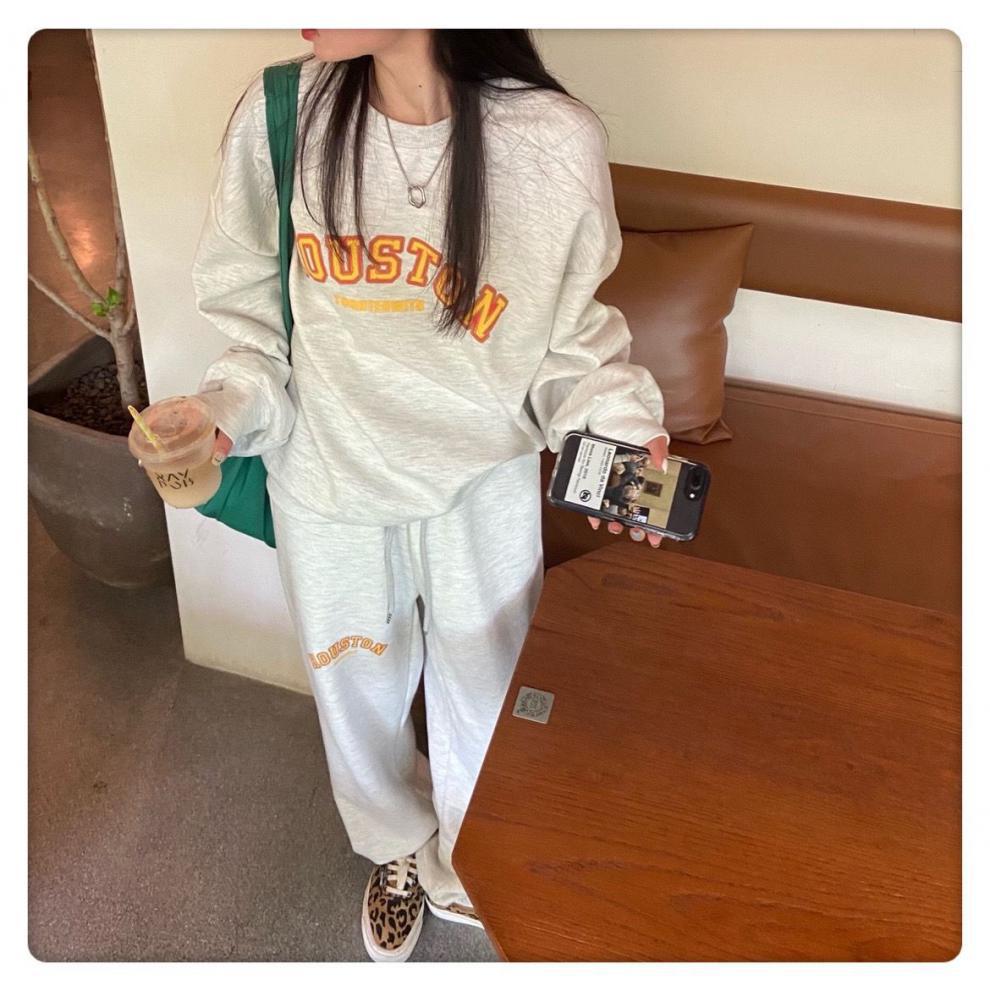 캐주얼 스포츠 세트 여성 2023 새로운 가을과 겨울 프랑스 게으른 스타일 스웨터 + 높은 허리 탄성 발목 묶음 바지스토어 가기