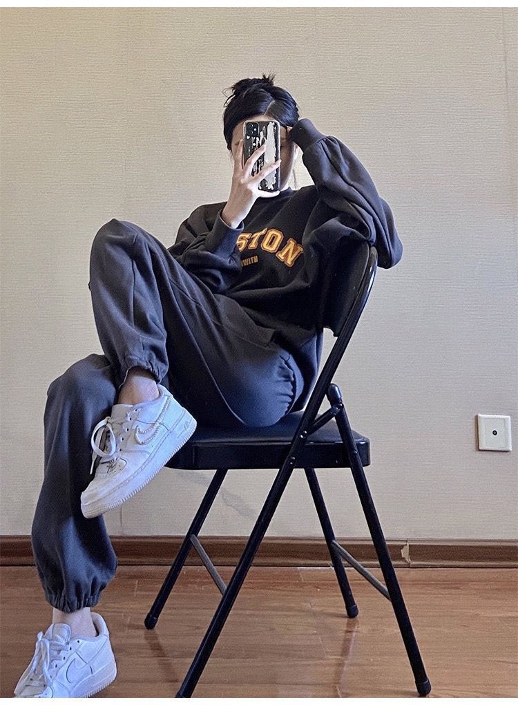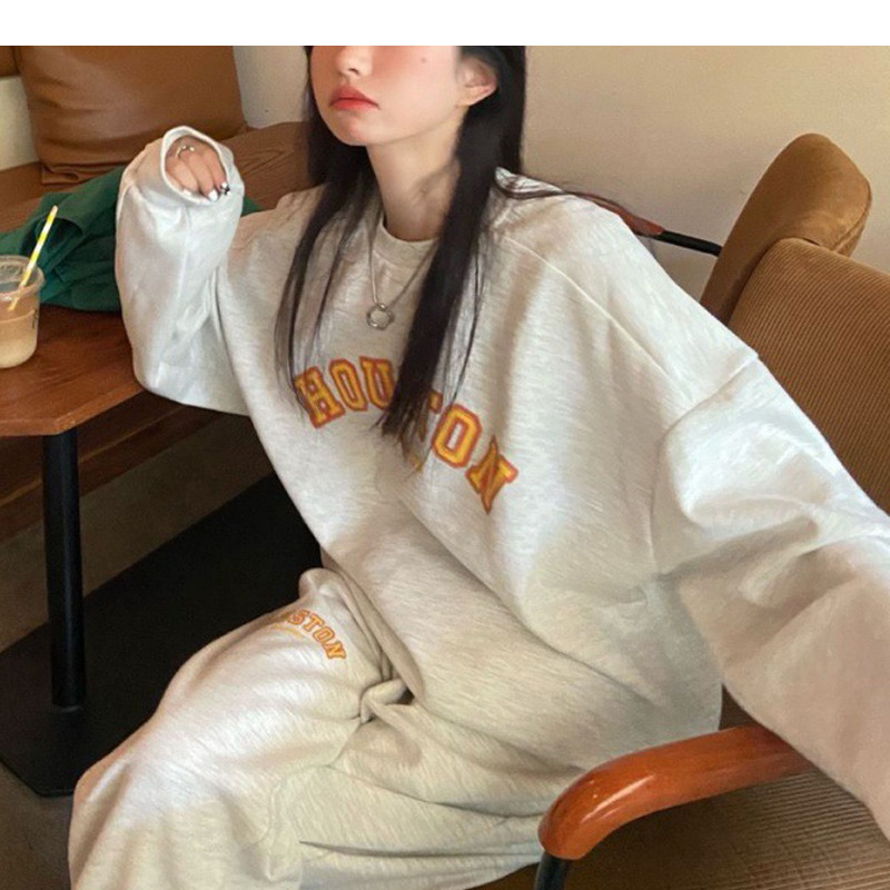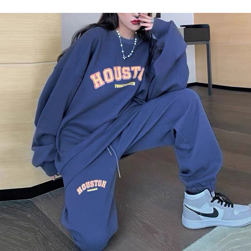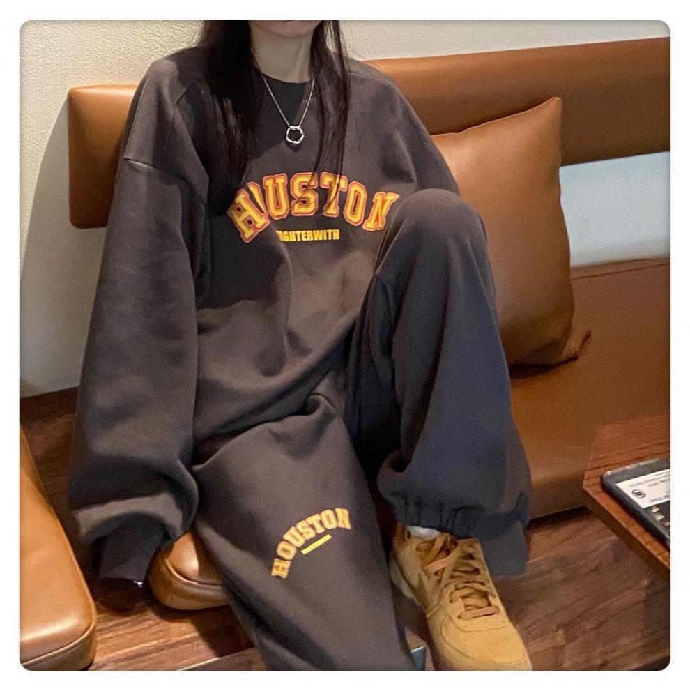 캐주얼 스포츠 세트 여성 2023 새로운 가을과 겨울 프랑스 게으른 스타일 스웨터 + 높은 허리 탄성 발목 묶음 바지