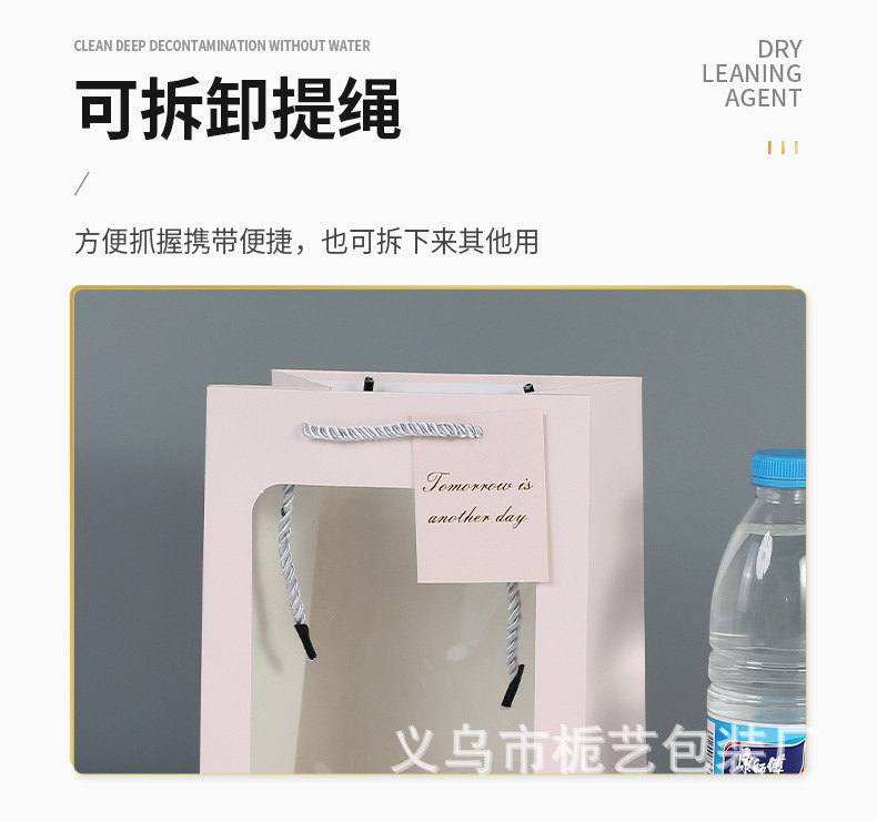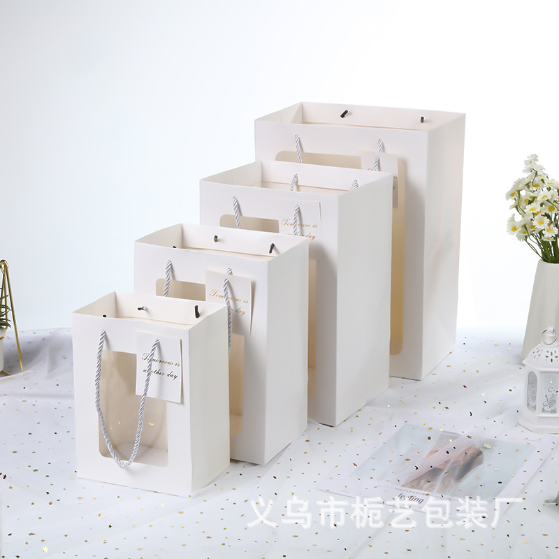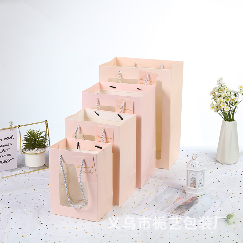 태그가 달린 투명한 핸드백, 꽃다발, 인형, 선물, 기념품, 창문이 있는 선물 가방, 미니멀리스트 스타일 맞춤 제작스토어 가기