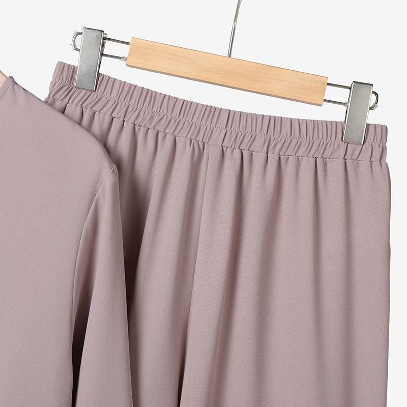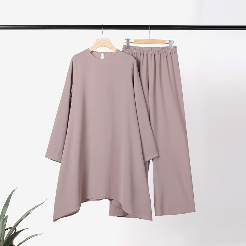 2024 이슬람 여성 의류 중동 국경 간 봄, 가을 솔리드 컬러 라운드 넥 풀오버 미드 스커트 바지 패션 캐주얼 슈트스토어 가기