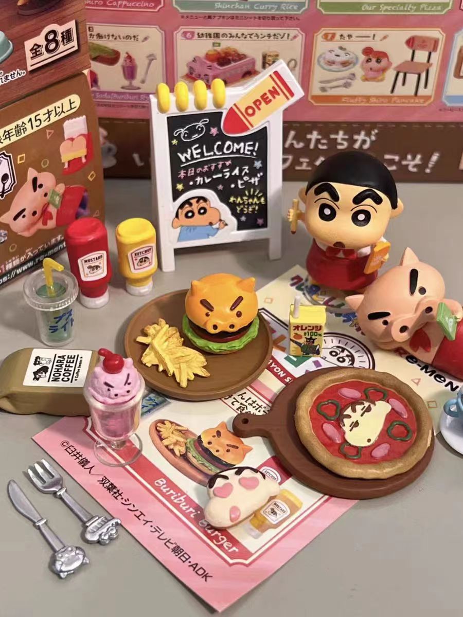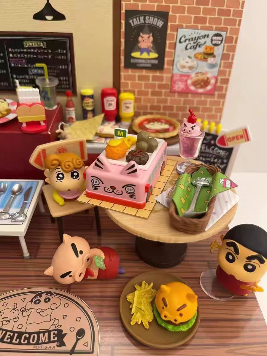 新款 玩具盲盒蜡笔小新咖啡馆休闲快乐一天玩偶公仔娃娃机