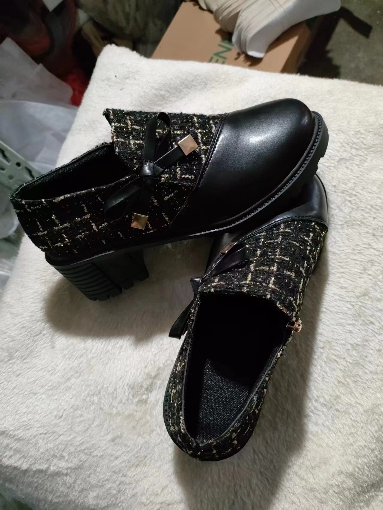 【2】关于质量:发货前我们会每一双检查的。刚出厂的鞋子都会有些胶水气味,无关质量,放置通风处胶水气味就会散去,小线头、小污点、微色差、胶水气味、均非质量问题。
