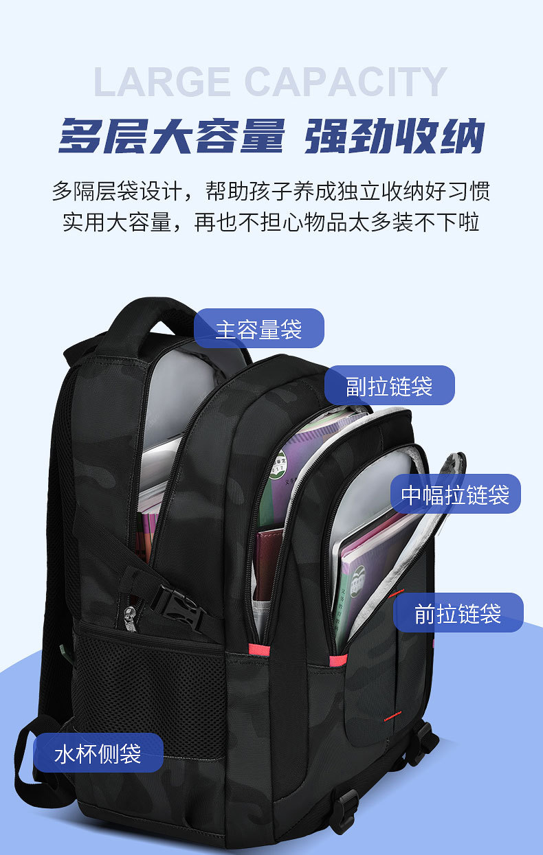 2024년 신형 중학생 책가방, 남학생, 중학생, 고등학생, 대용량 배낭, 남성 부담 감소 척추 보호 남성 모델스토어 가기