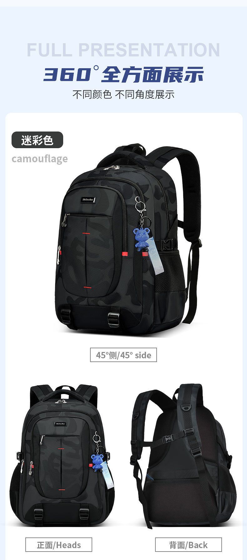 2024년 신형 중학생 책가방, 남학생, 중학생, 고등학생, 대용량 배낭, 남성 부담 감소 척추 보호 남성 모델