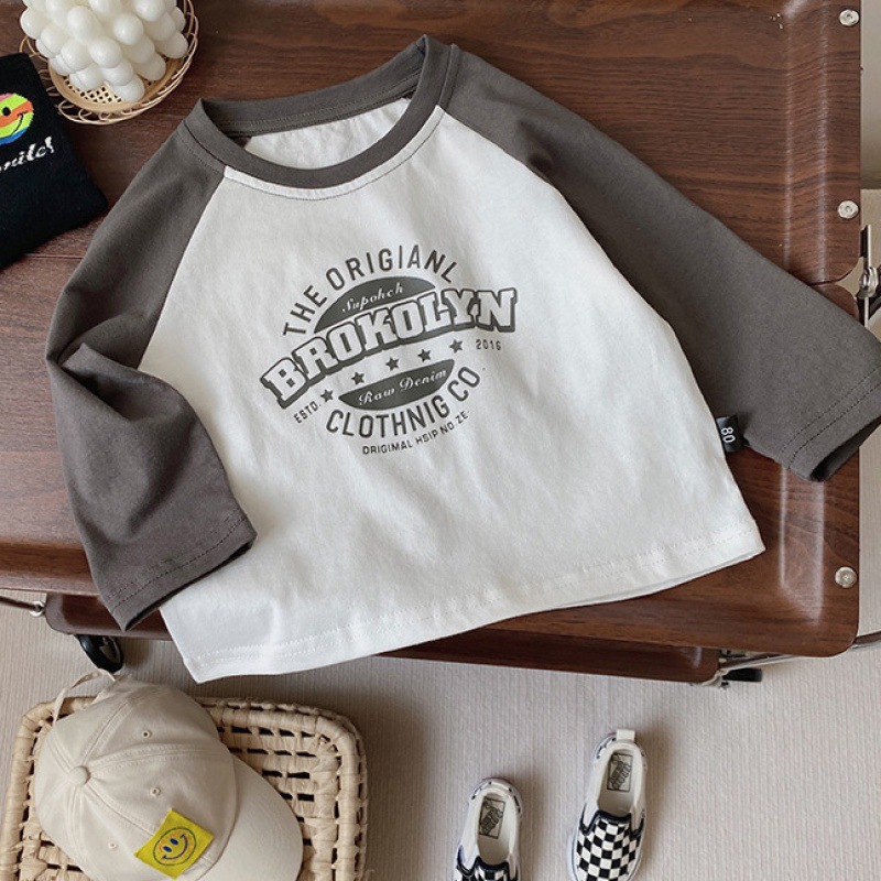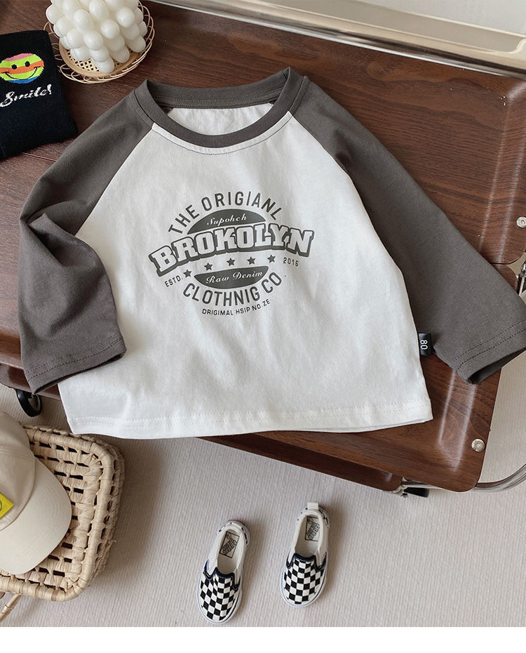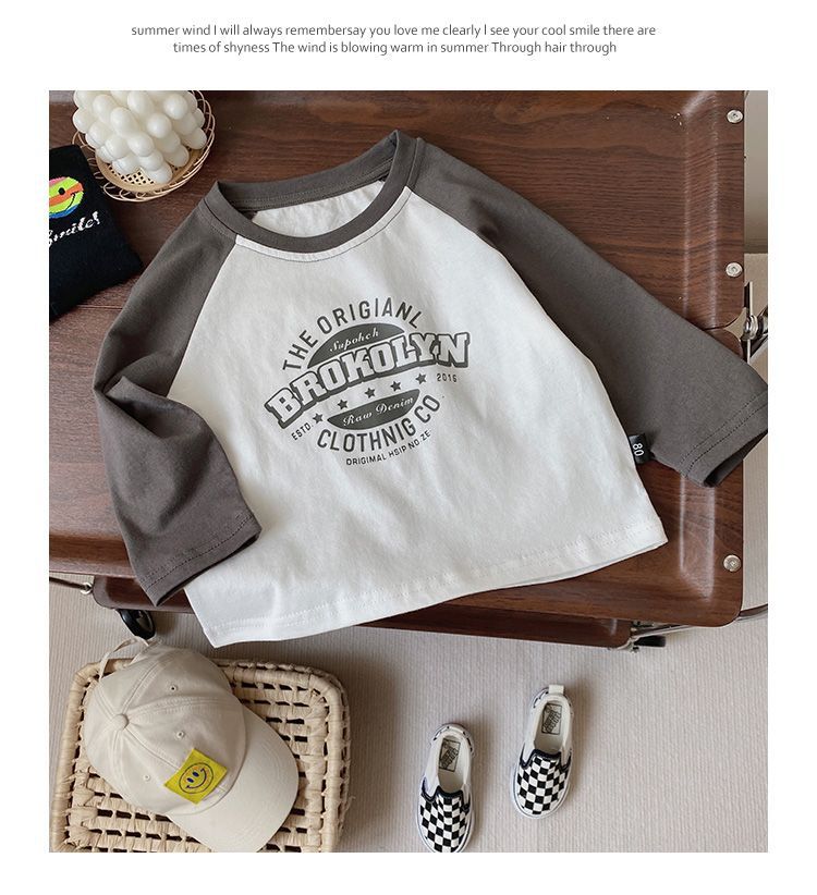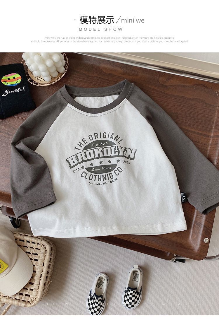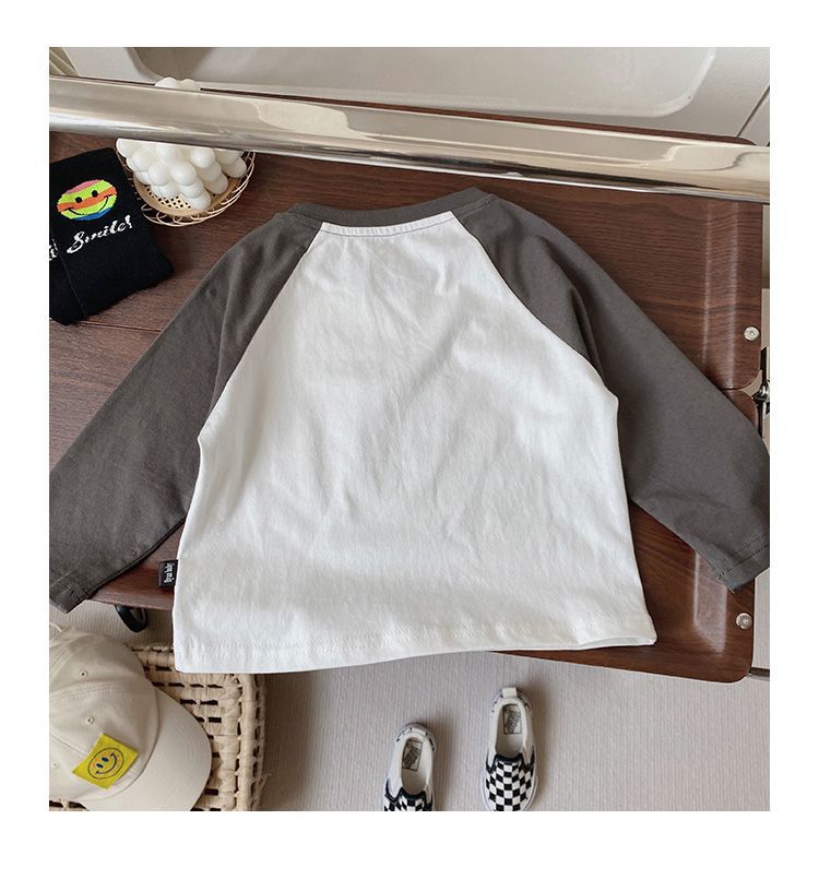 봄과 가을 새로운 잘 생긴 소년의 코튼 긴 소매 서양식 편지 프린트 느슨한 티셔츠 트렌디 한 어린이 바닥 셔츠스토어 가기