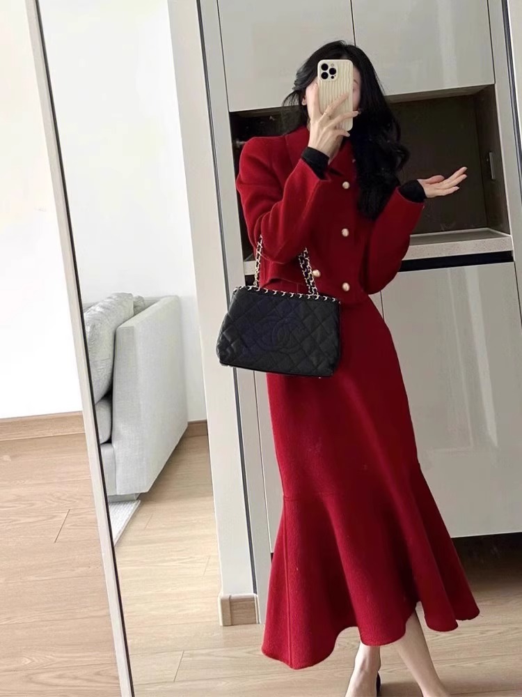 새해 이브 착용 새해 복 토스트 2023 원피스 가을 겨울 신부 웨딩 비드 웨딩 원피스 레드 세트