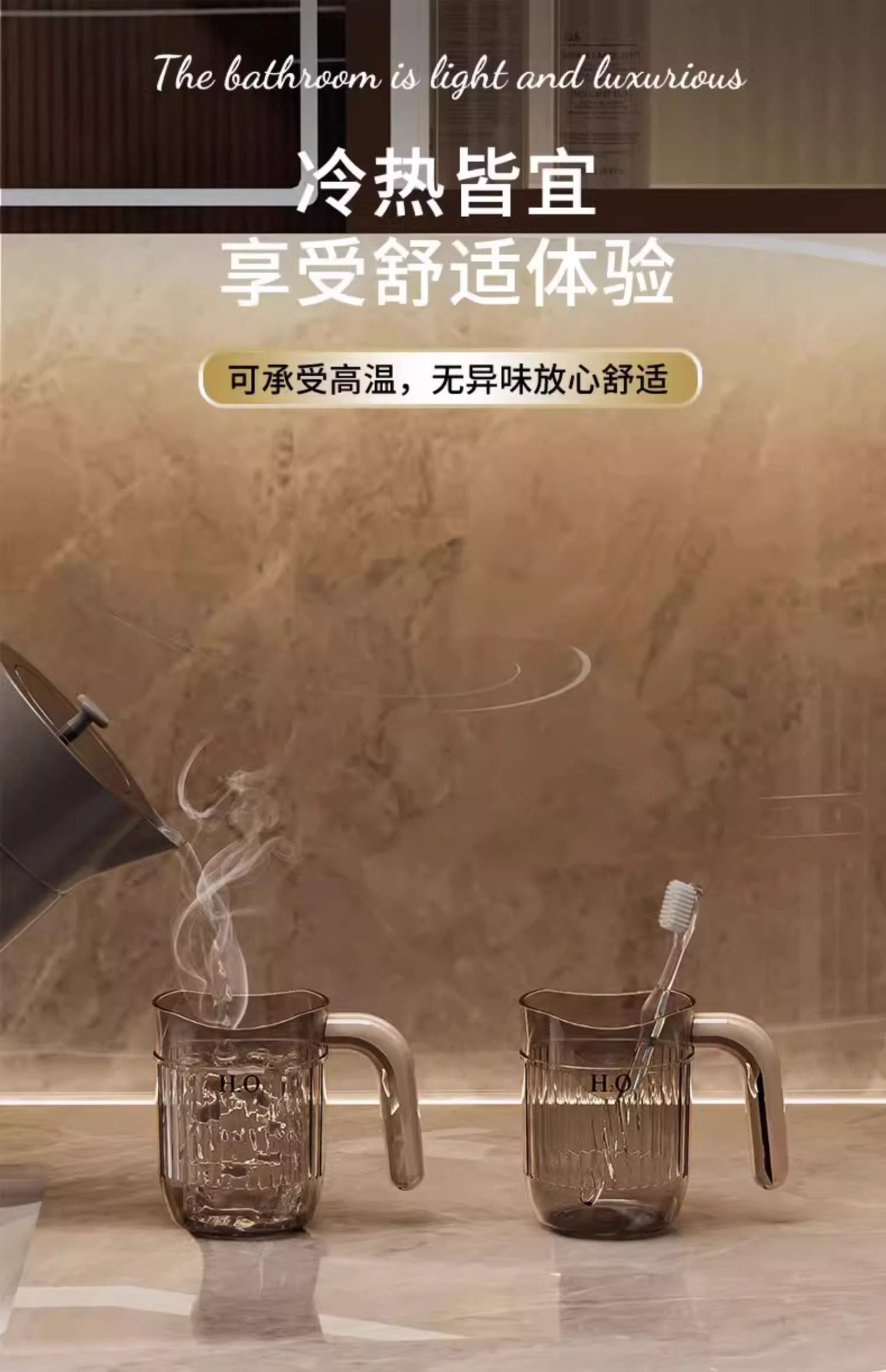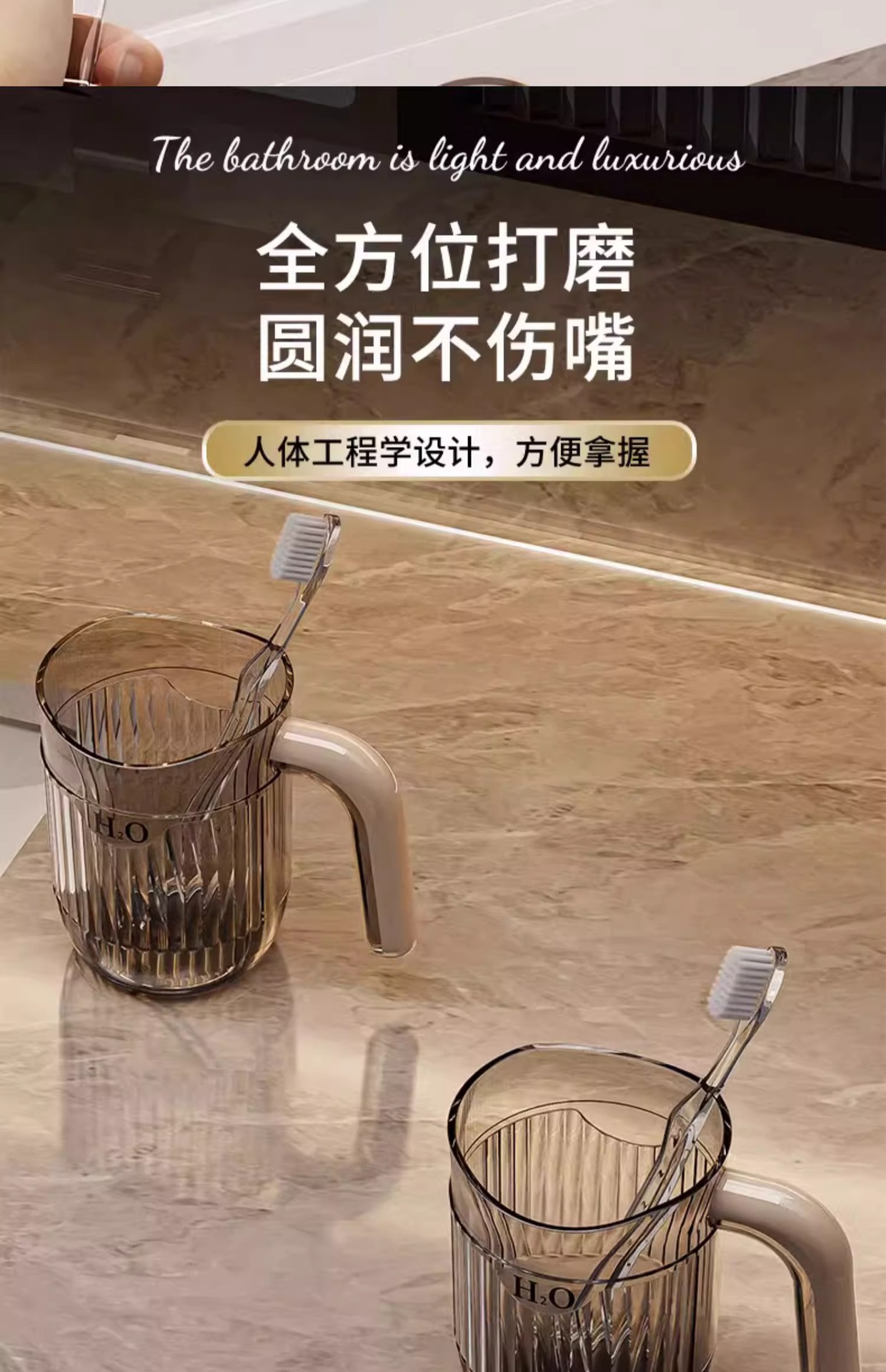애완 동물 내열성 구강 세척 컵 원래 간단한 디자인 핸들 투명 칫솔 컵 아트 식품 등급 얼룩 방지 치아 컵