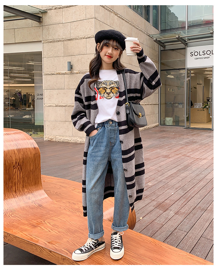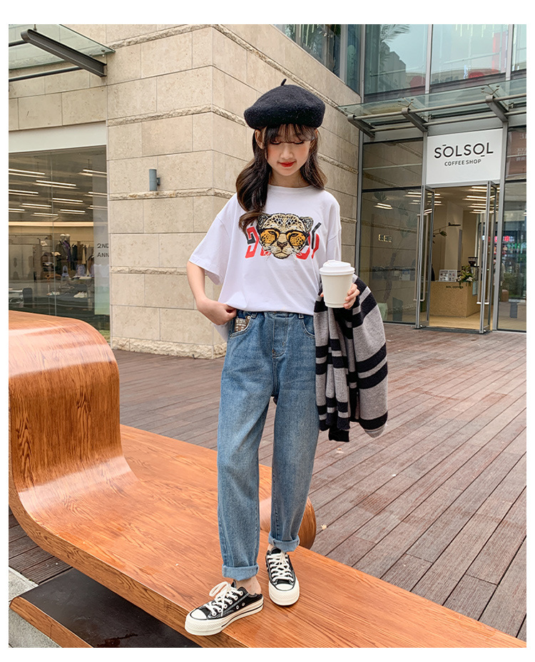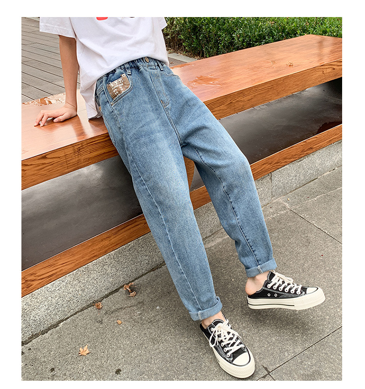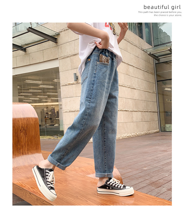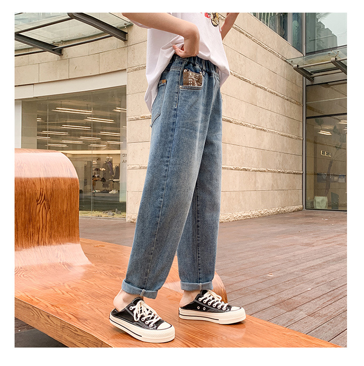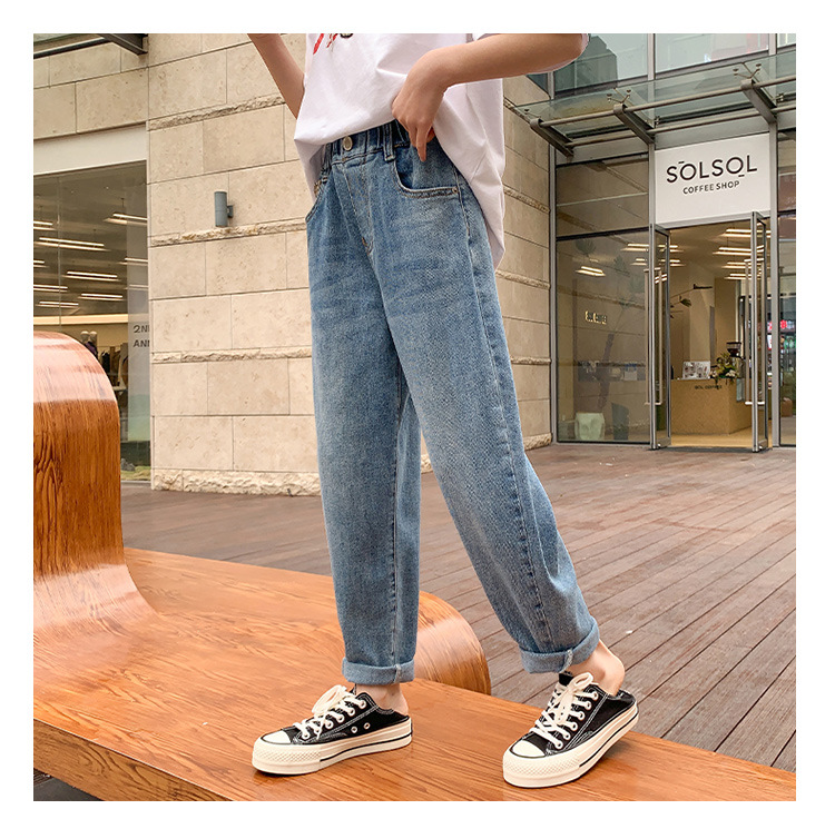 소녀 가을 데님 바지 2025 봄과 가을 새로운 어린이 바지 큰 어린이 느슨한 캐주얼 토레 바지 소녀스토어 가기
