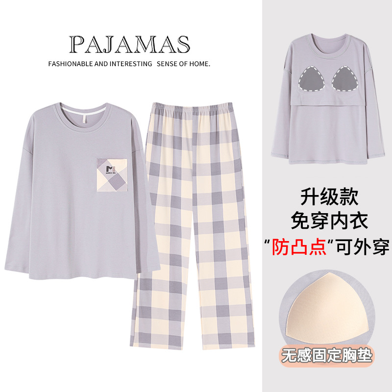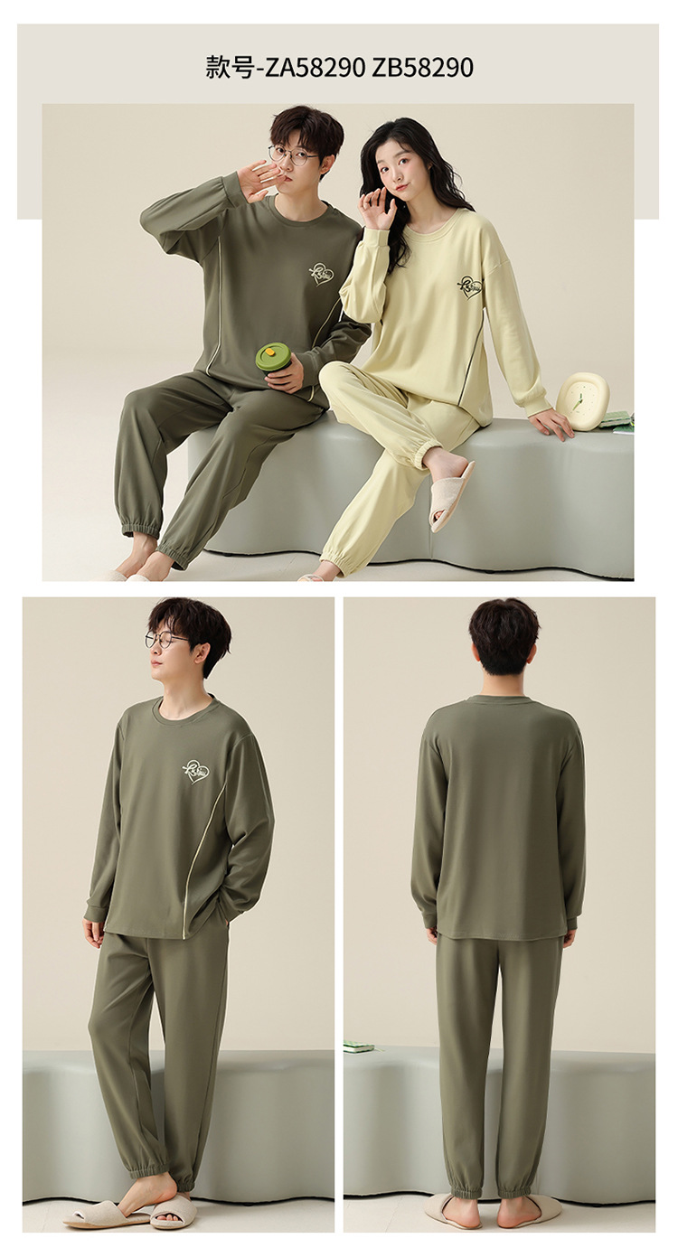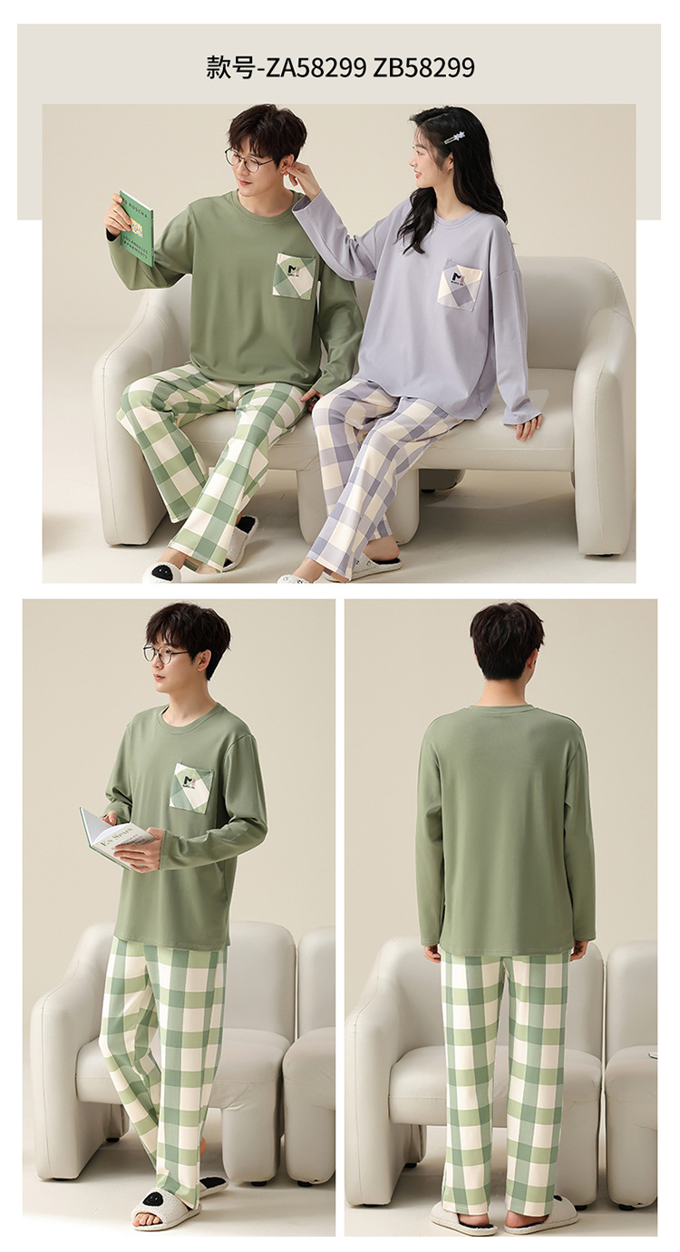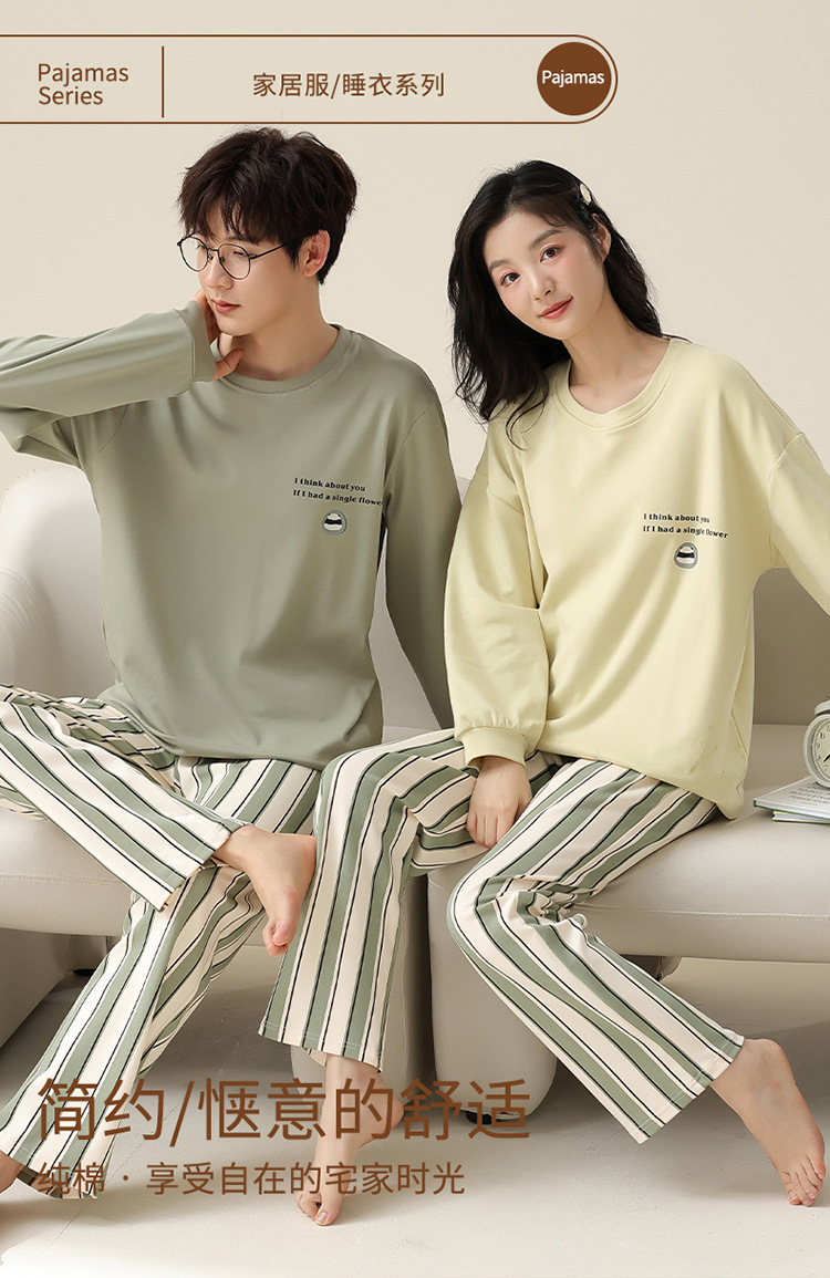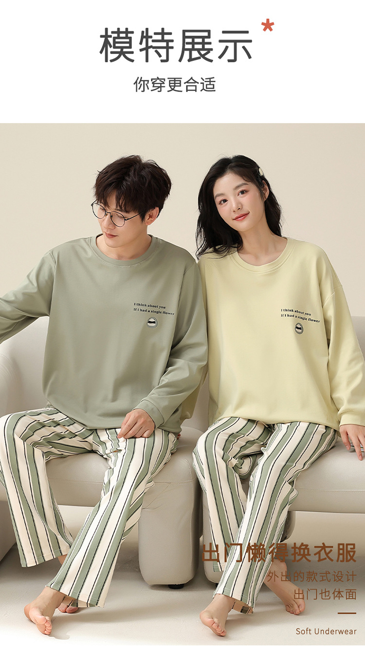 커플 잠옷 봄과 가을 순면 긴팔 여성용 캐주얼과 가슴 패드는 홈 웨어 남성용 플러스 사이즈 코튼 세트 밖에서 착용 할 수 있습니다.스토어 가기