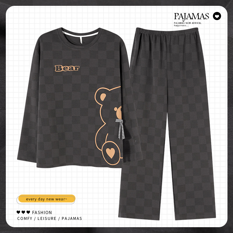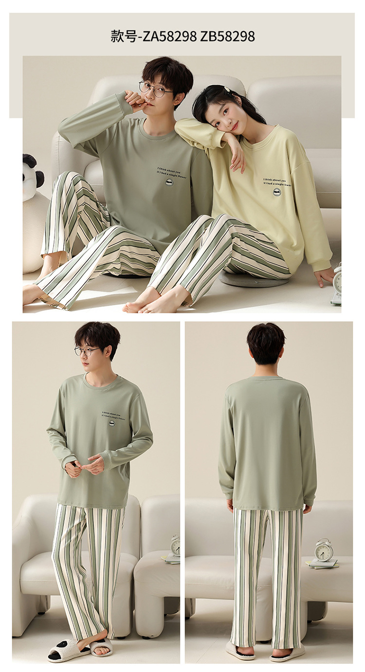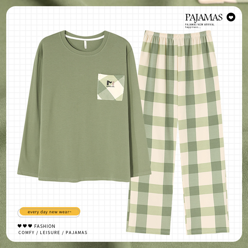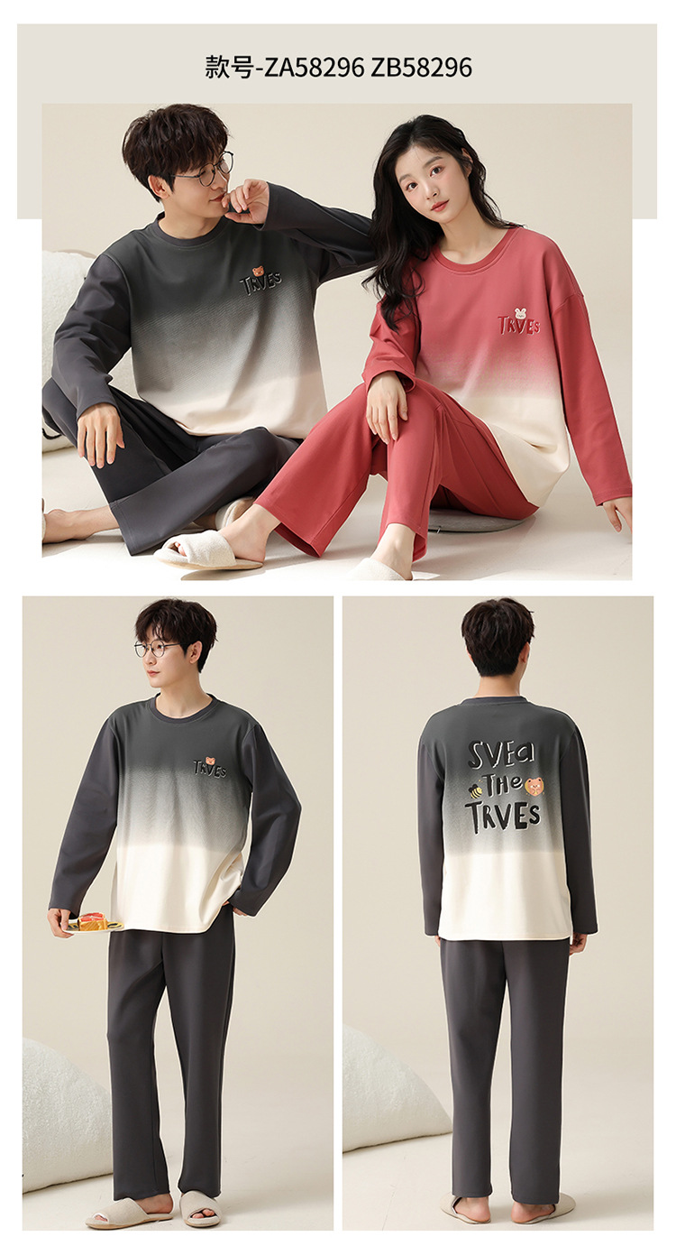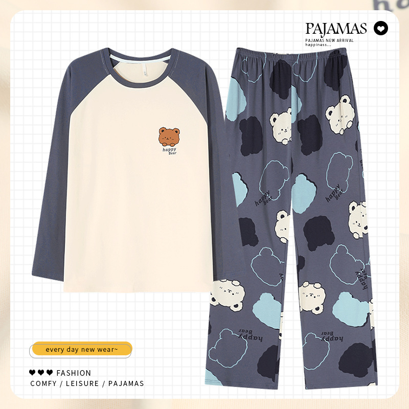 커플 잠옷 봄과 가을 순면 긴팔 여성용 캐주얼과 가슴 패드는 홈 웨어 남성용 플러스 사이즈 코튼 세트 밖에서 착용 할 수 있습니다.스토어 가기