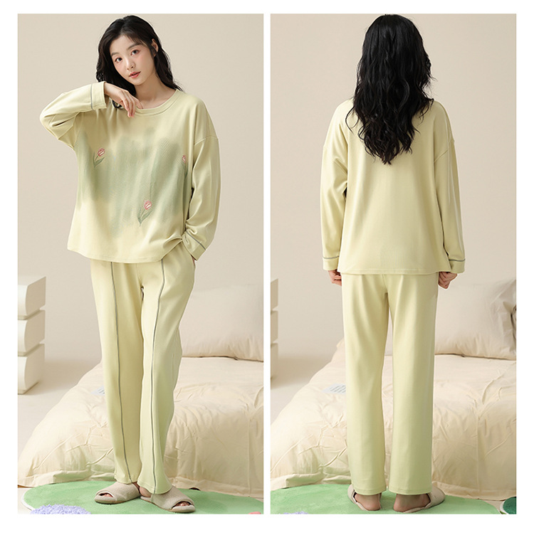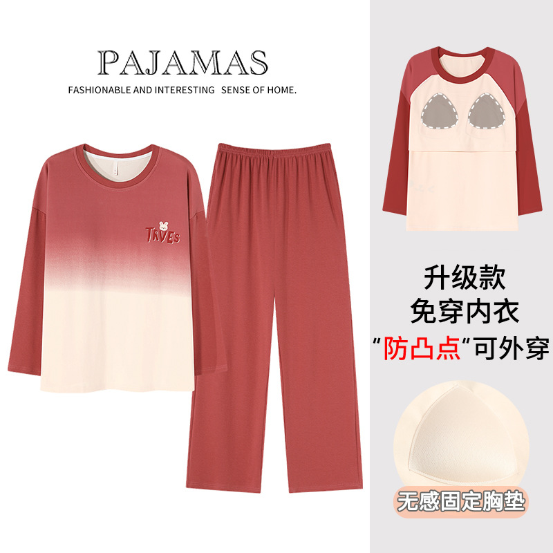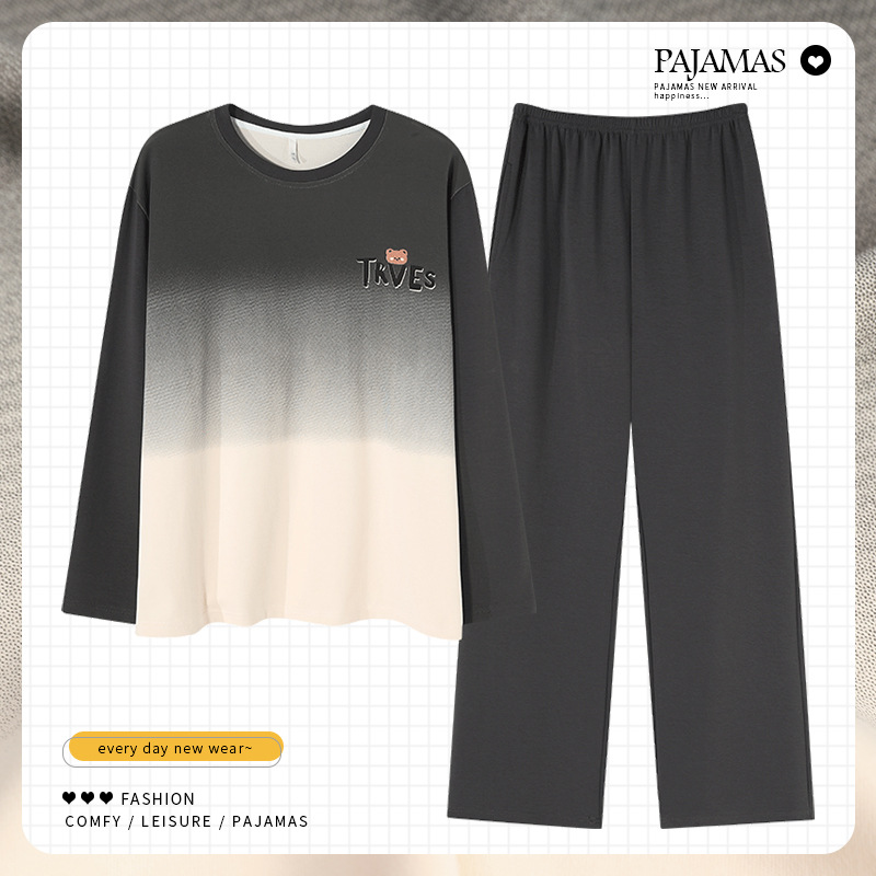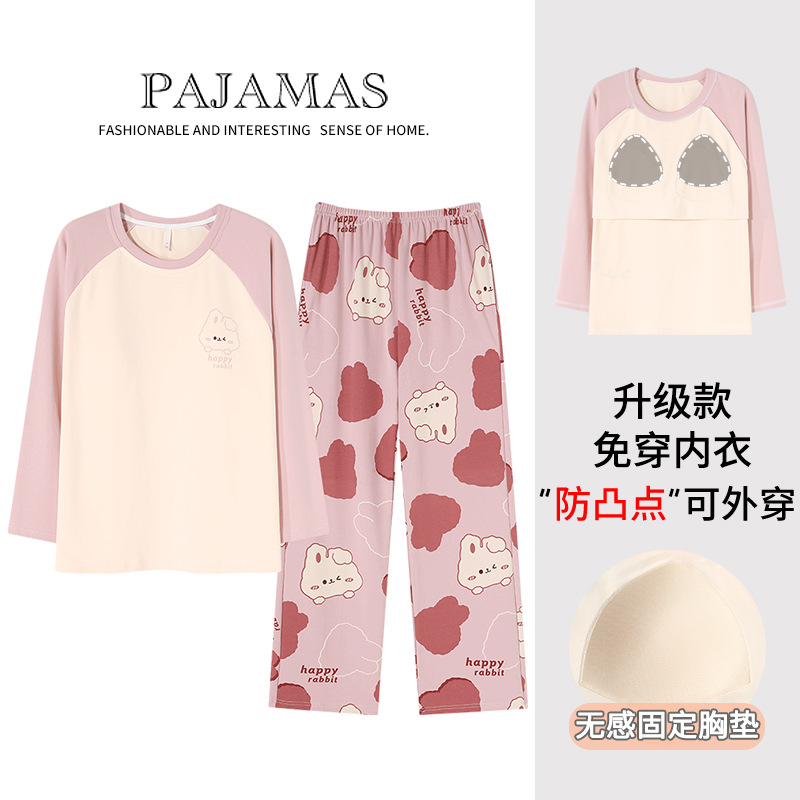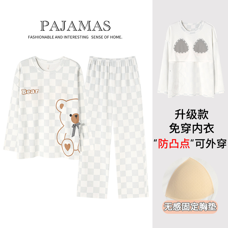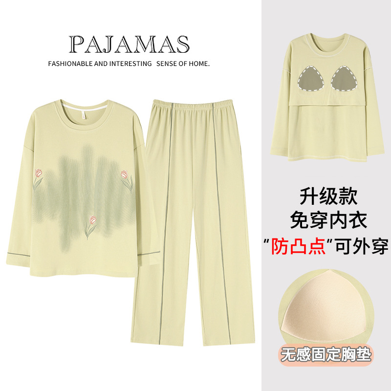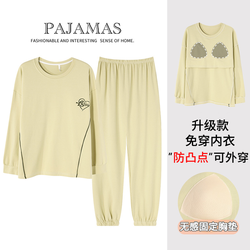 커플 잠옷 봄과 가을 순면 긴팔 여성용 캐주얼과 가슴 패드는 홈 웨어 남성용 플러스 사이즈 코튼 세트 밖에서 착용 할 수 있습니다.스토어 가기