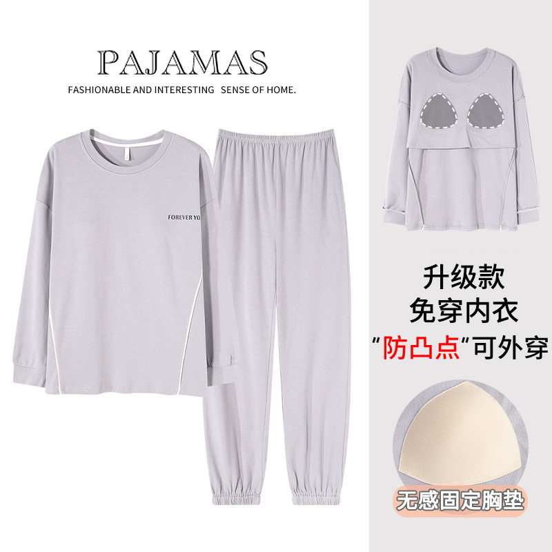 커플 잠옷 봄과 가을 순면 긴팔 여성용 캐주얼과 가슴 패드는 홈 웨어 남성용 플러스 사이즈 코튼 세트 밖에서 착용 할 수 있습니다.