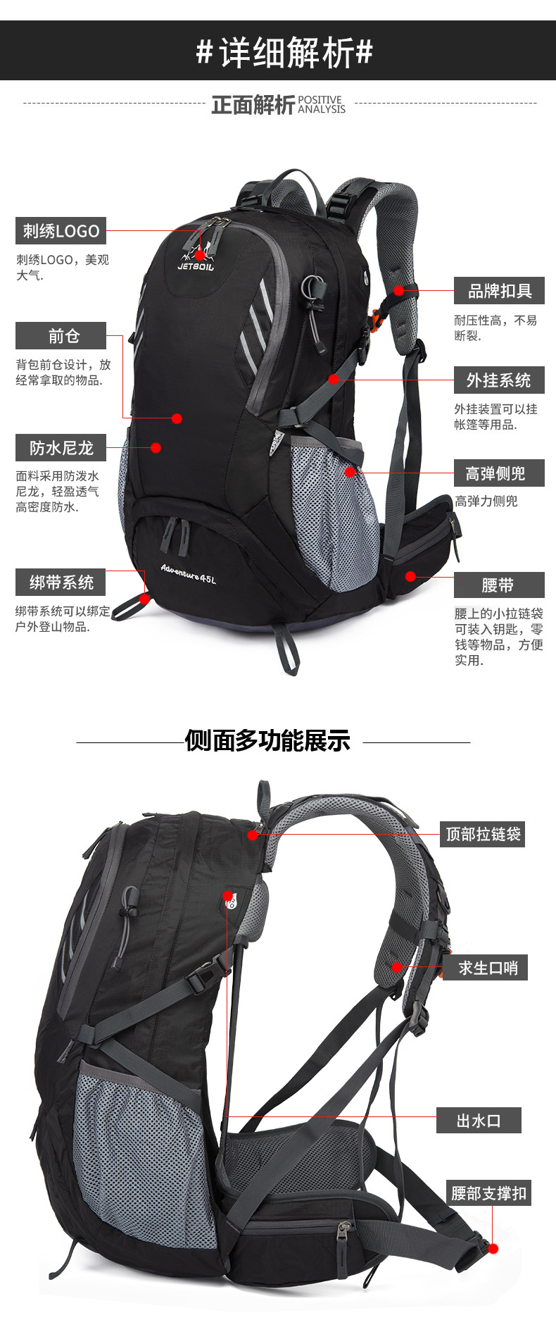 2025 대용량 방수 내마모성 배낭 야외 스포츠 등산 가방 다기능 캐주얼 백팩 여행 가방