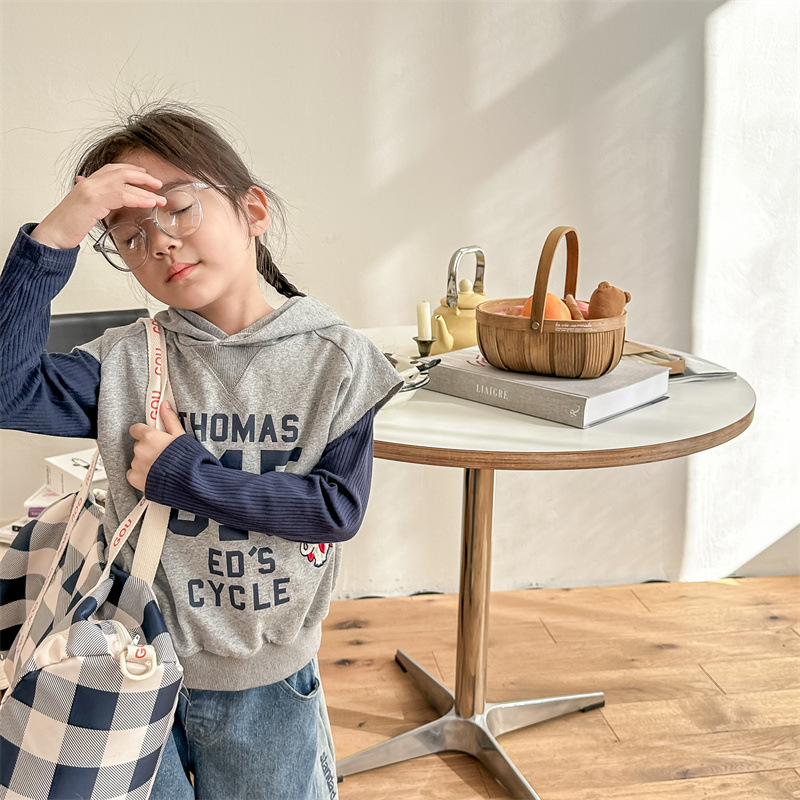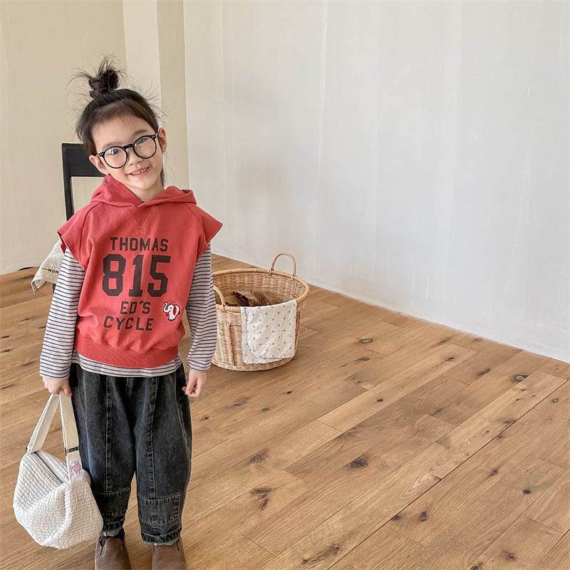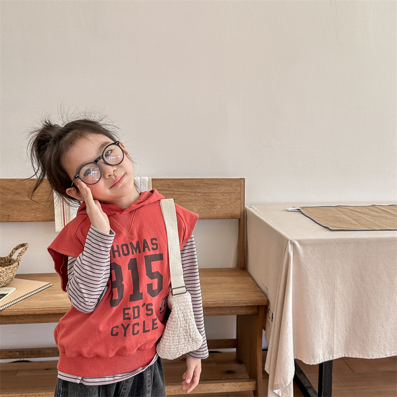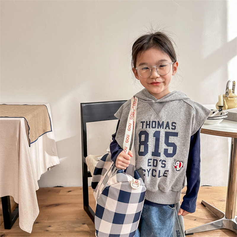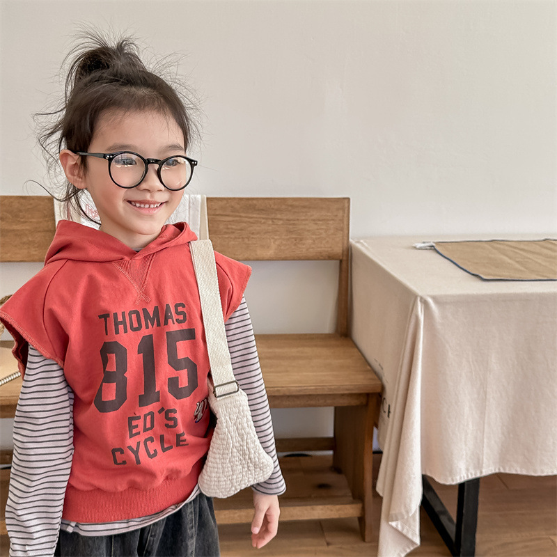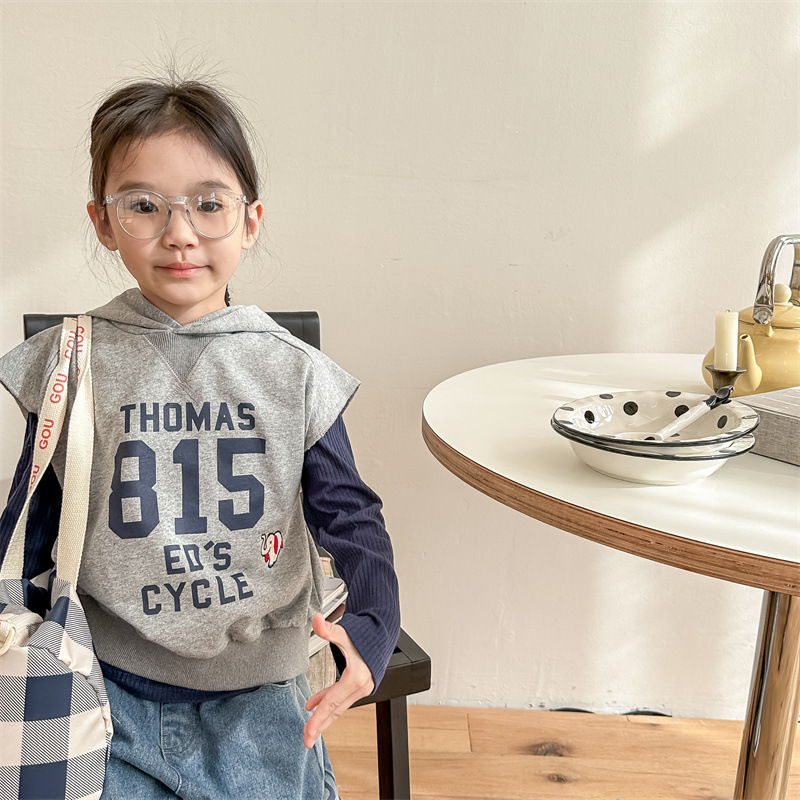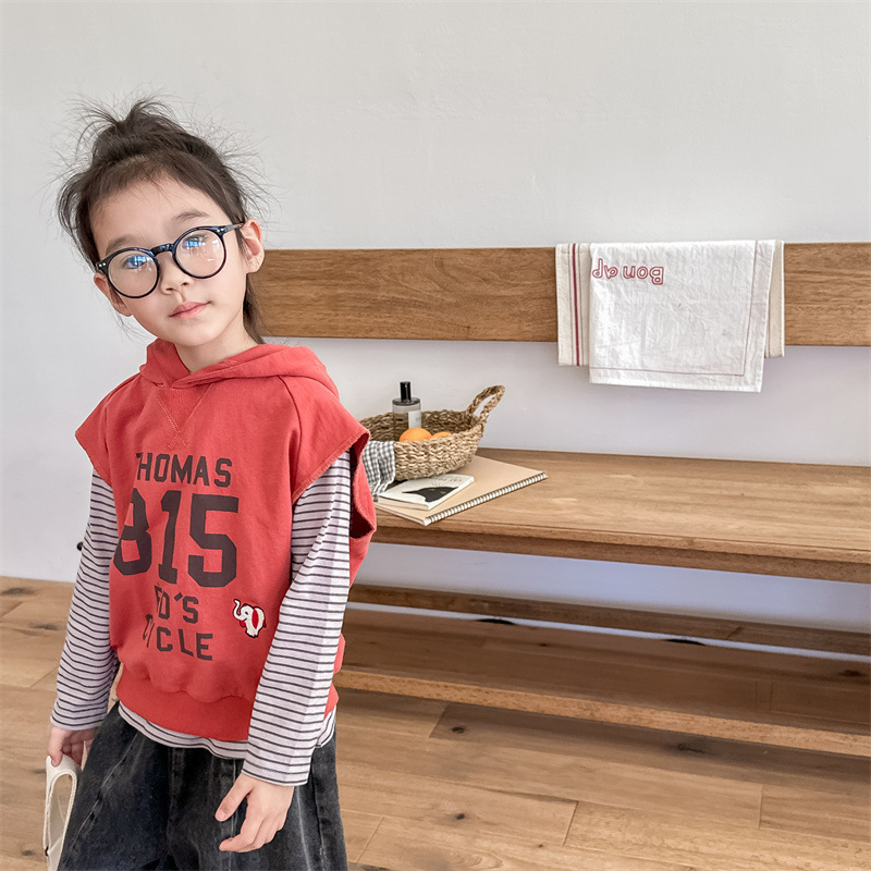 어린이 봄 조끼 소년 소녀 한국식 편지 인쇄 서양식 후드 스웨터 조끼 맞춤형 조끼 겉옷