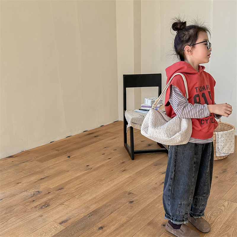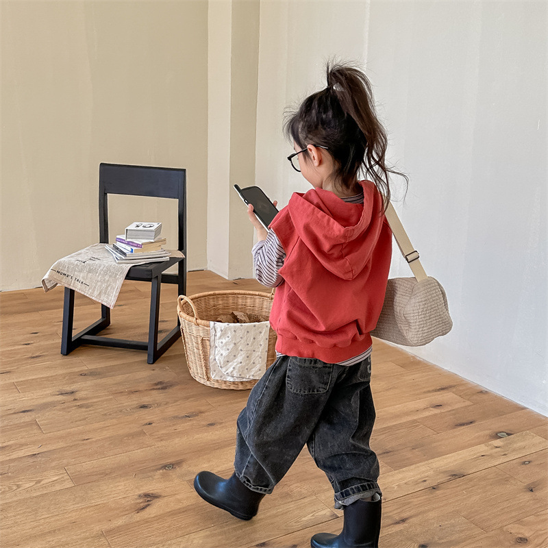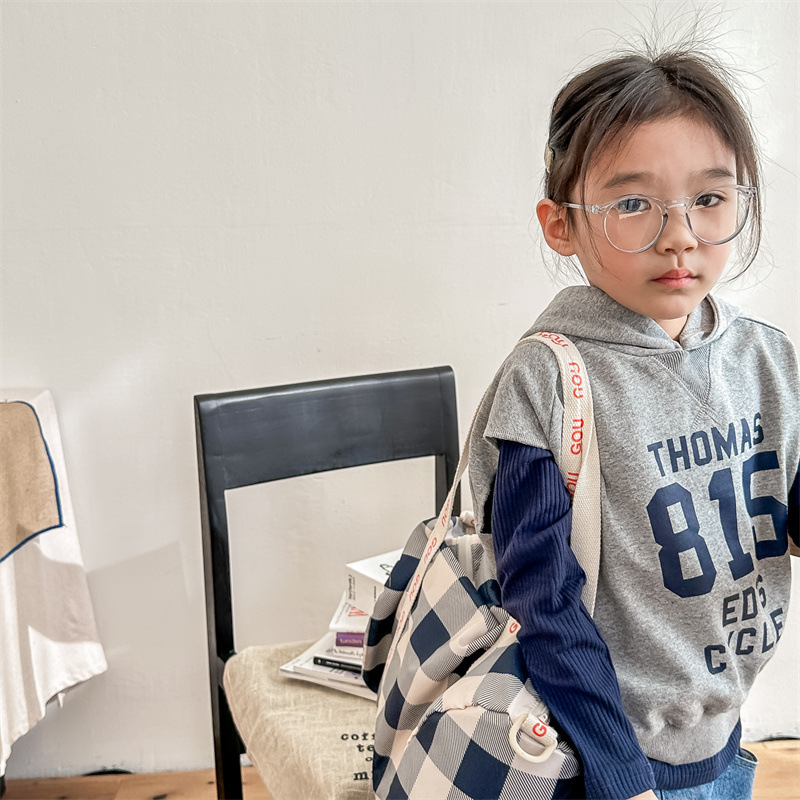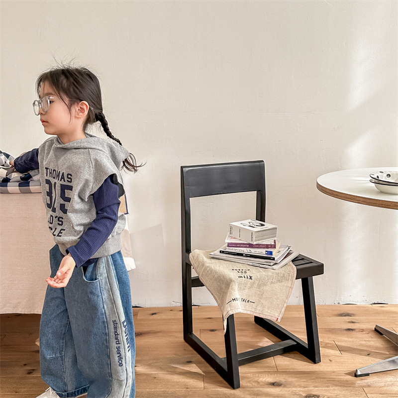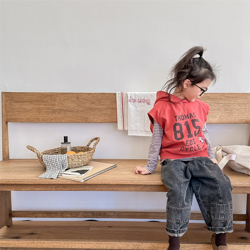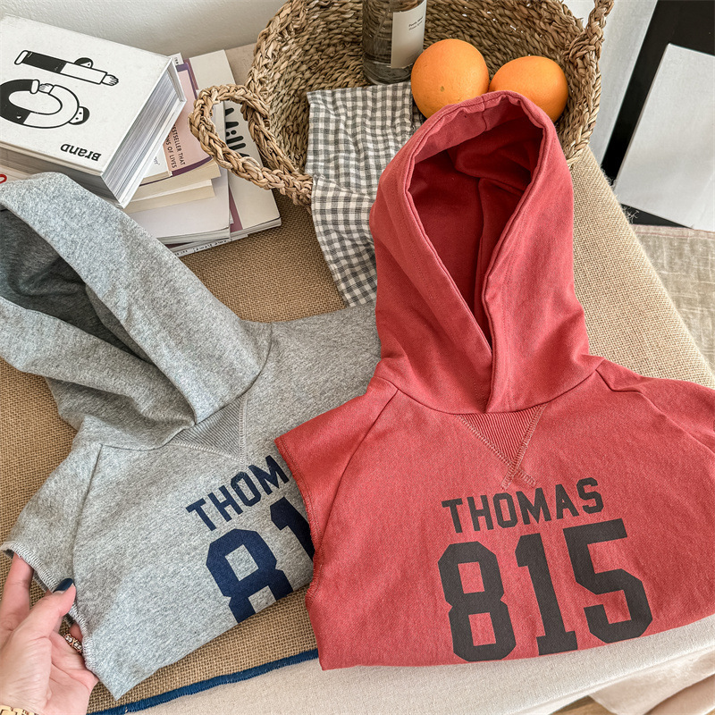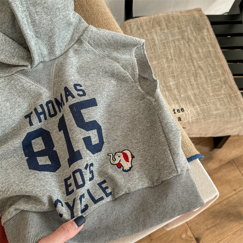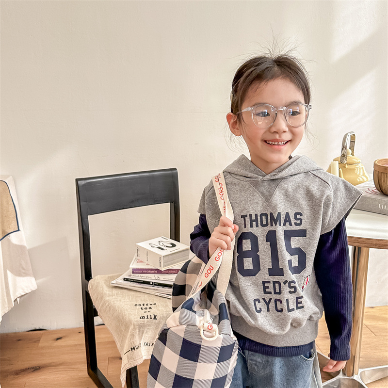 어린이 봄 조끼 소년 소녀 한국식 편지 인쇄 서양식 후드 스웨터 조끼 맞춤형 조끼 겉옷