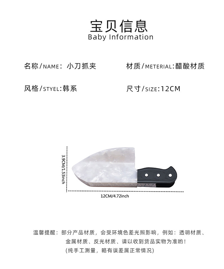Ins 새로운 머리핀 사이드 클립 아세테이트 나이프 그리퍼 중간 재미있는 소녀 스타일 앞머리 머리 머리핀 머리스토어 가기