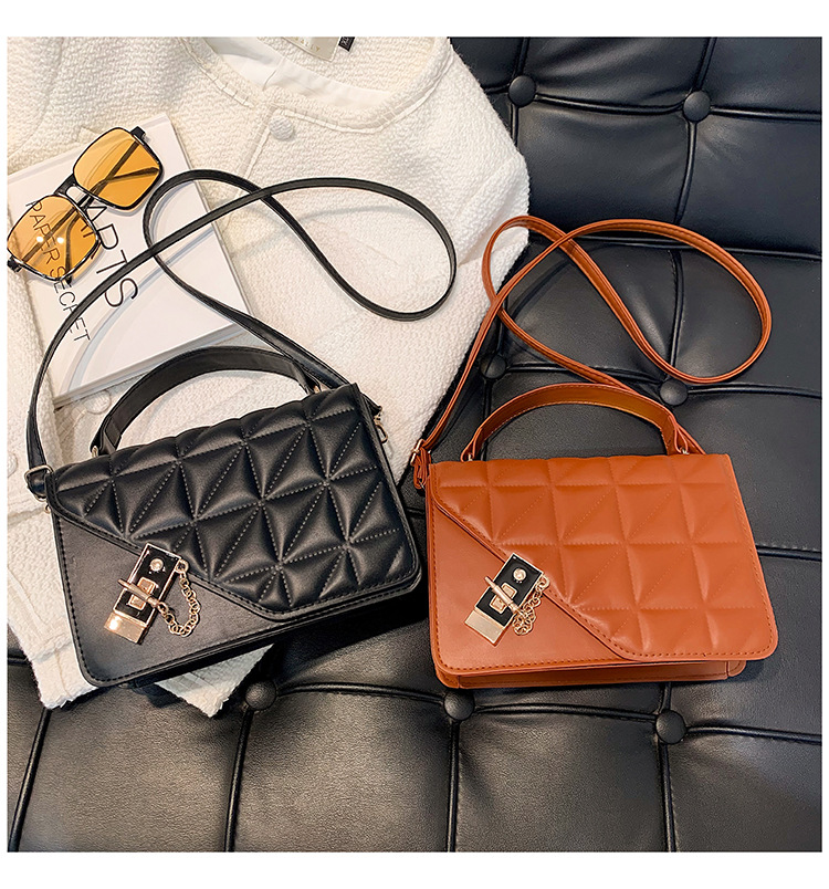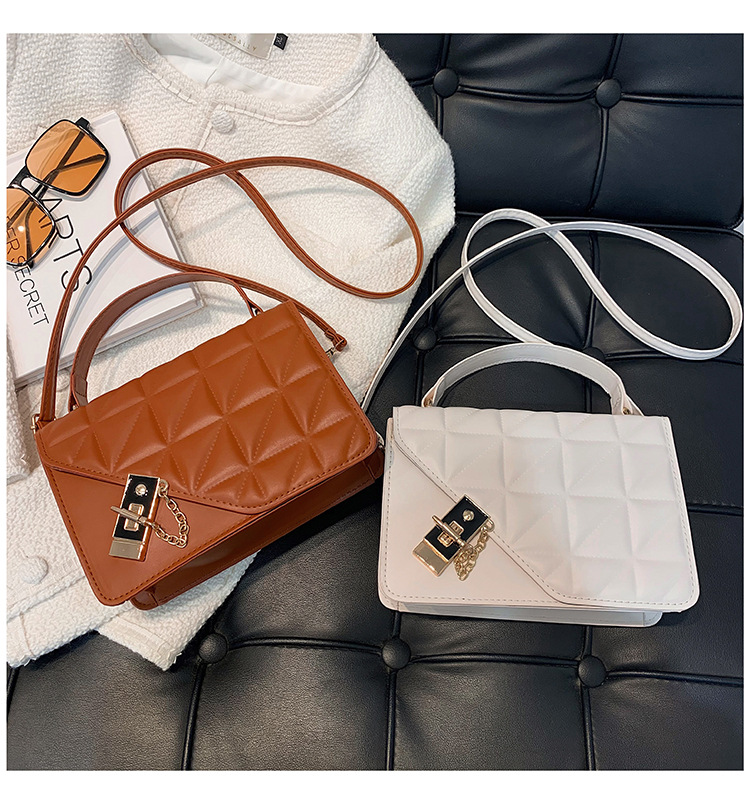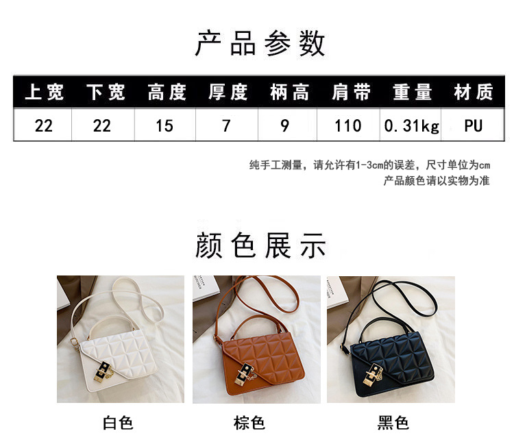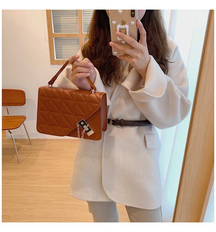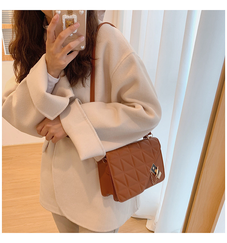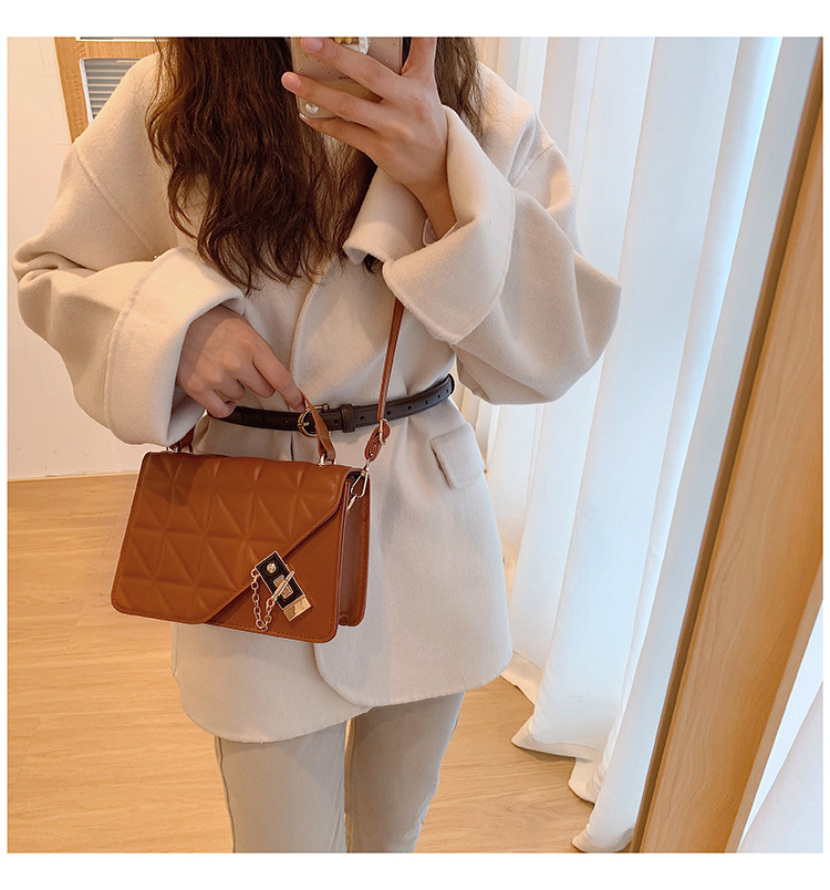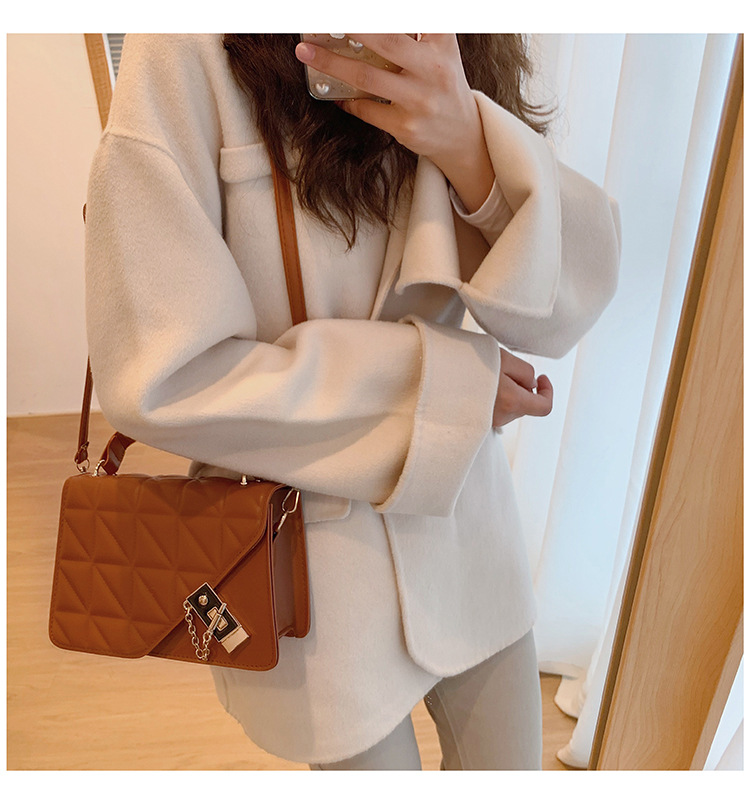 가을 새로운 복고풍 단색 작은 사각 가방 여성의 트렌디 한 패셔너블 올 매치 크로스 바디 가방 세련된 마름모꼴 간단한 핸드백