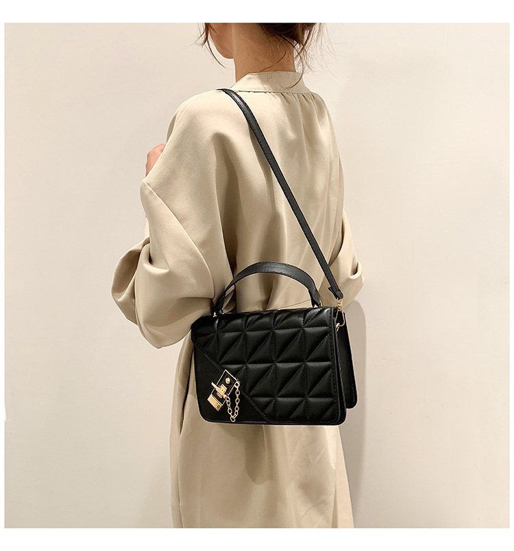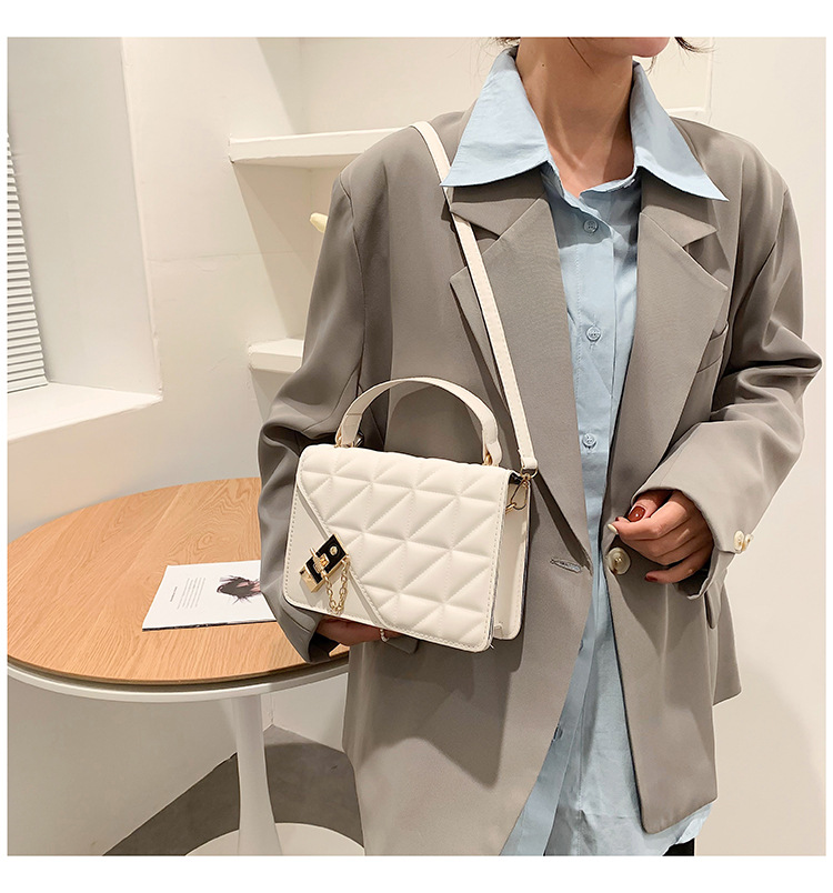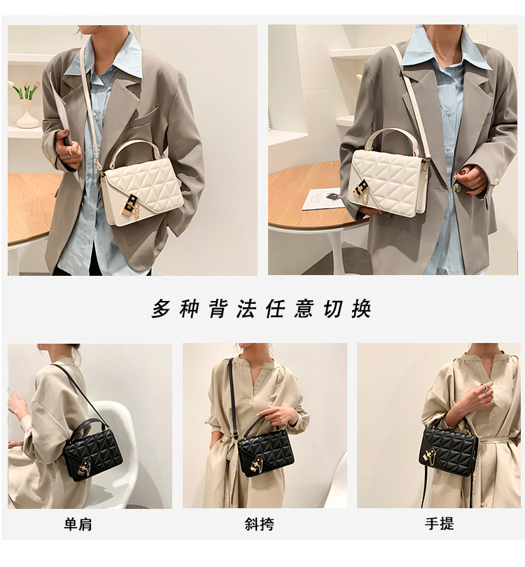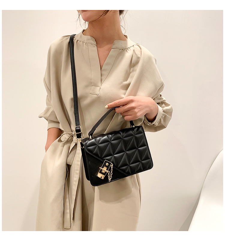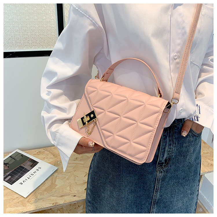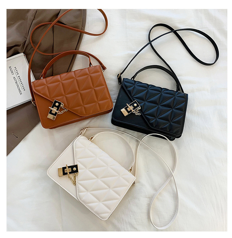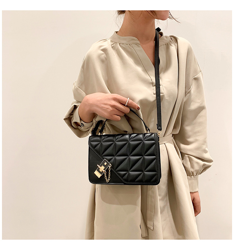 가을 새로운 복고풍 단색 작은 사각 가방 여성의 트렌디 한 패셔너블 올 매치 크로스 바디 가방 세련된 마름모꼴 간단한 핸드백