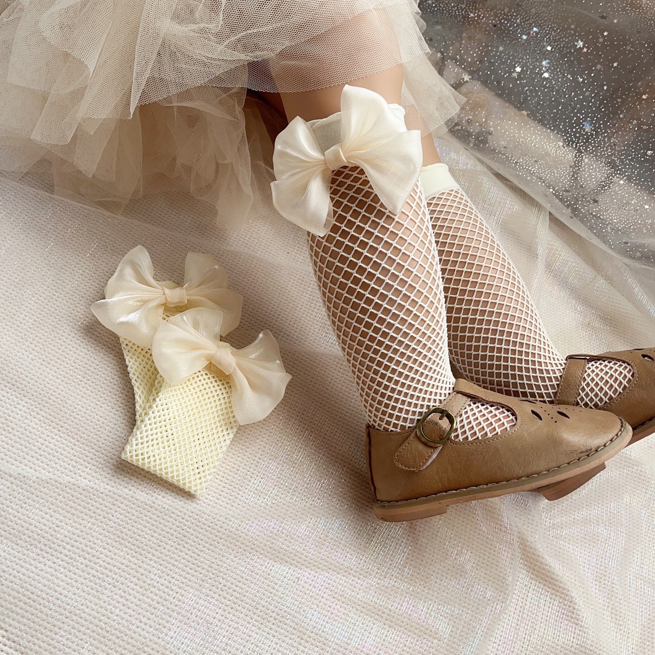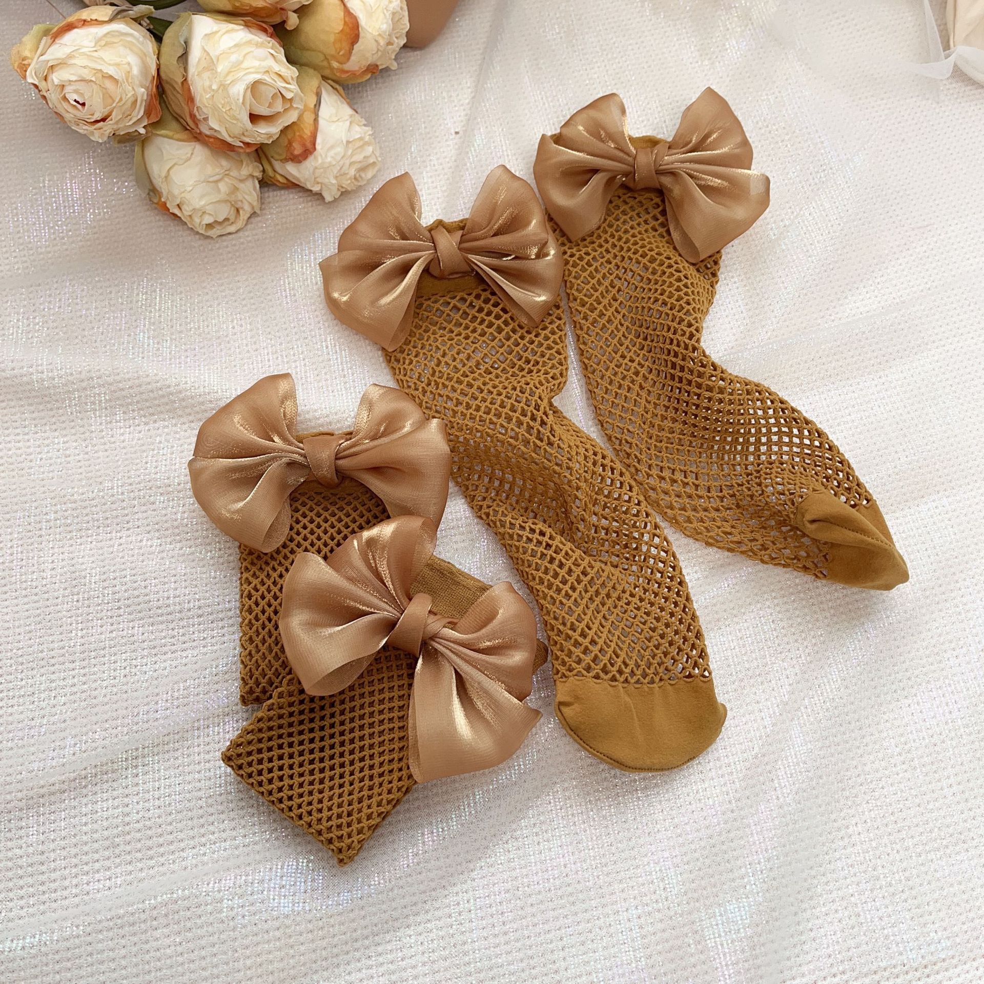 In 어린이 망사 양말 히비스커스 새틴 활 Lolita 중반 송아지 아기 양말 여름 아마존 핫