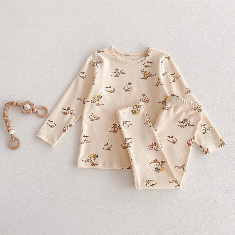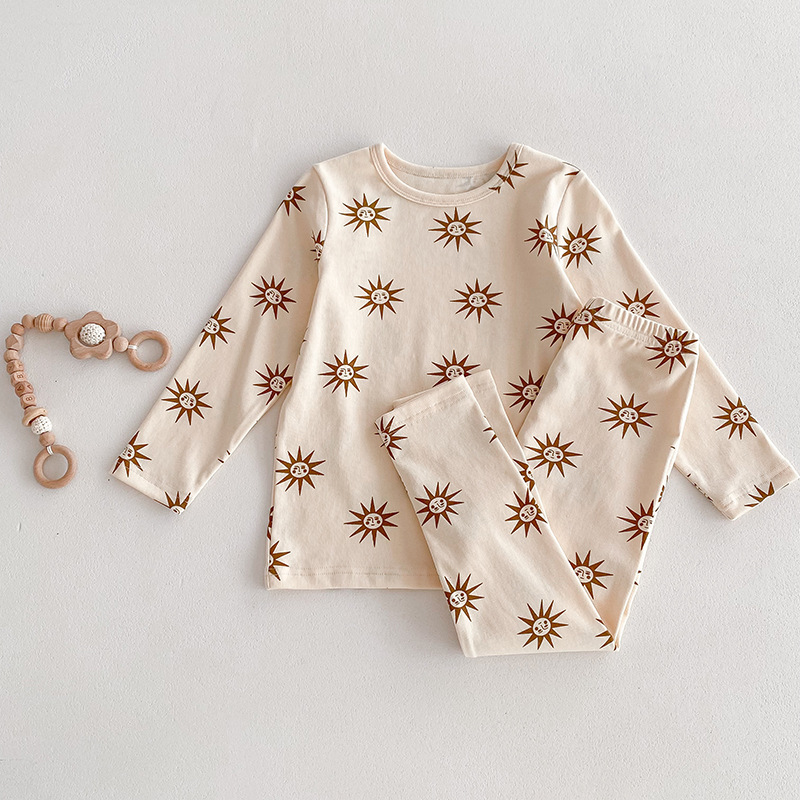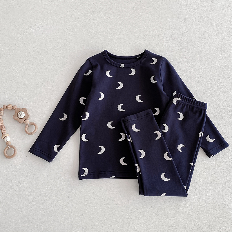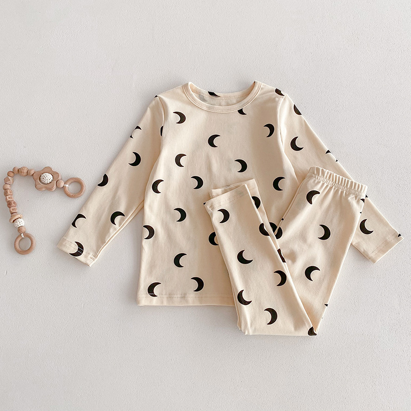 2025 봄 덴마크 스타일 아동 잠옷 A급 순면 아기 홈웨어 이너웨어 세트 문 세트
